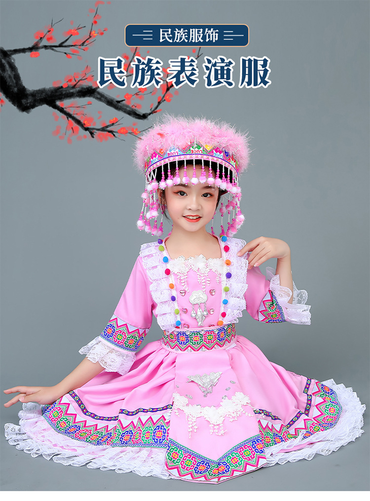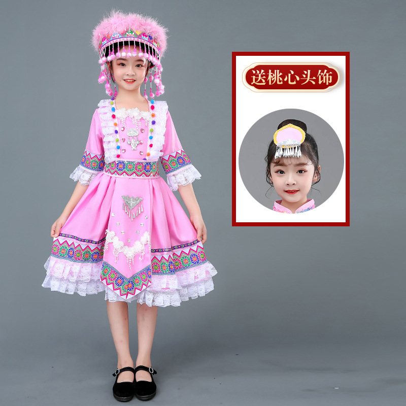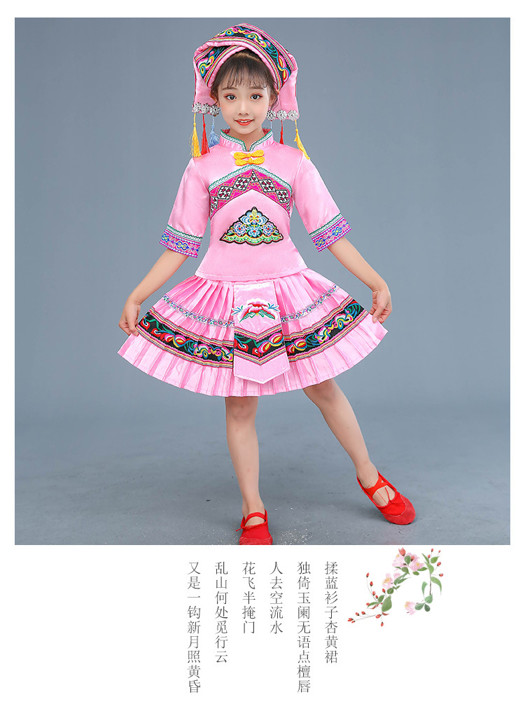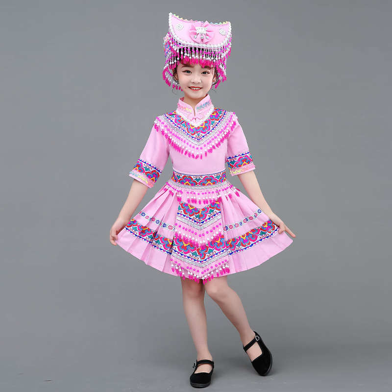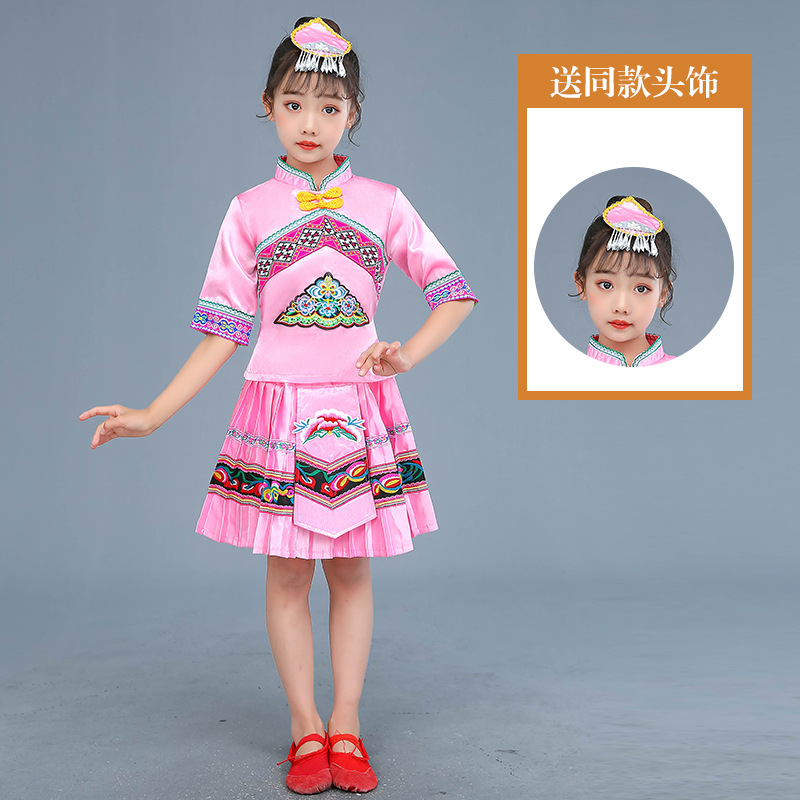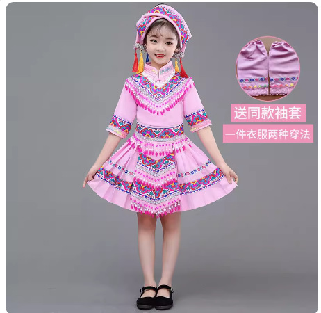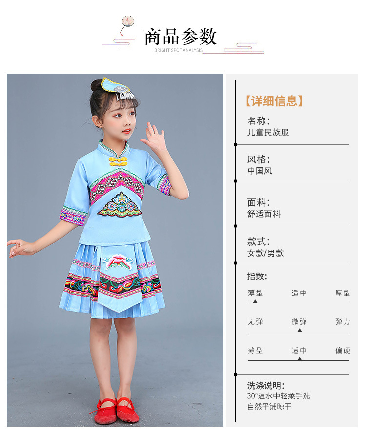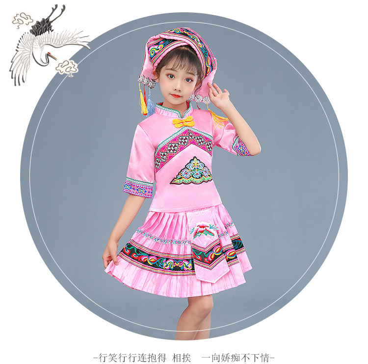 광시 Zhuang 아동복, 3 월 3 일, 새로운 소년 소녀 유치원 공연 의류 Miao Yi Yi Yi Qiang