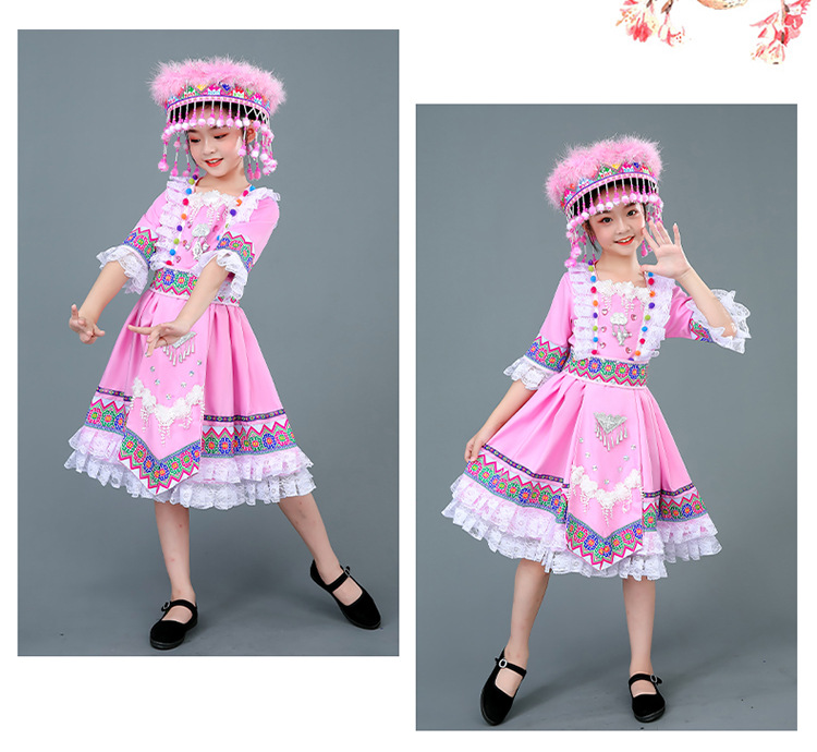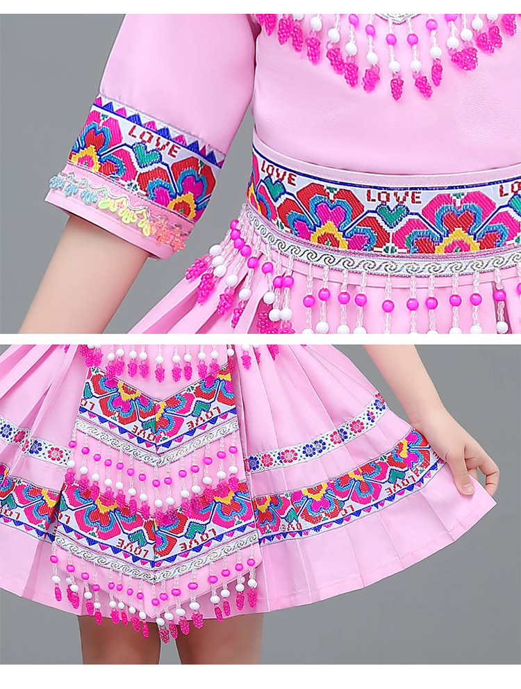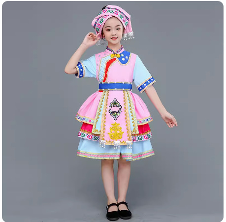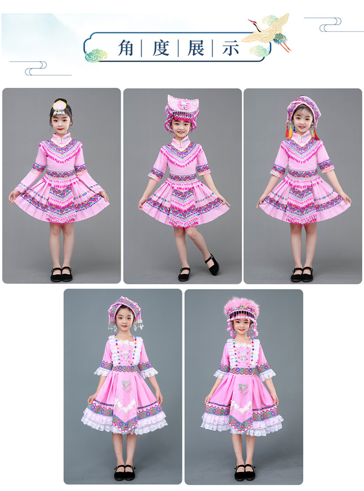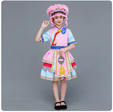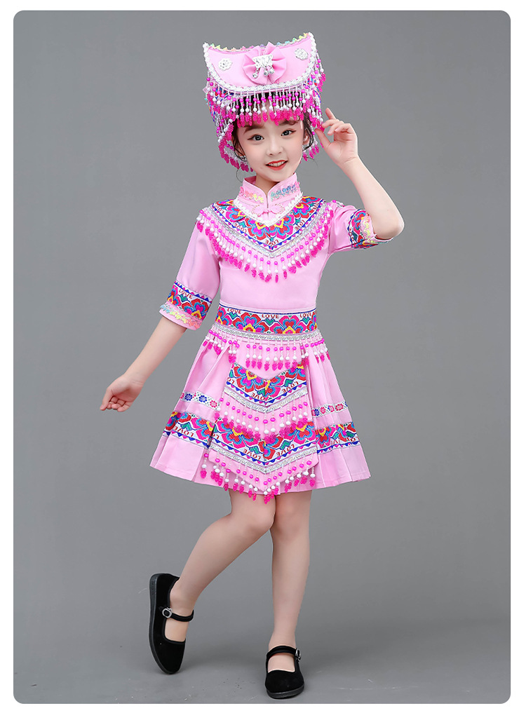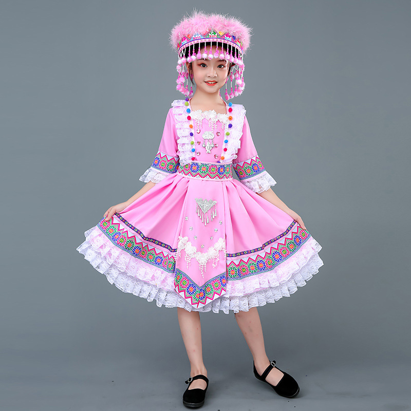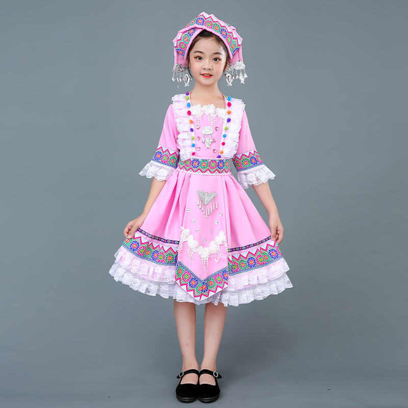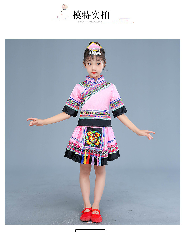 광시 Zhuang 아동복, 3 월 3 일, 새로운 소년 소녀 유치원 공연 의류 Miao Yi Yi Yi Qiang