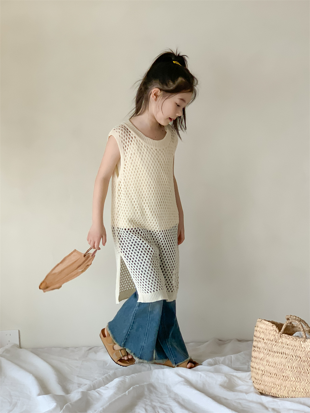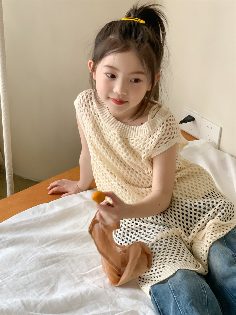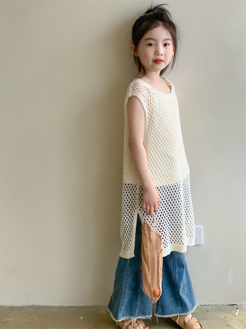 꽃과 검색 소녀 원피스 여름 속이 빈 스웨터 긴 치마 조끼 내복 투피스 세트 스커트 한국 패션