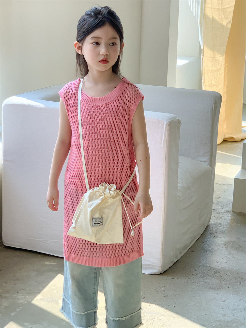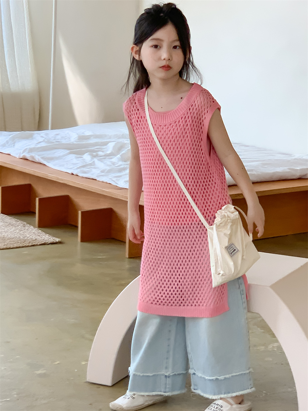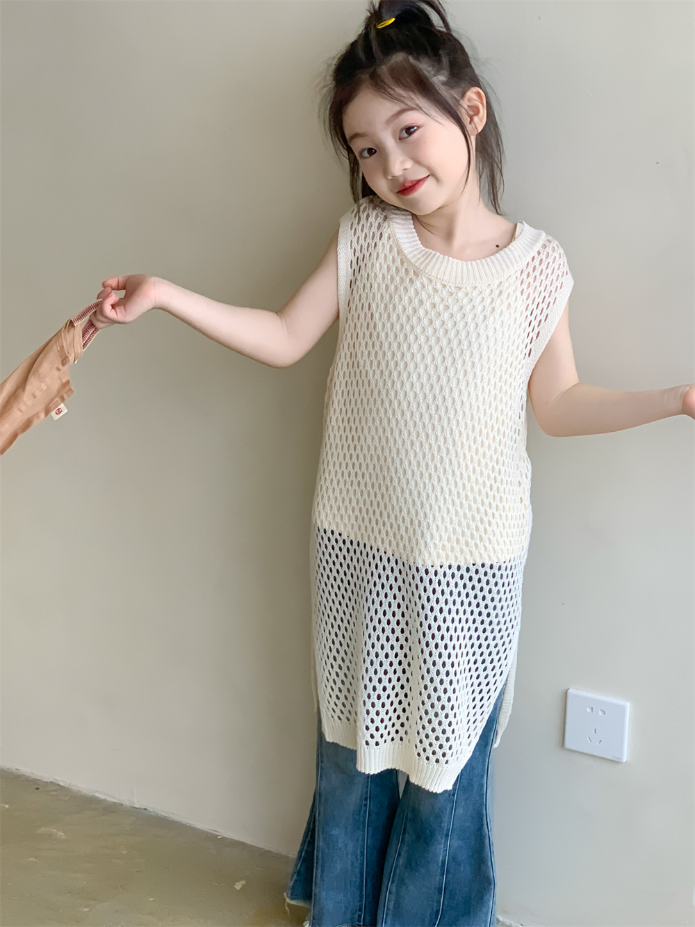 꽃과 검색 소녀 원피스 여름 속이 빈 스웨터 긴 치마 조끼 내복 투피스 세트 스커트 한국 패션