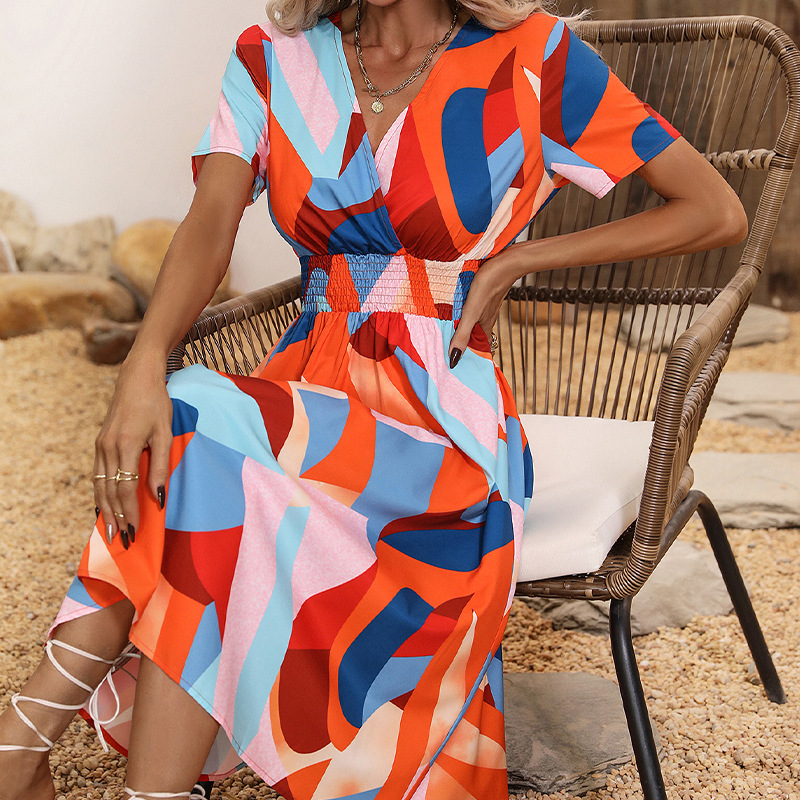 2024 대외 무역 여성 의류 유럽과 미국 유럽 역 아마존 국경 여름 작은 꽃 무늬 짧은 소매 원피스