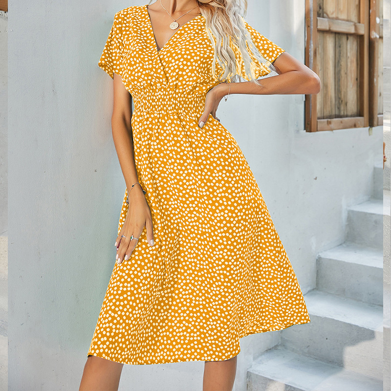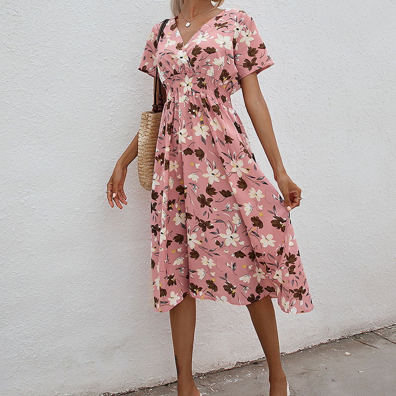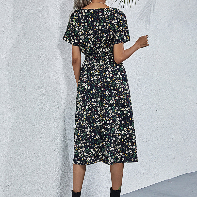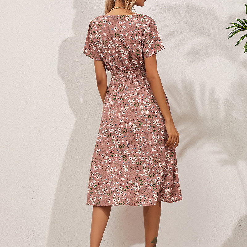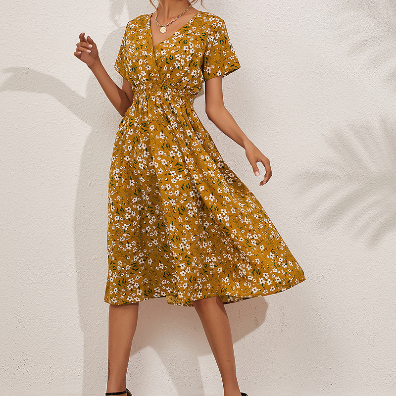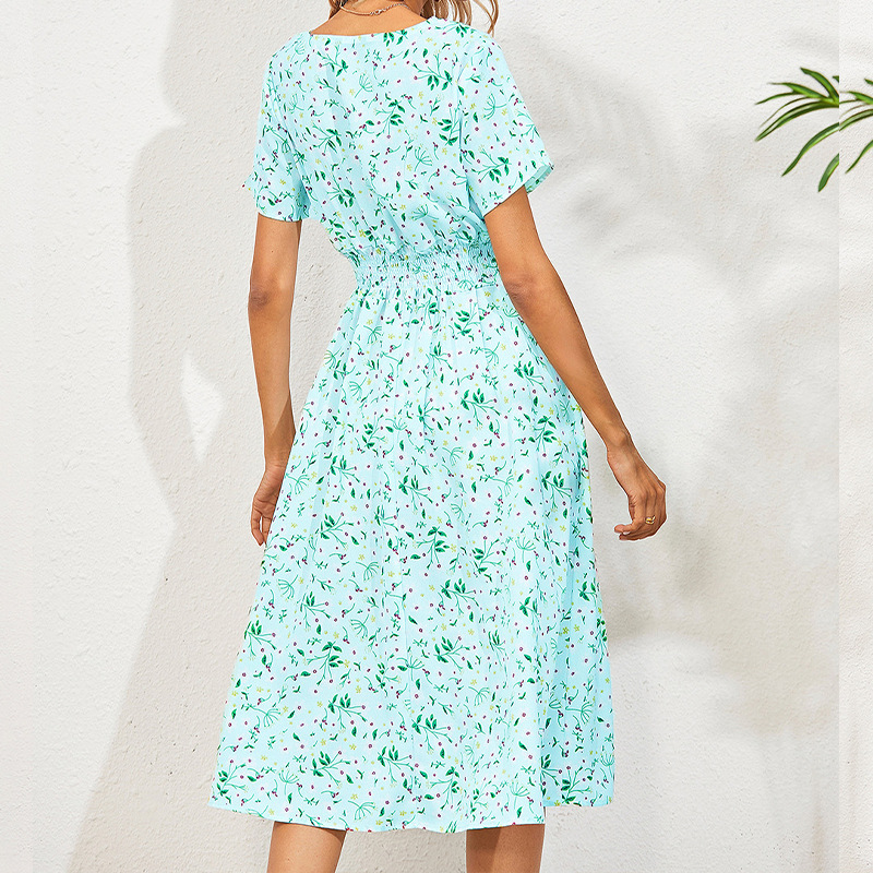 2024 대외 무역 여성 의류 유럽과 미국 유럽 역 아마존 국경 여름 작은 꽃 무늬 짧은 소매 원피스스토어 가기