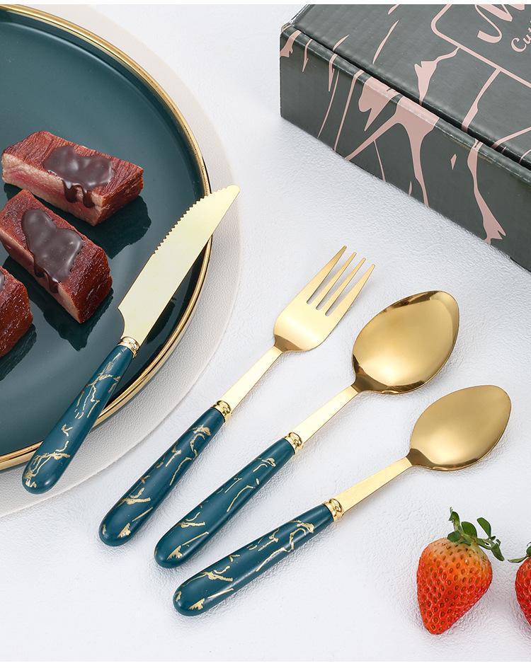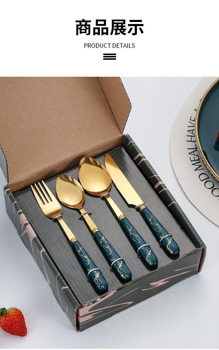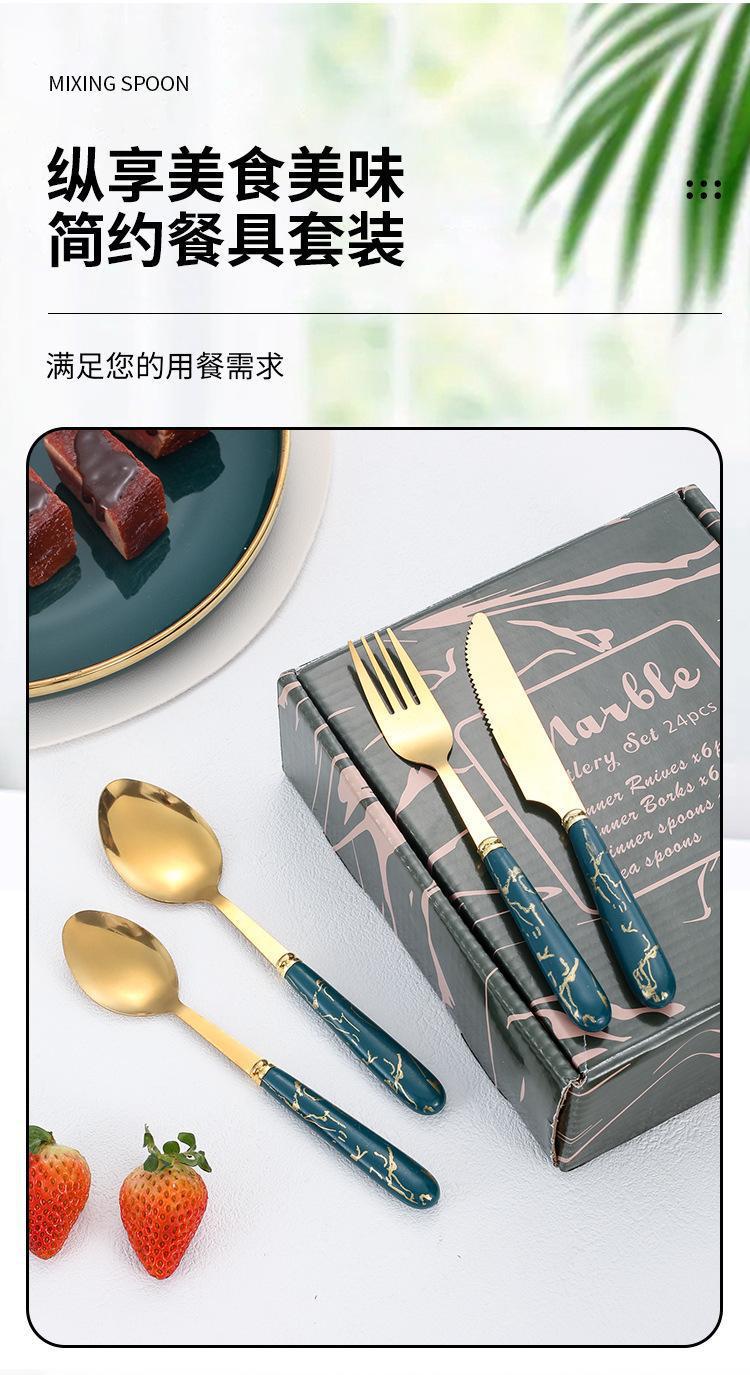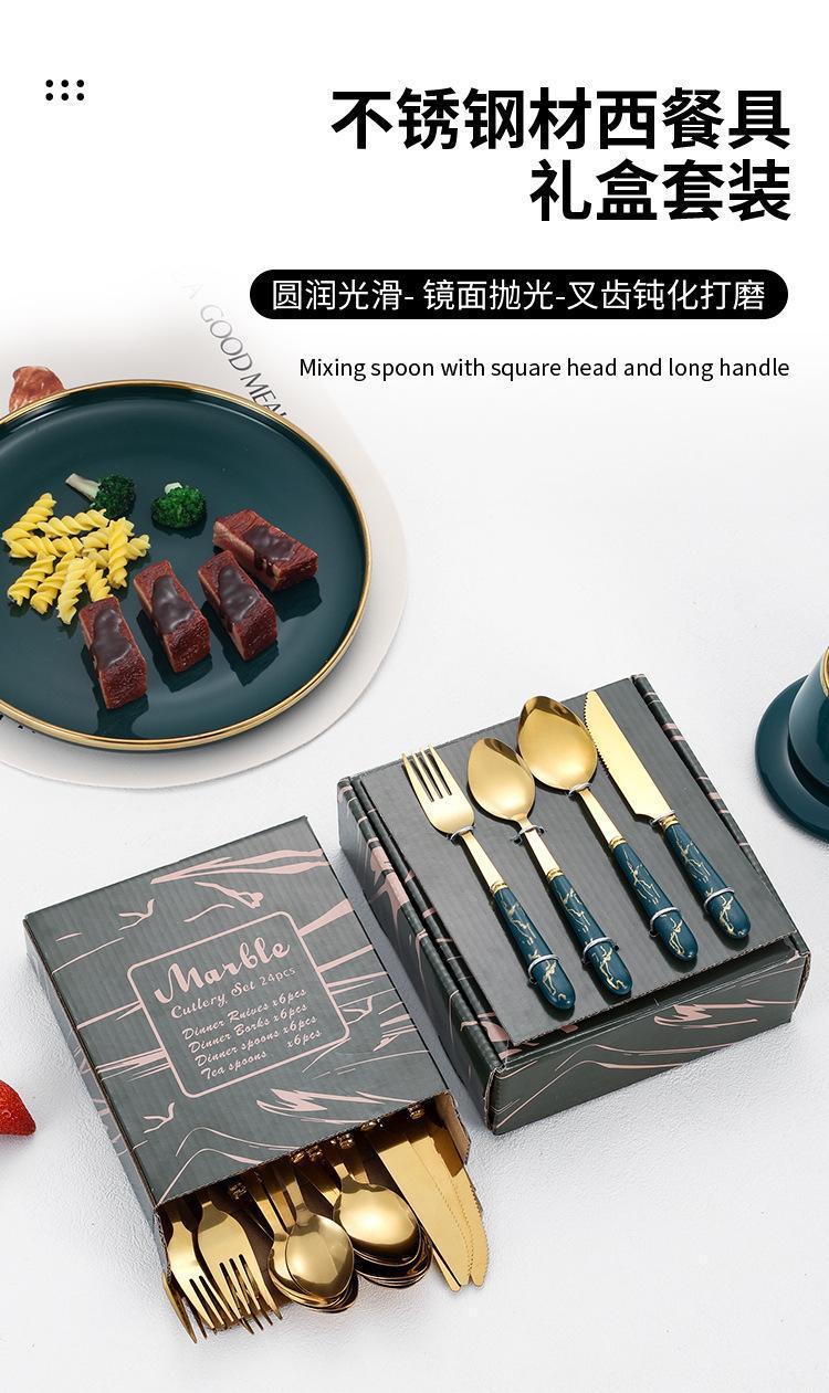 아마존 스테인레스 스틸 대리석 24 피스 선물 상자 플라스틱 손잡이 칼, 포크 및 스푼 서양 레스토랑 스테이크 나이프, 포크 및 스푼