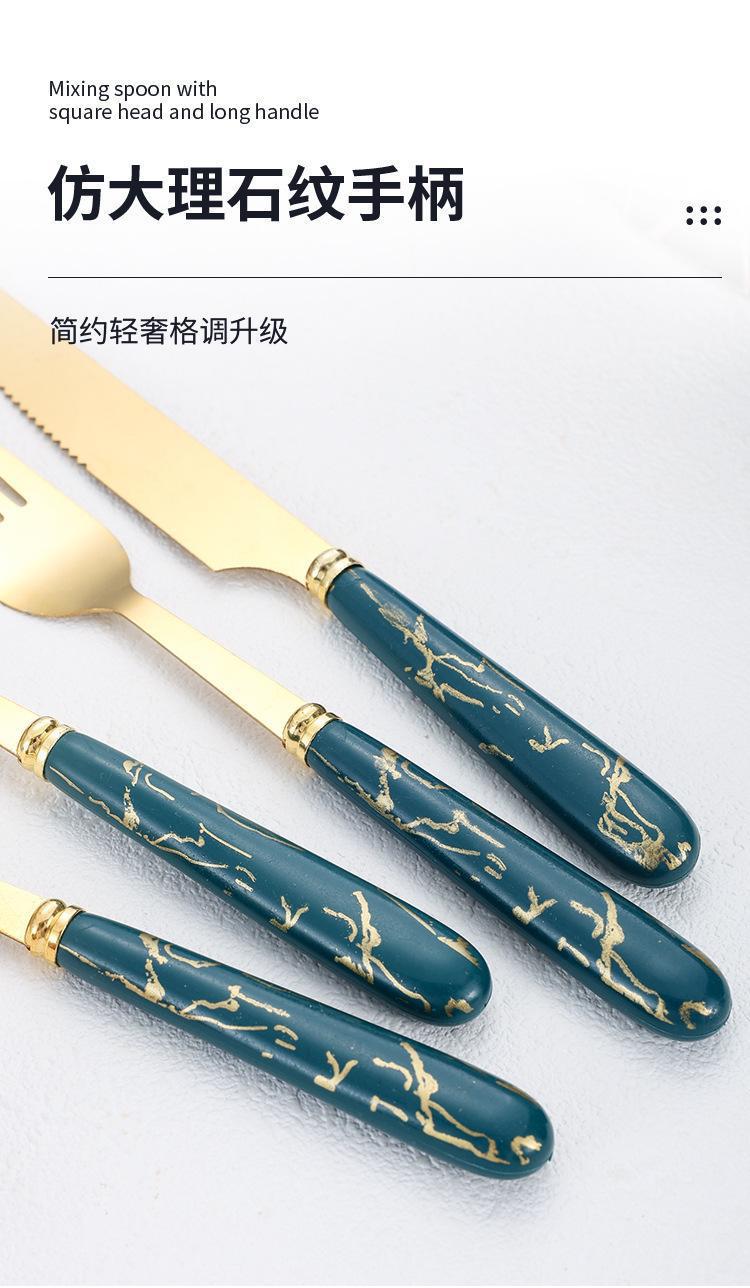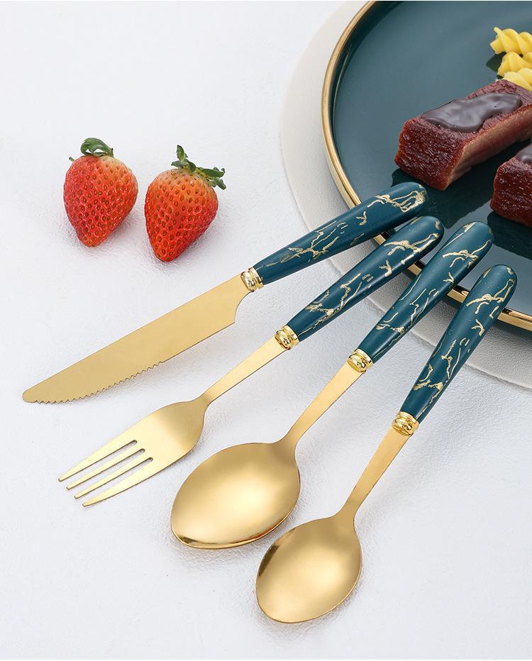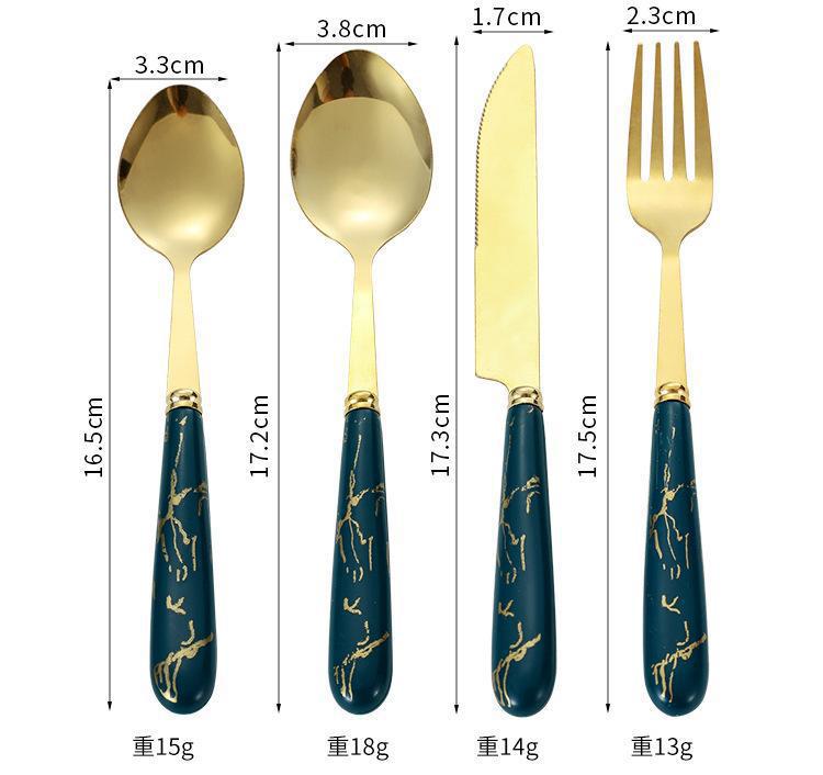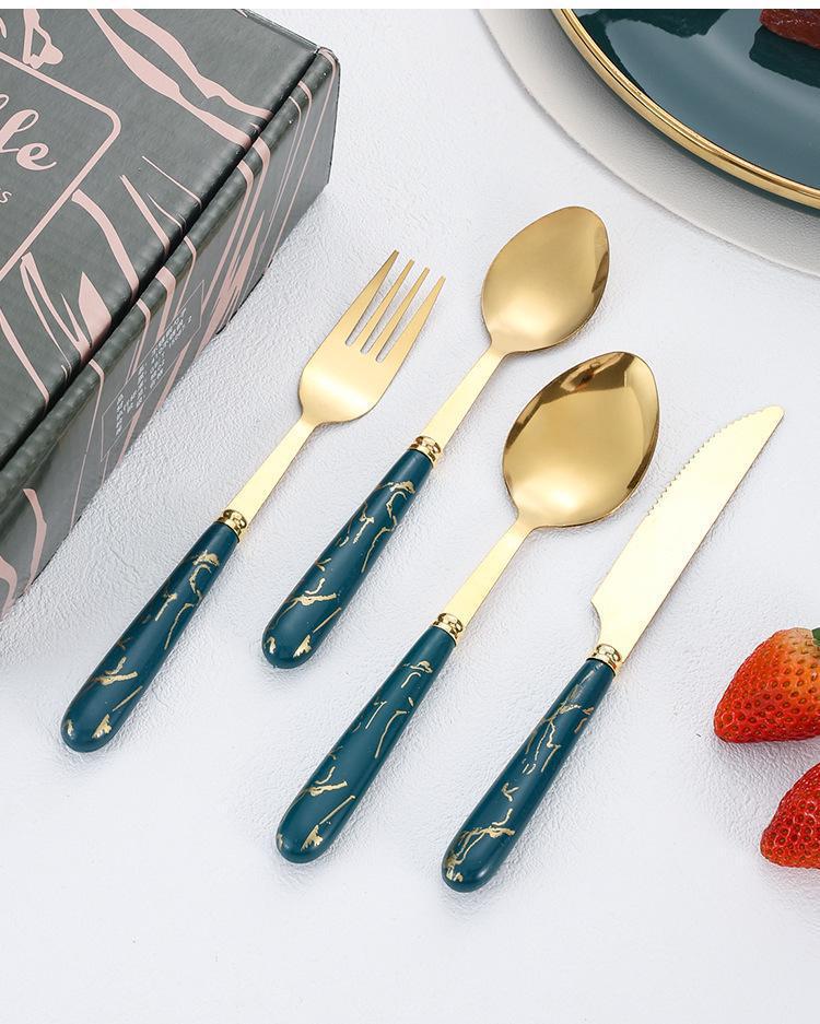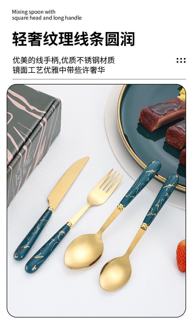 아마존 스테인레스 스틸 대리석 24 피스 선물 상자 플라스틱 손잡이 칼, 포크 및 스푼 서양 레스토랑 스테이크 나이프, 포크 및 스푼