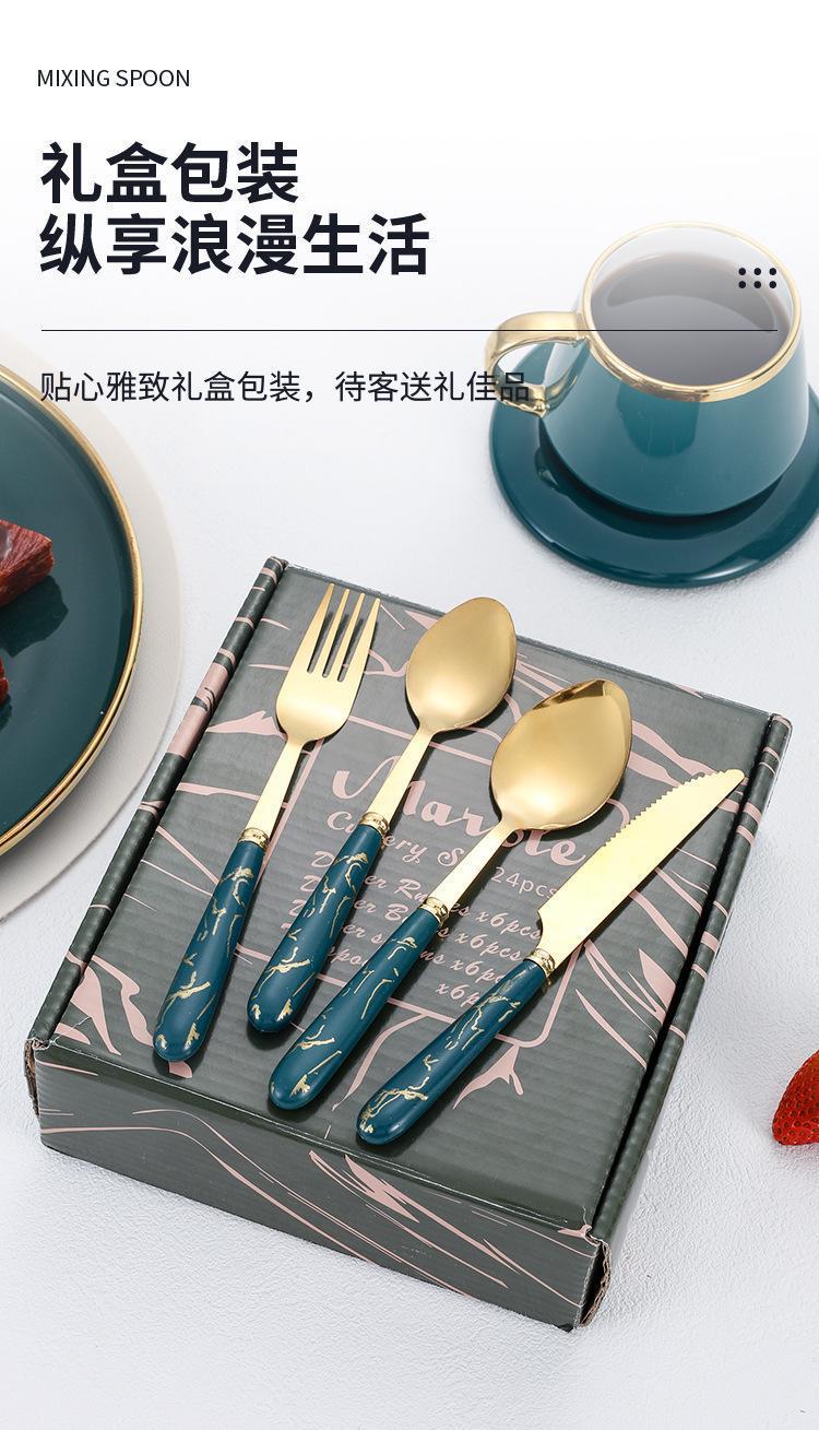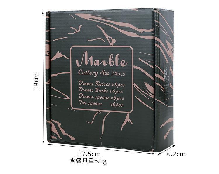 아마존 스테인레스 스틸 대리석 24 피스 선물 상자 플라스틱 손잡이 칼, 포크 및 스푼 서양 레스토랑 스테이크 나이프, 포크 및 스푼스토어 가기