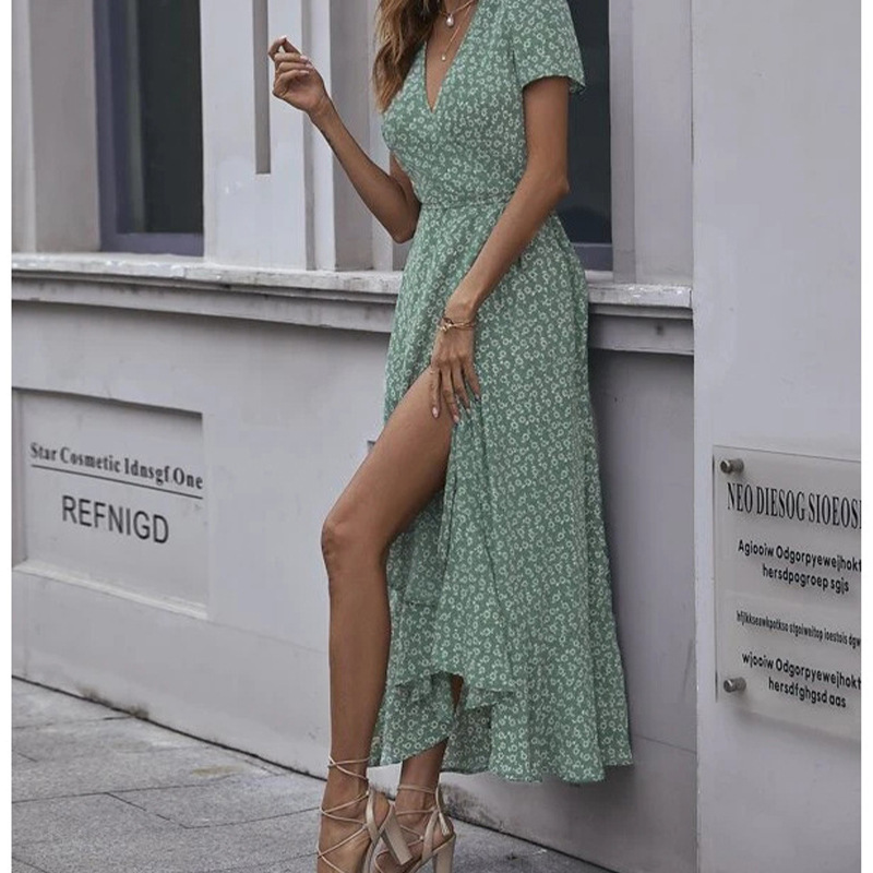 독립 역 아마존 국경 작은 꽃 V넥 카디건 레이스 업 짧은 소매 보헤미안 스윙 휴가 원피스스토어 가기