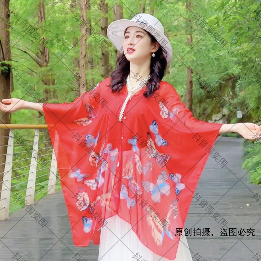 [웨이이] * 150 모란 인쇄 다채로운 여행 목도리 쉬폰 풀오버 태양 보호 셔츠 슬리밍 커버 고기스토어 가기