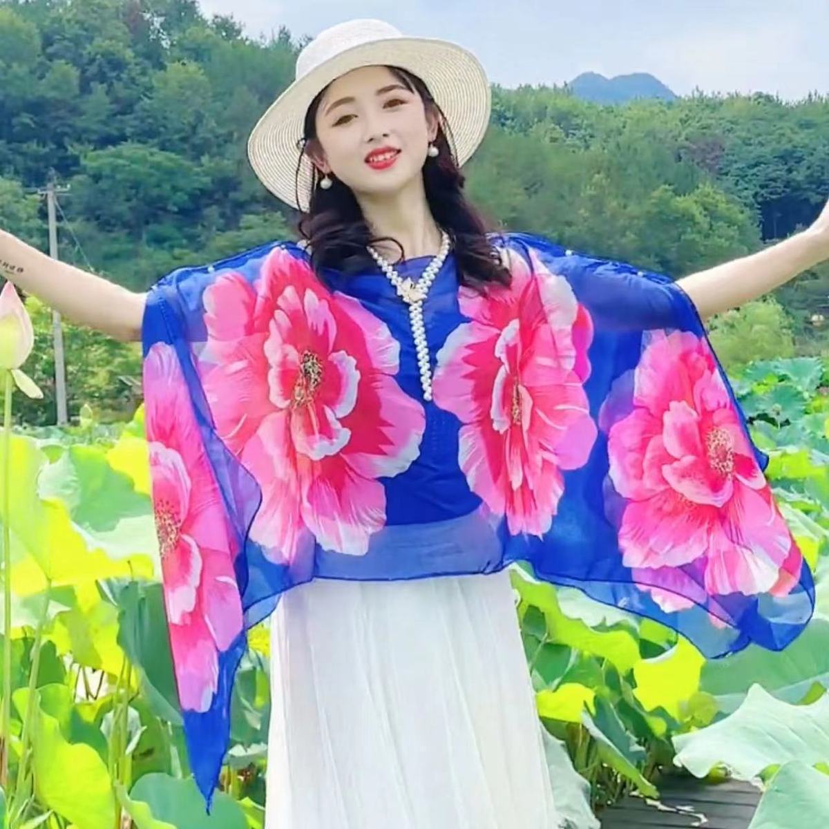 [웨이이] * 150 모란 인쇄 다채로운 여행 목도리 쉬폰 풀오버 태양 보호 셔츠 슬리밍 커버 고기