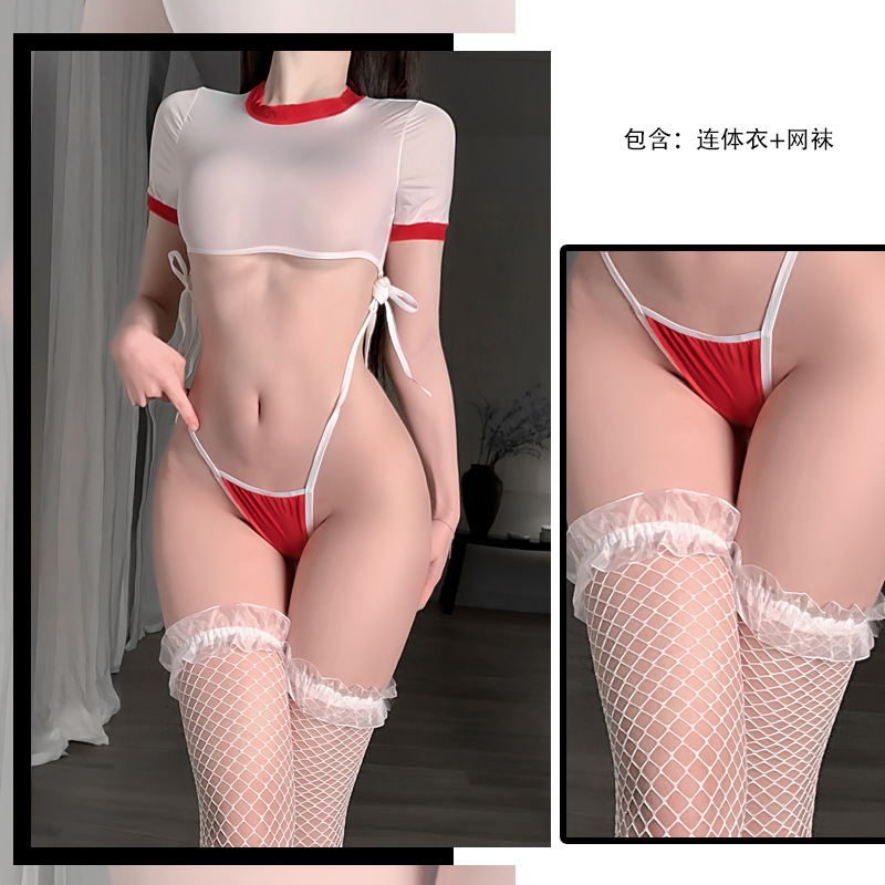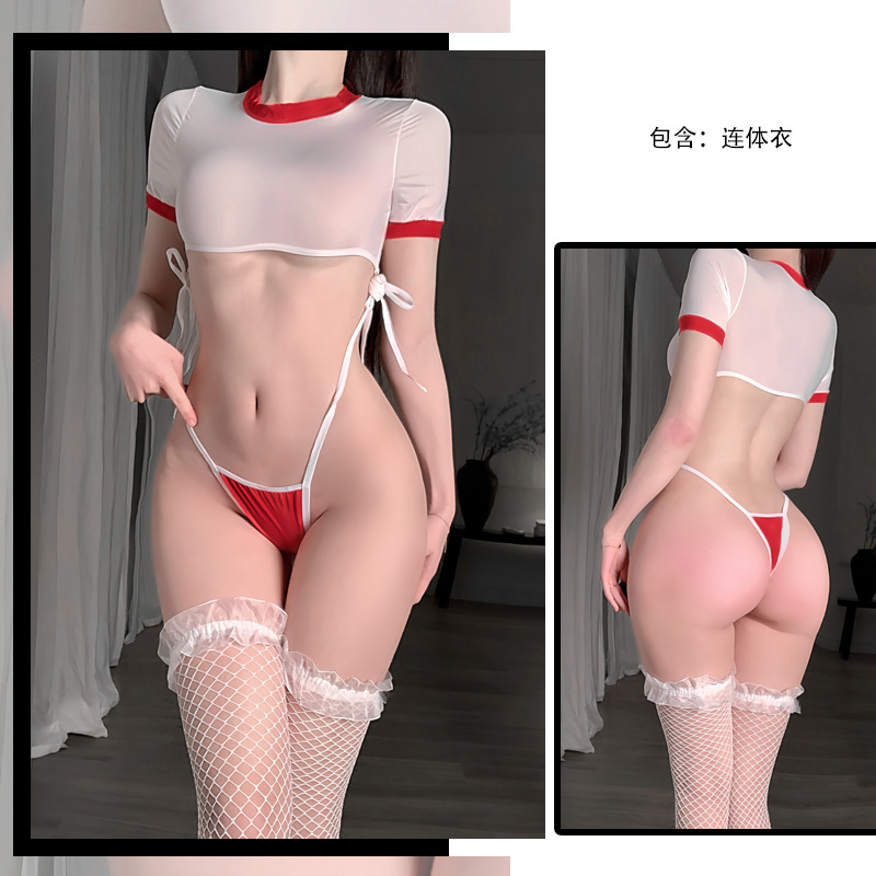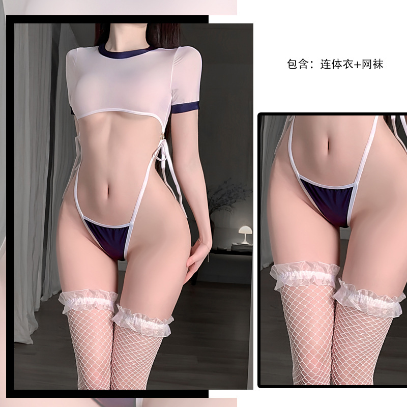 시즌 종료 섹시한 란제리 타이트 하이 포크 스트랩 학생 체조 의류 섹시한 속이 빈 개인 홈 착용 잠옷 6053
