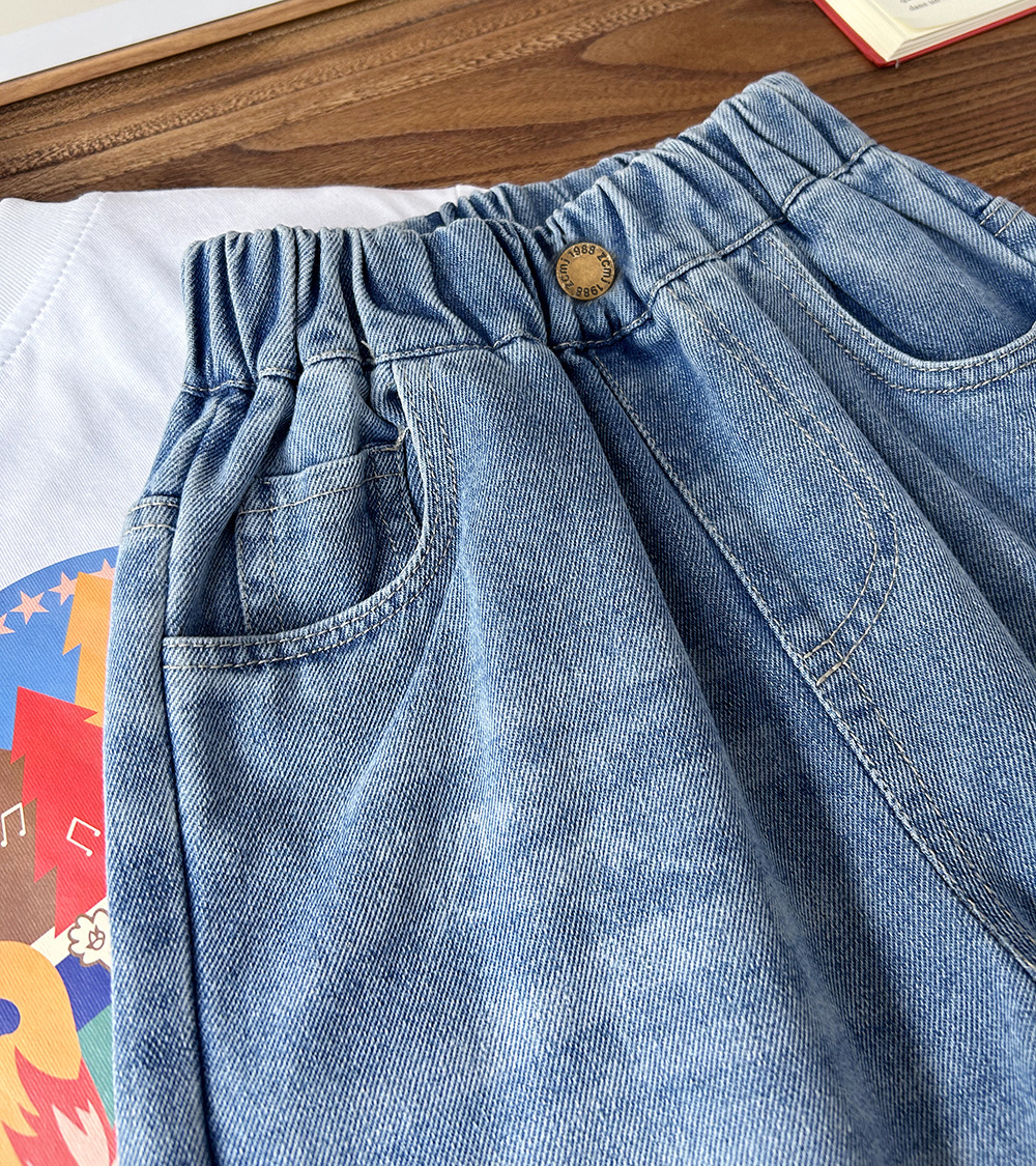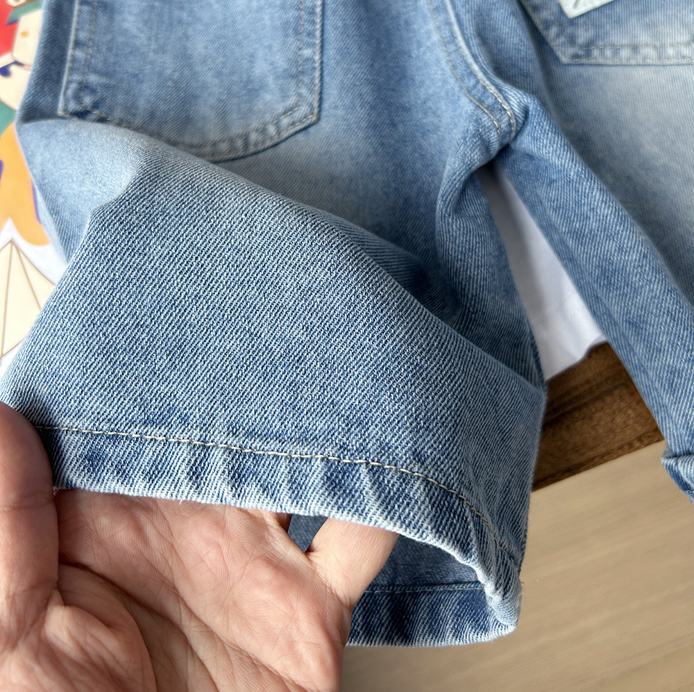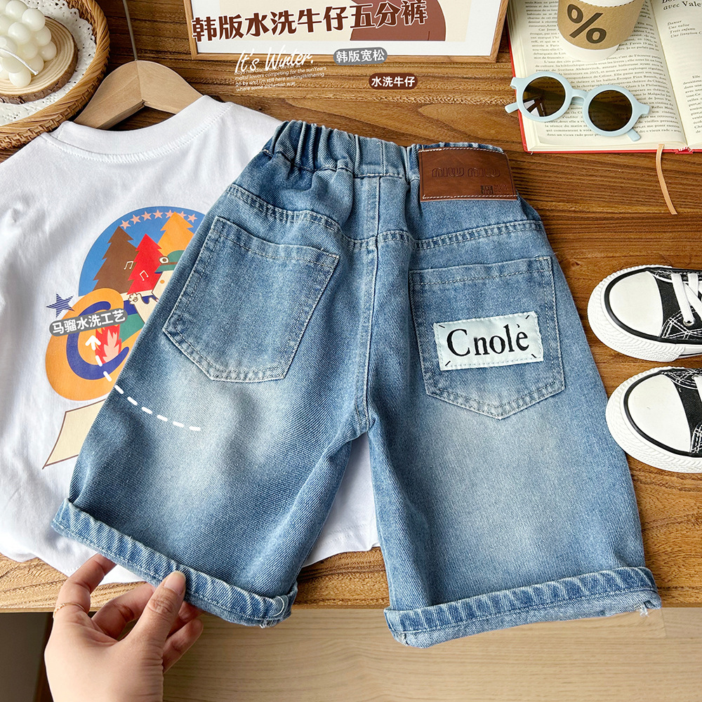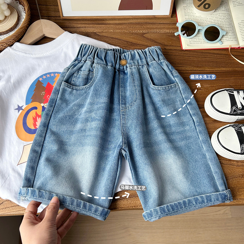 2024 새로운 여름 아동복 소년 씻은 부드러운 자른 바지 데님 반바지 어린이 바지 도매 배달