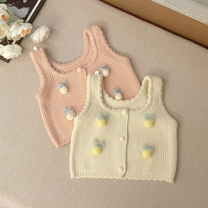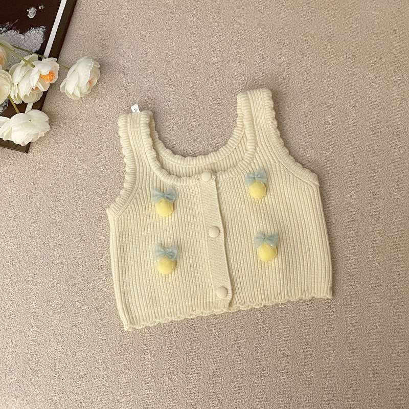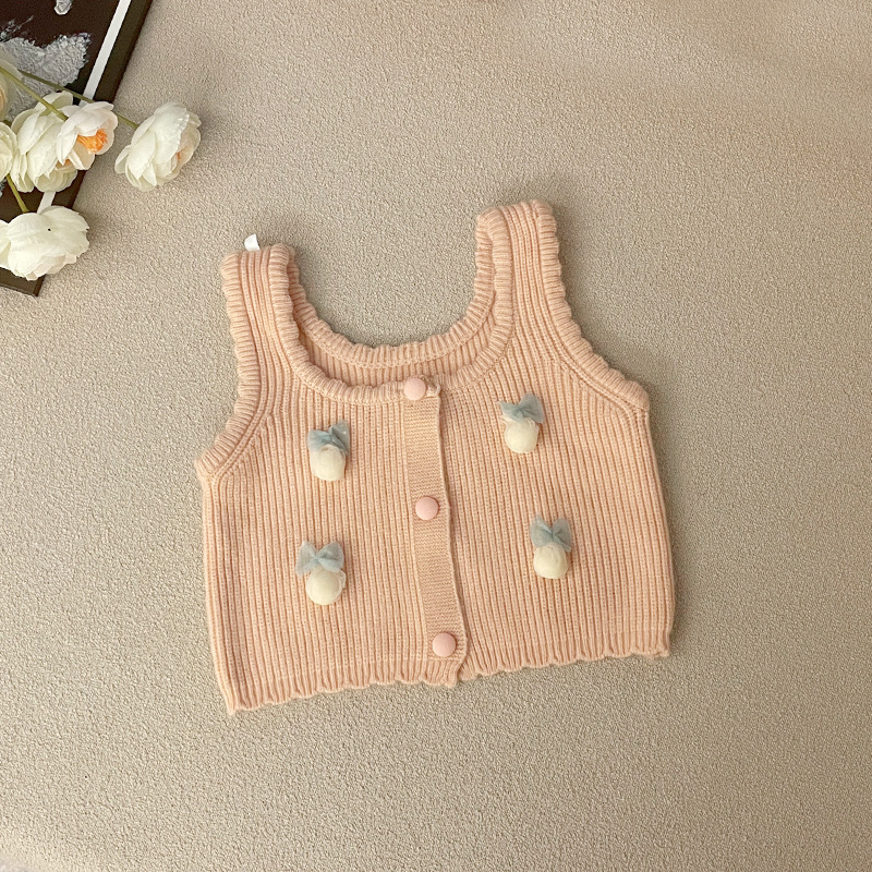 소녀 스웨터 조끼 귀여운 스타일 봄과 가을 니트 양복 조끼 어린이를위한 새 조끼 한국식 캐미솔