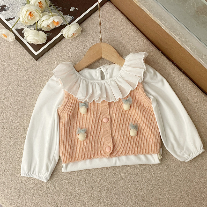 소녀 스웨터 조끼 귀여운 스타일 봄과 가을 니트 양복 조끼 어린이를위한 새 조끼 한국식 캐미솔스토어 가기