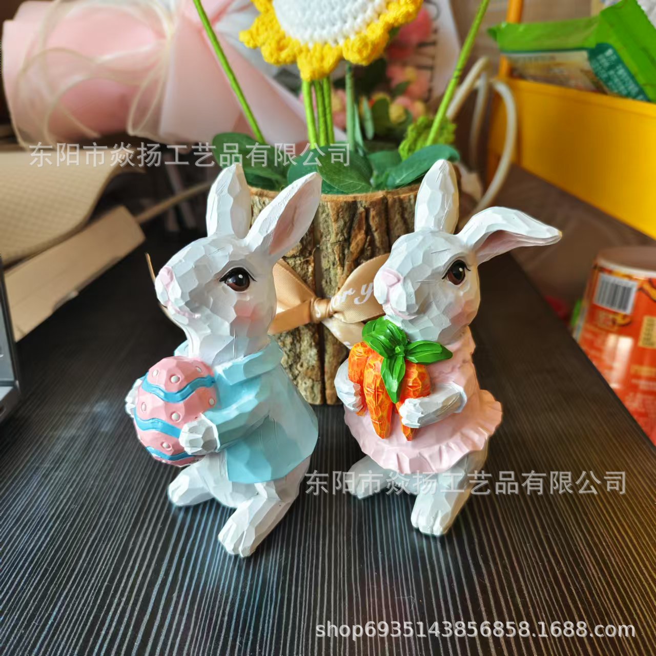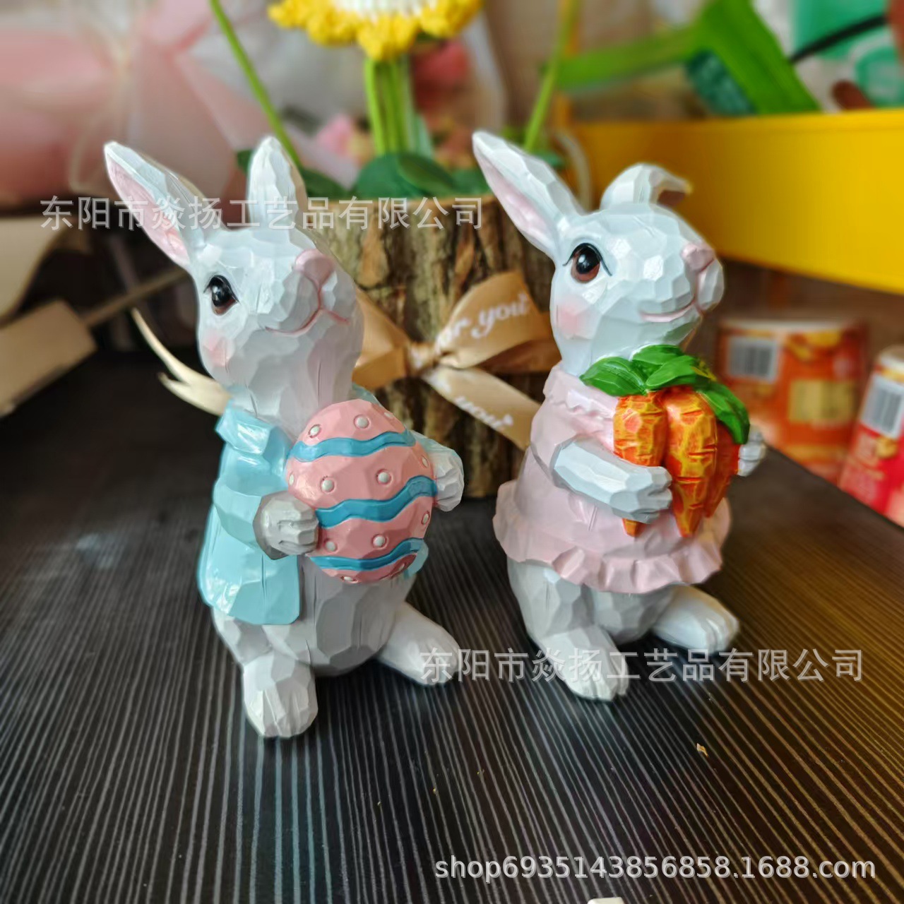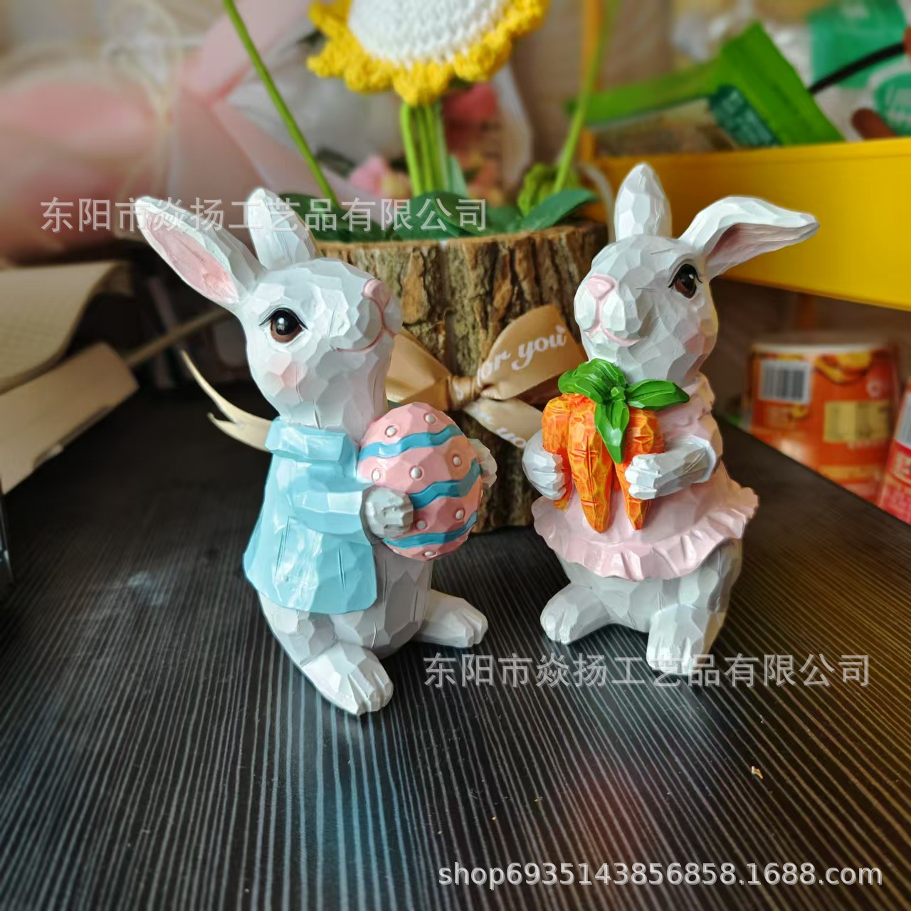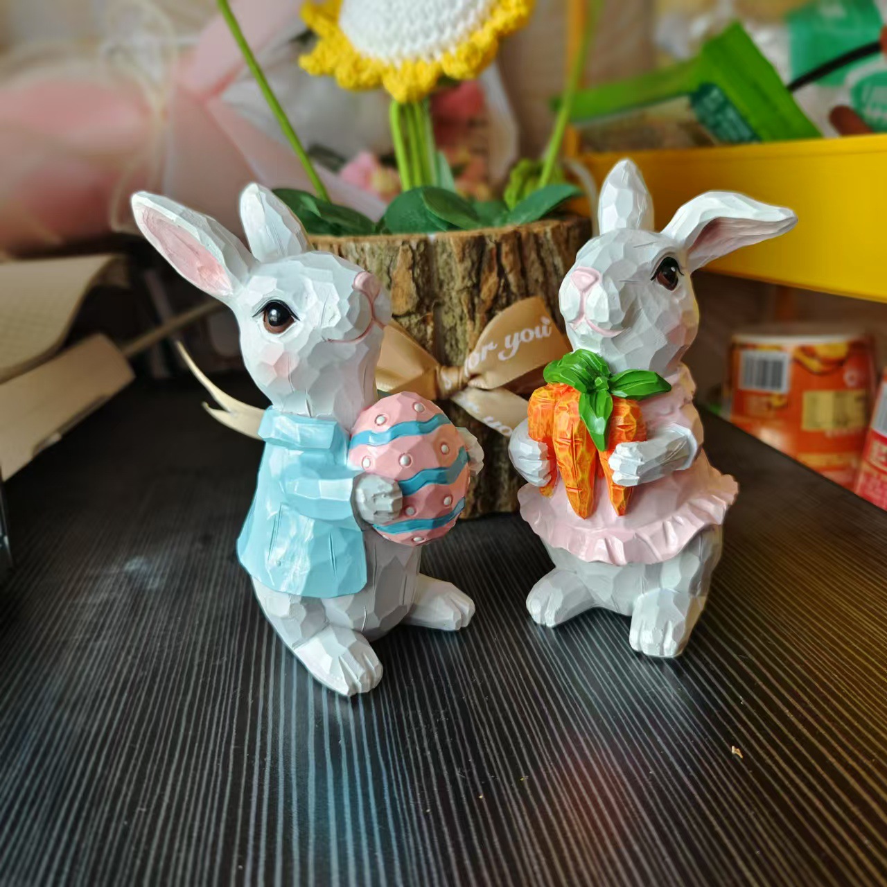 국경 새 부활절 토끼 장식 수지 커플 토끼 동상 홈 오피스 장식 수지 공예스토어 가기