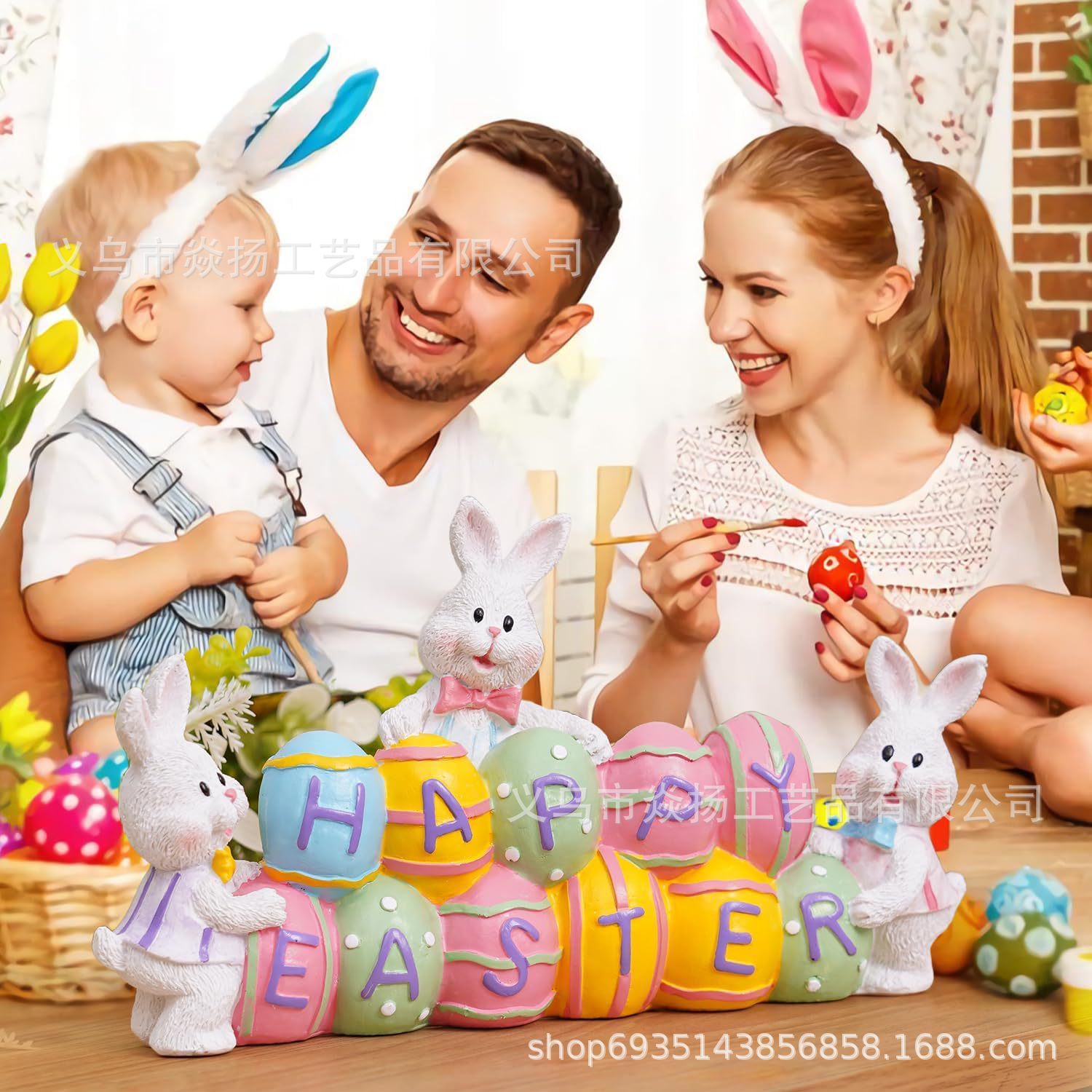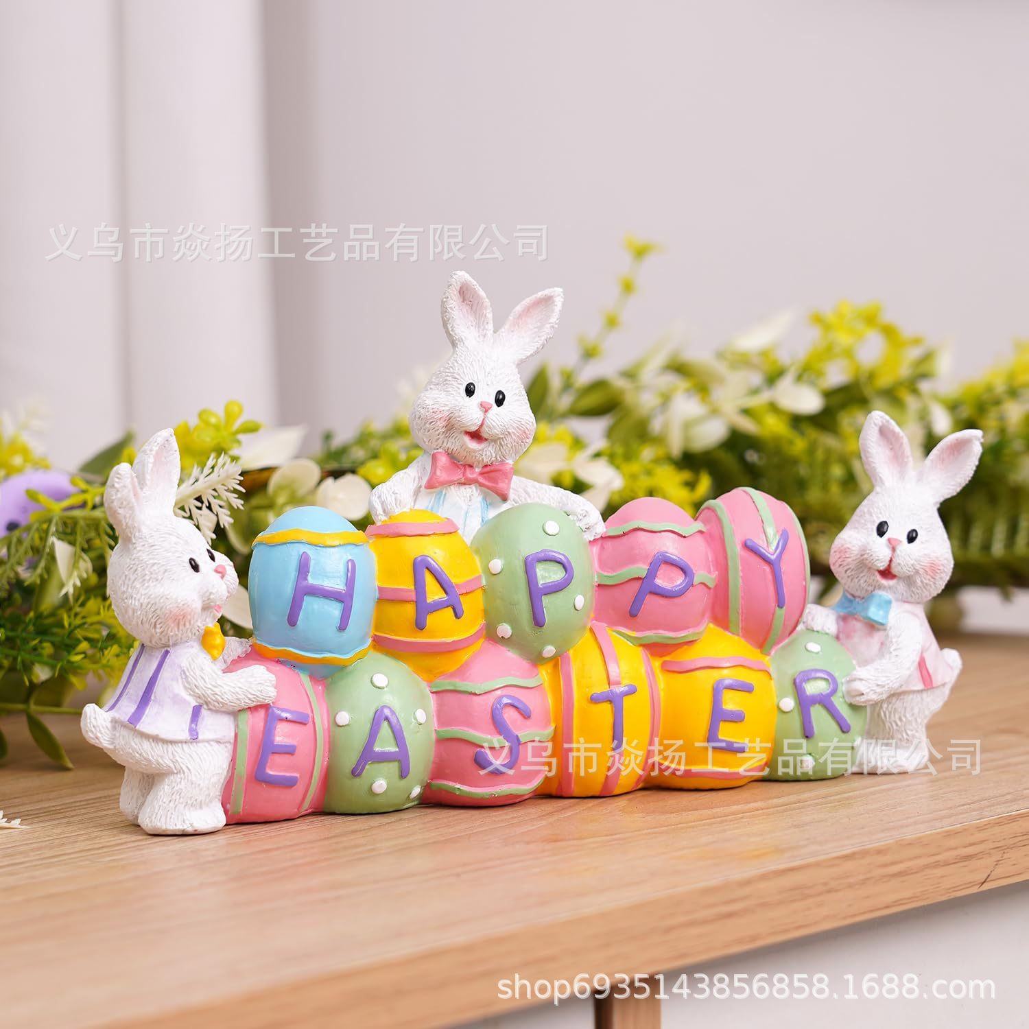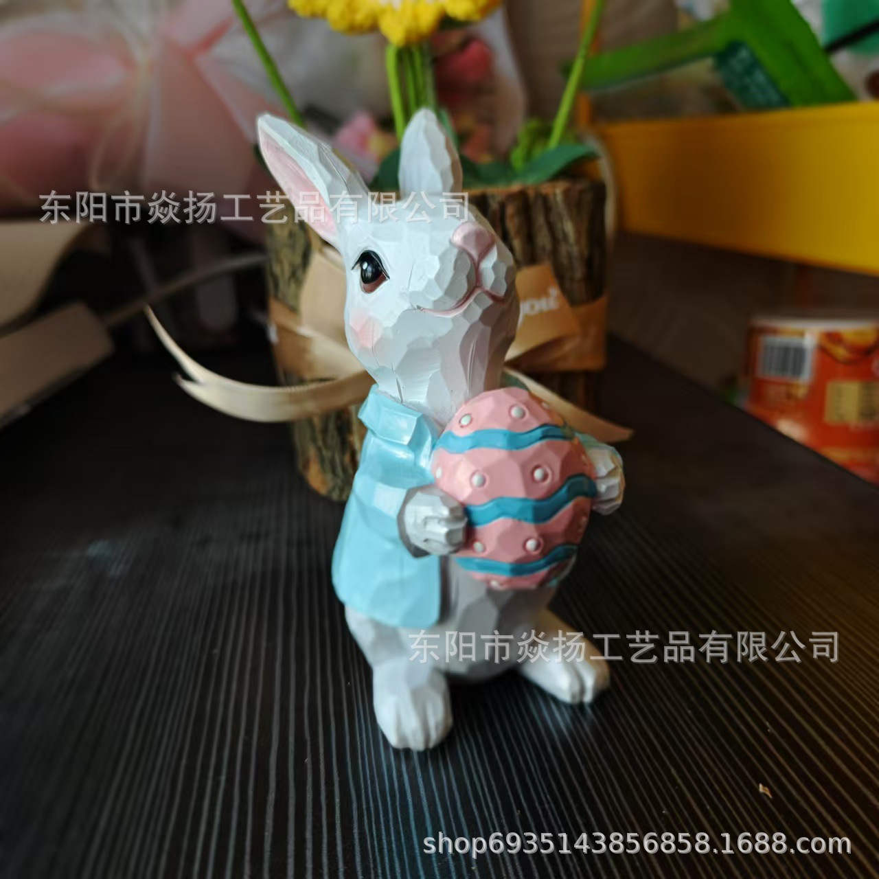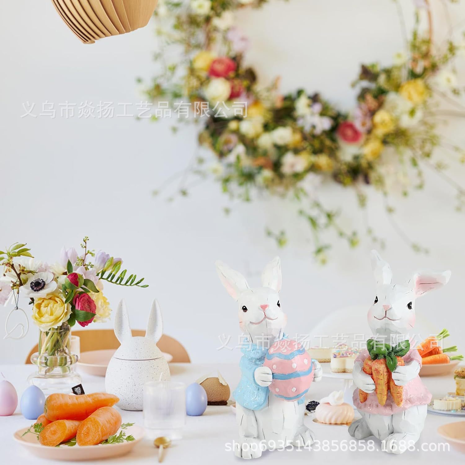 국경 새 부활절 토끼 장식 수지 커플 토끼 동상 홈 오피스 장식 수지 공예스토어 가기