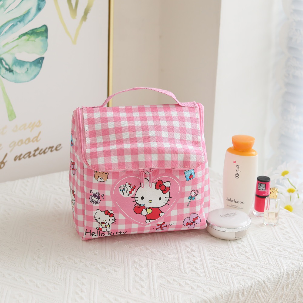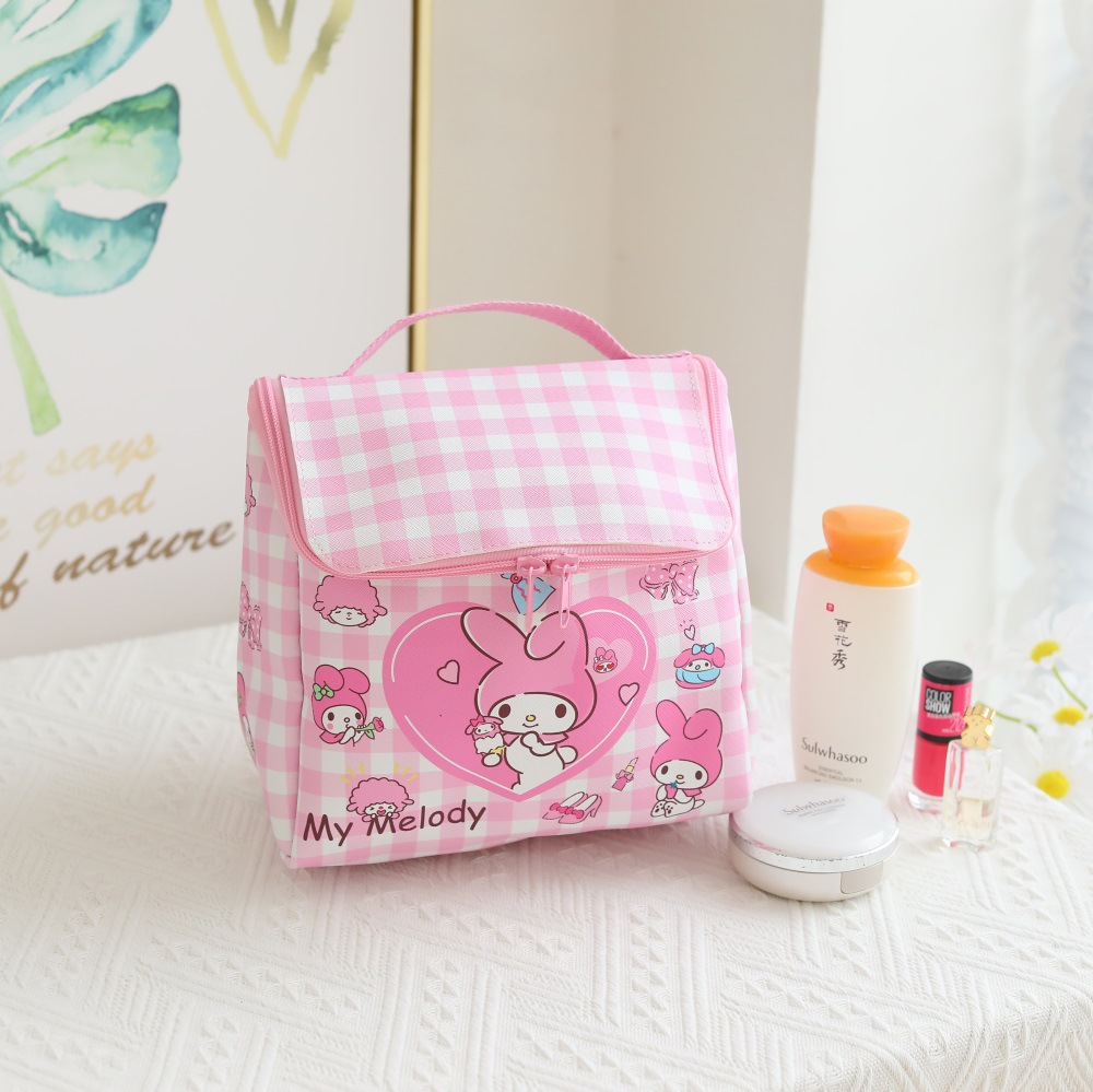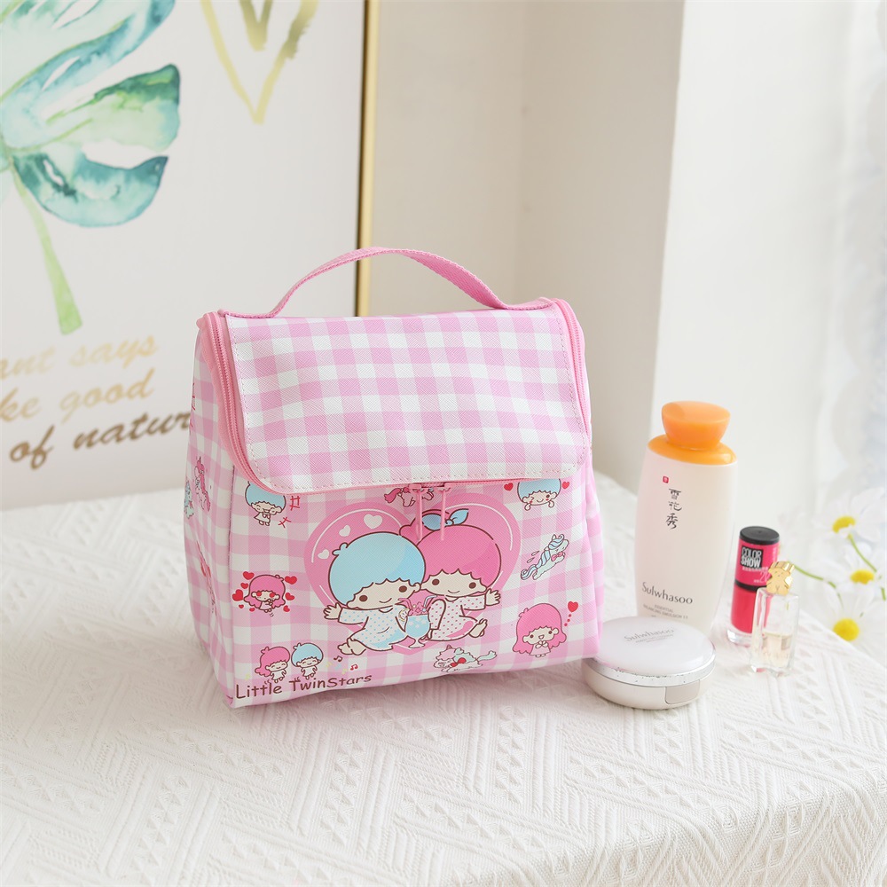 격자 무늬 만화 가죽 방수 지퍼 플립 소녀 화장품 가방 야외 여행 휴대용 화장실 보관 가방스토어 가기