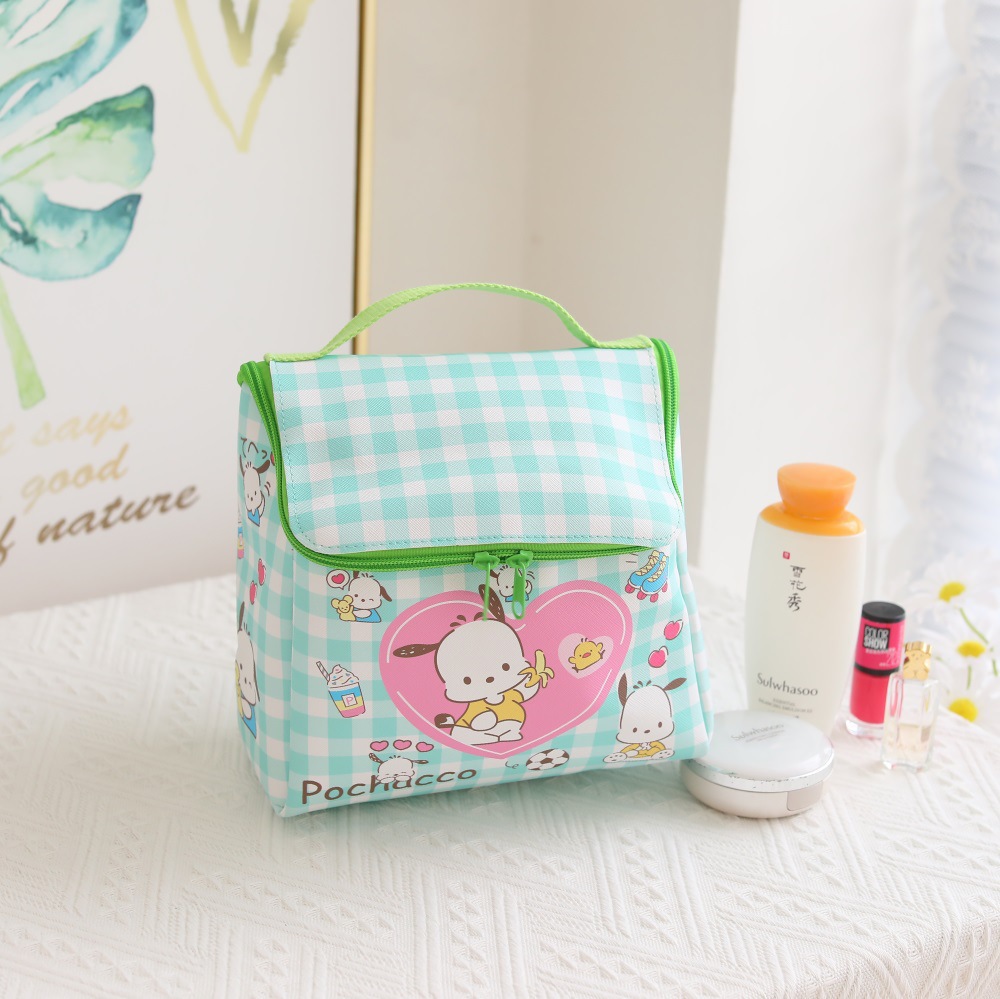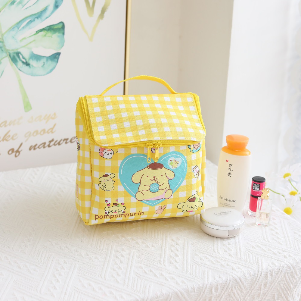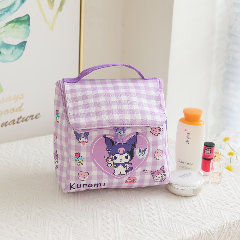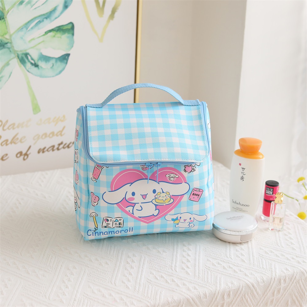 격자 무늬 만화 가죽 방수 지퍼 플립 소녀 화장품 가방 야외 여행 휴대용 화장실 보관 가방스토어 가기