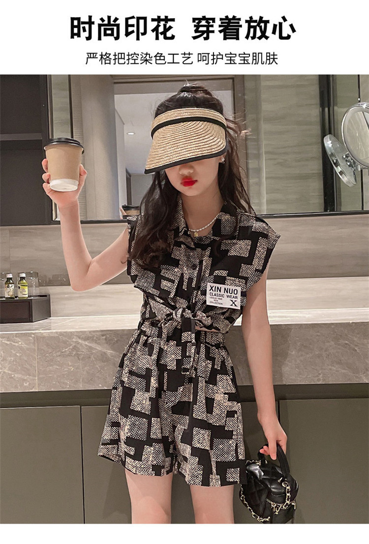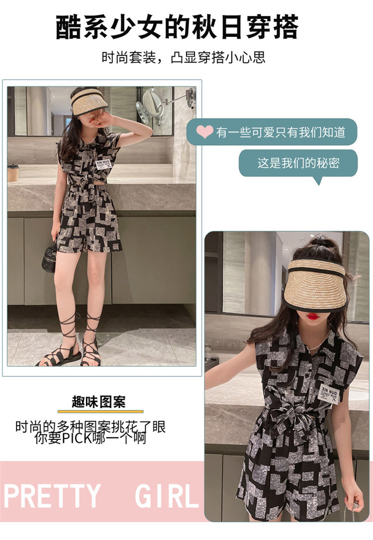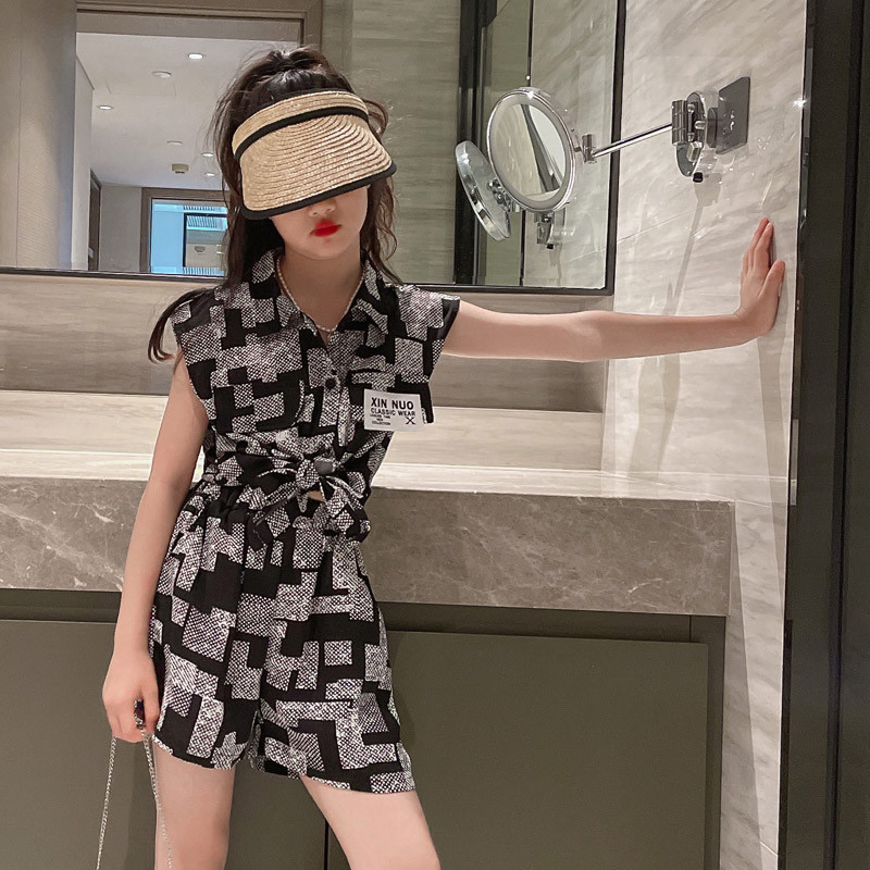 소녀들의 세트 여름 옷 2024 새로운 서양식 어린이 투피스 세트 소녀 봄 탑 소녀의 나이 많은 어린이 여름 옷