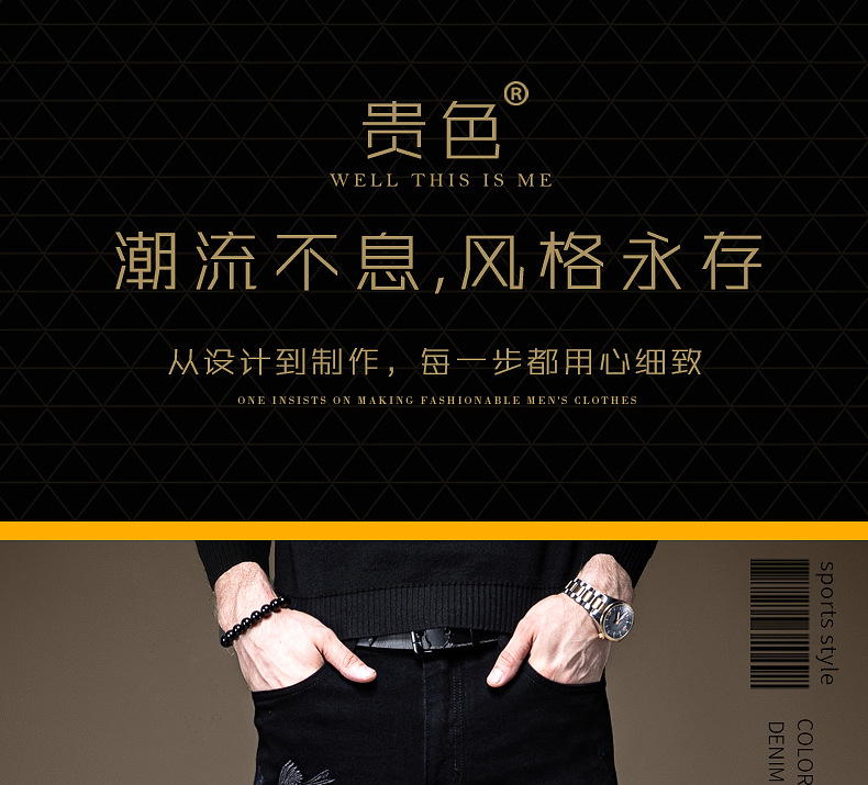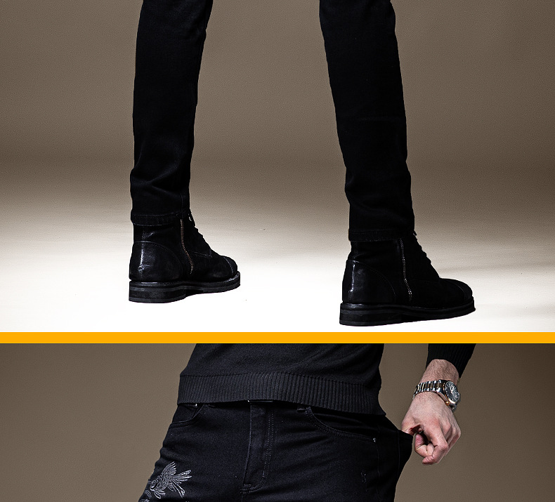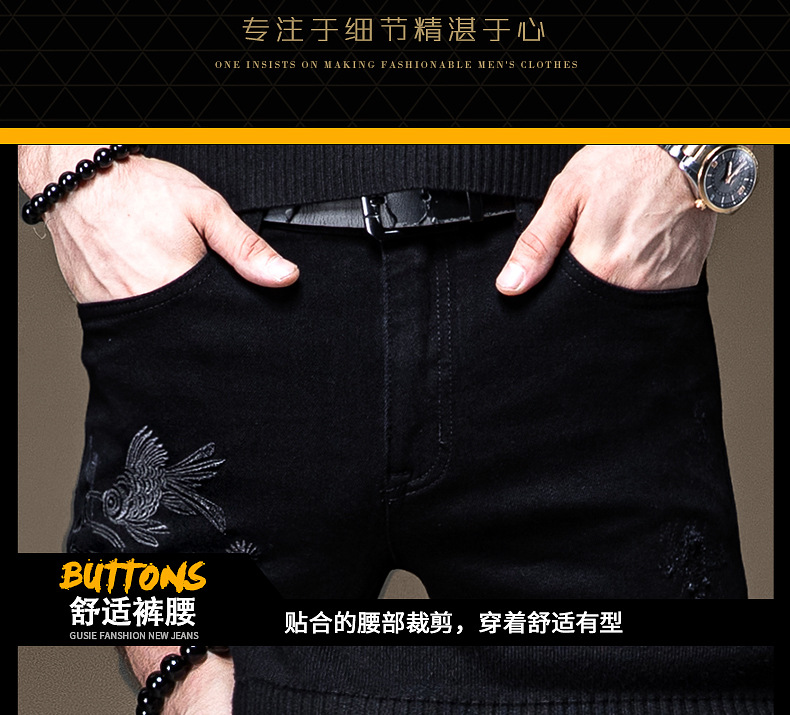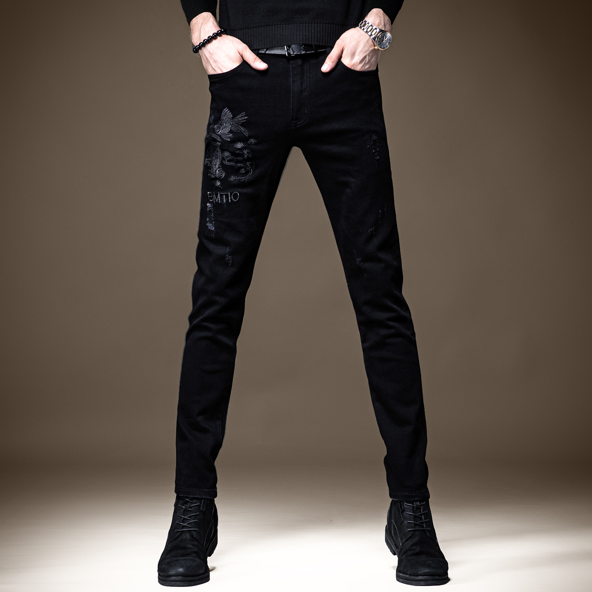봄 여름 남성용 하이 엔드 유럽 스테이션 퓨어 블랙 자수 청바지 남성용 캐주얼 자수 긴 바지 드롭 배송스토어 가기