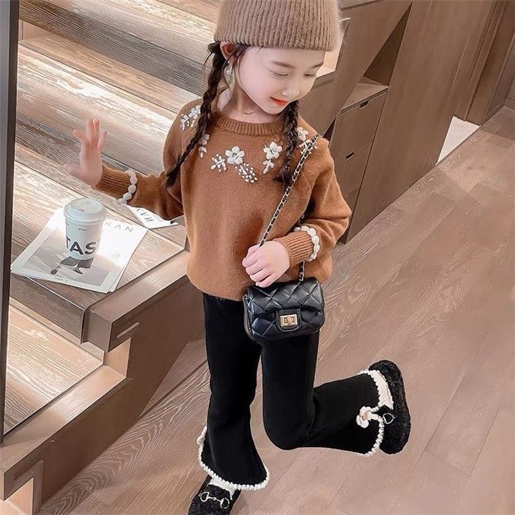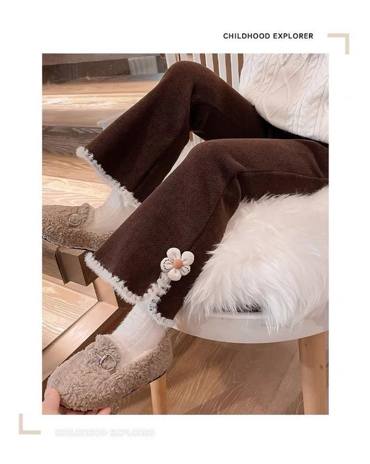 소녀 바지 2024 새로운 봄과 가을 서양식 아동복 아기 봄 온라인 유명 인사 플레어 바지 스트레치 어린이스토어 가기