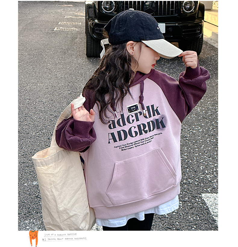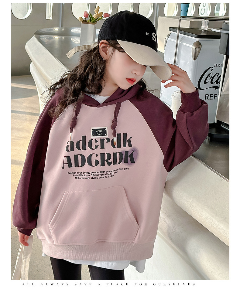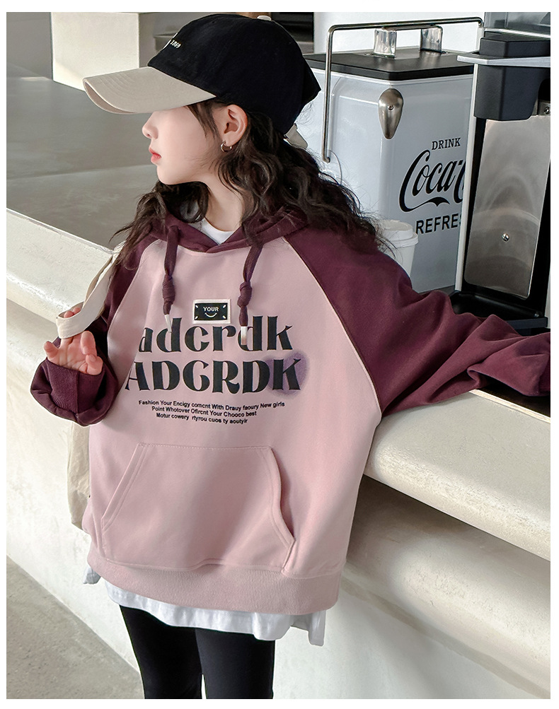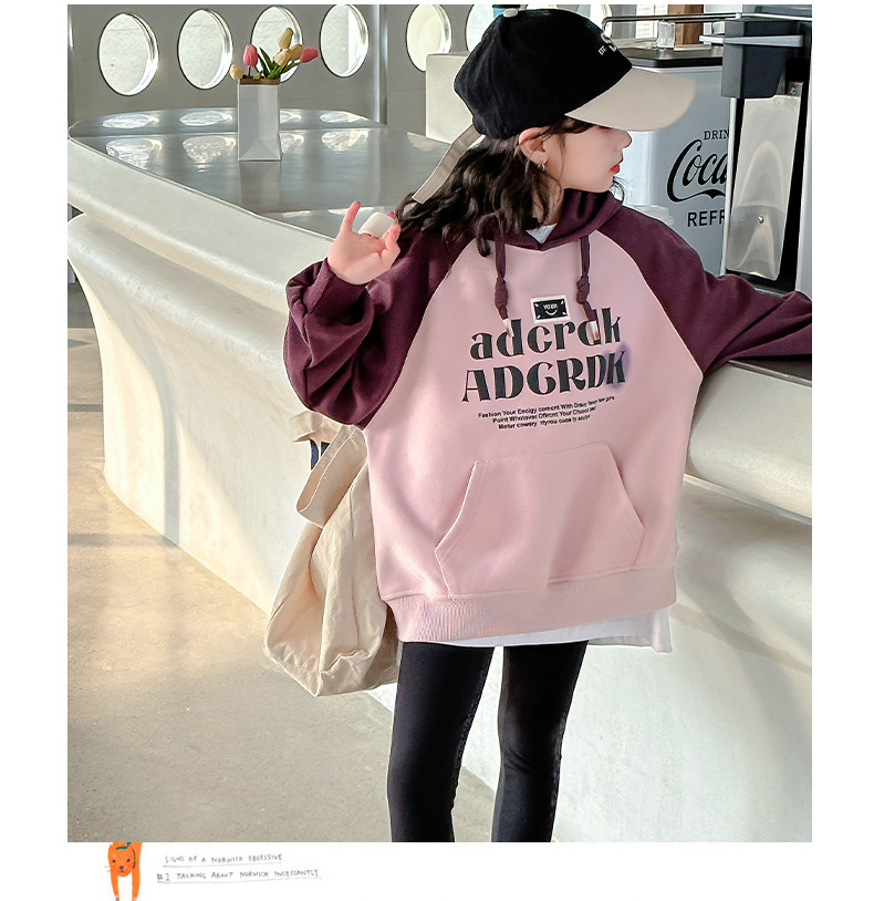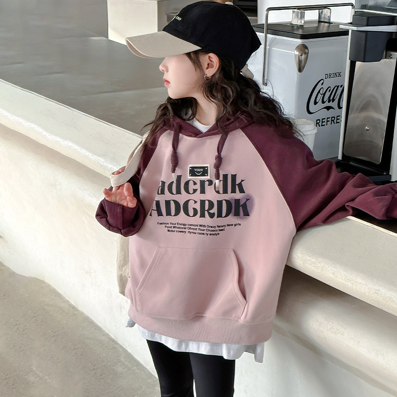 소녀 스웨터 봄과 가을 2024 새로운 어린이 서양식 중형 및 대형 아동복 온라인 유명 인사 긴 소매 캐주얼 세련된 후드 탑스토어 가기