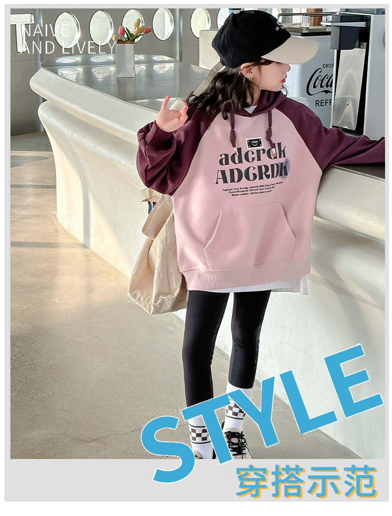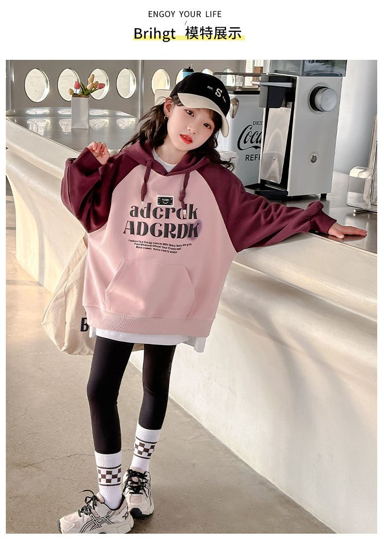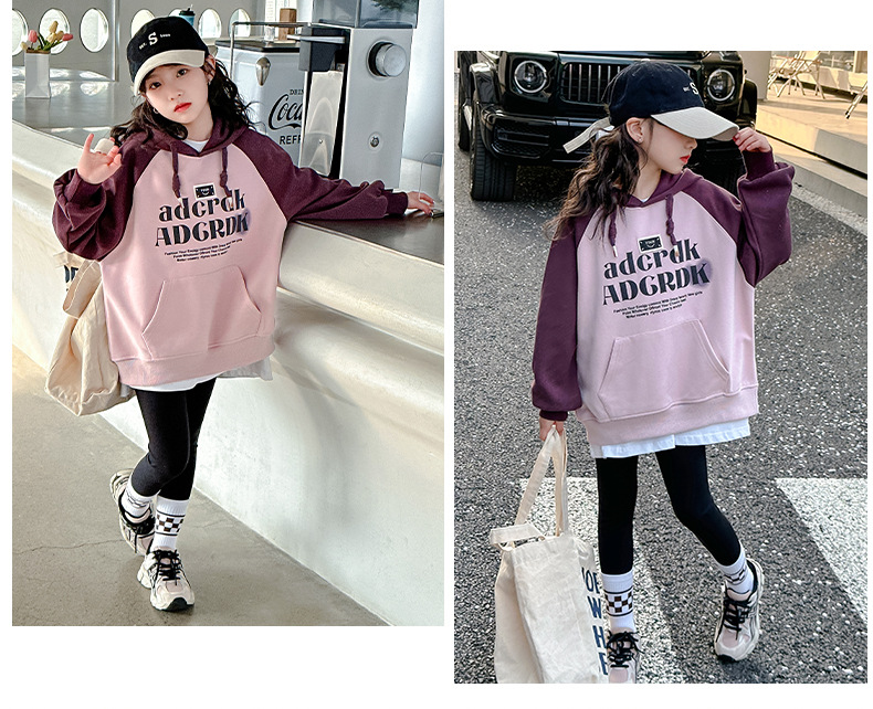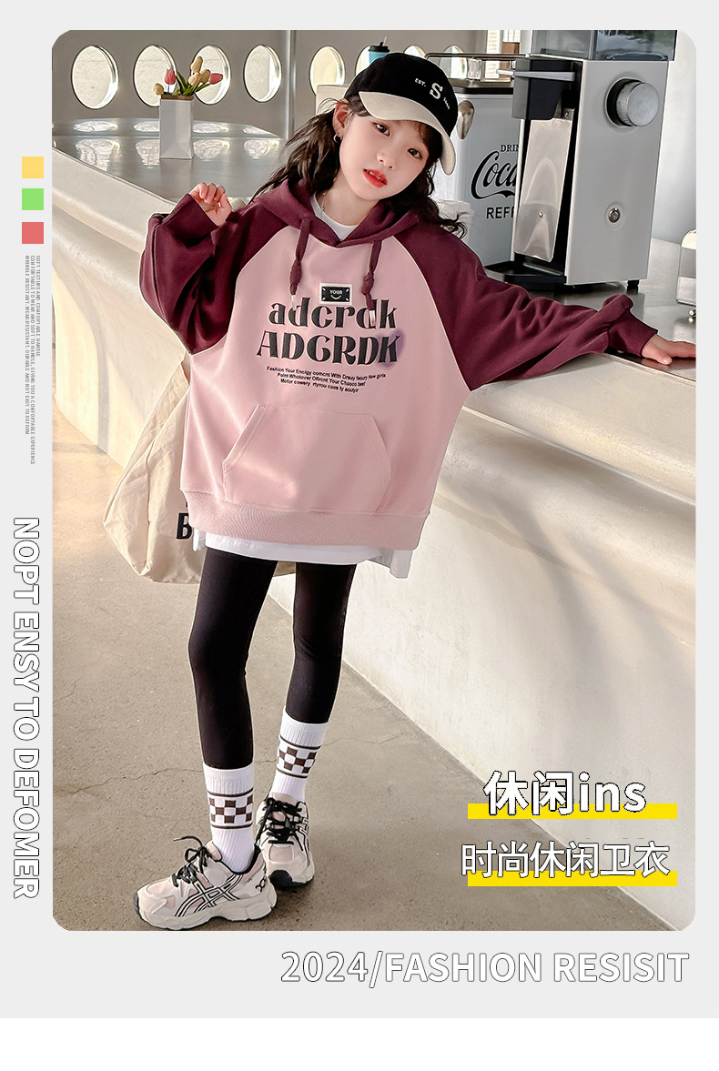 소녀 스웨터 봄과 가을 2024 새로운 어린이 서양식 중형 및 대형 아동복 온라인 유명 인사 긴 소매 캐주얼 세련된 후드 탑스토어 가기