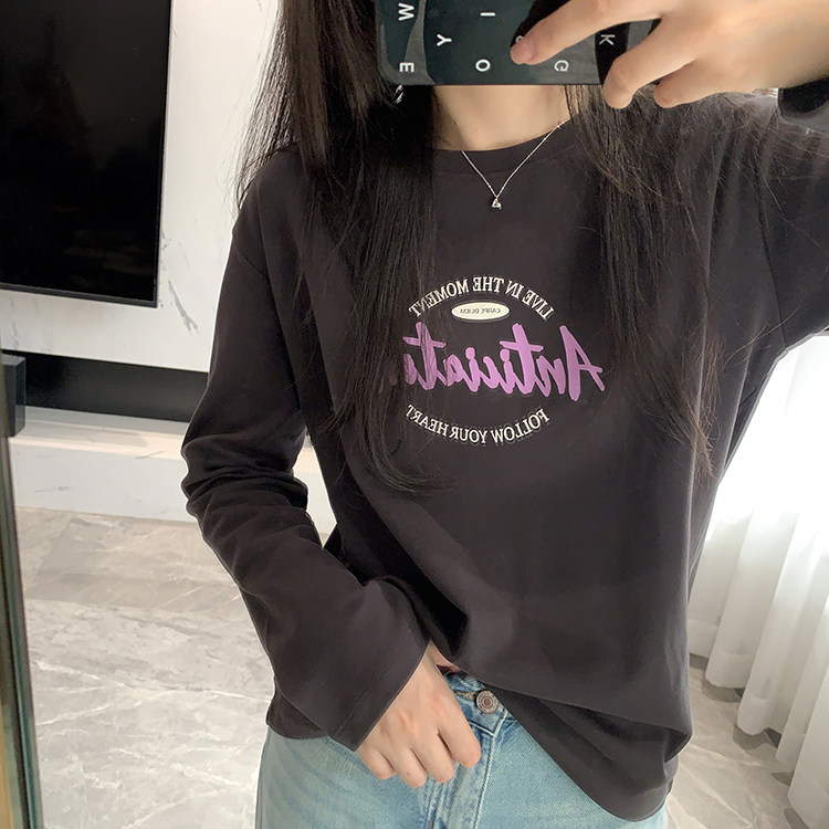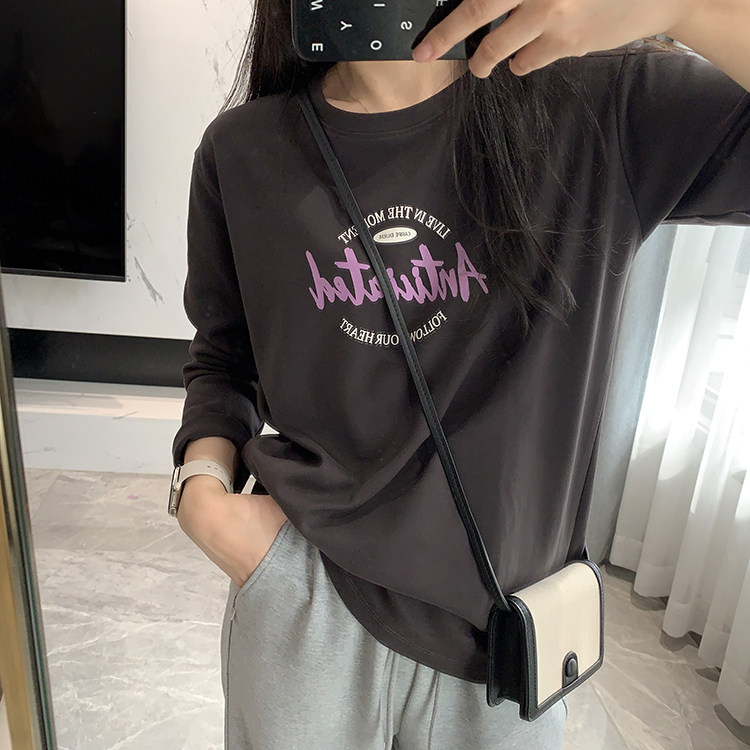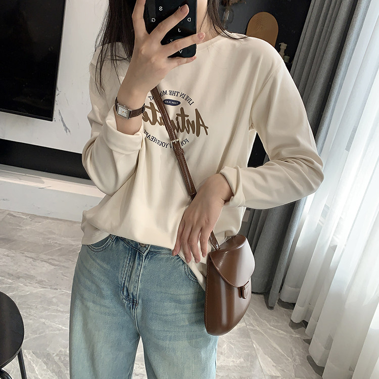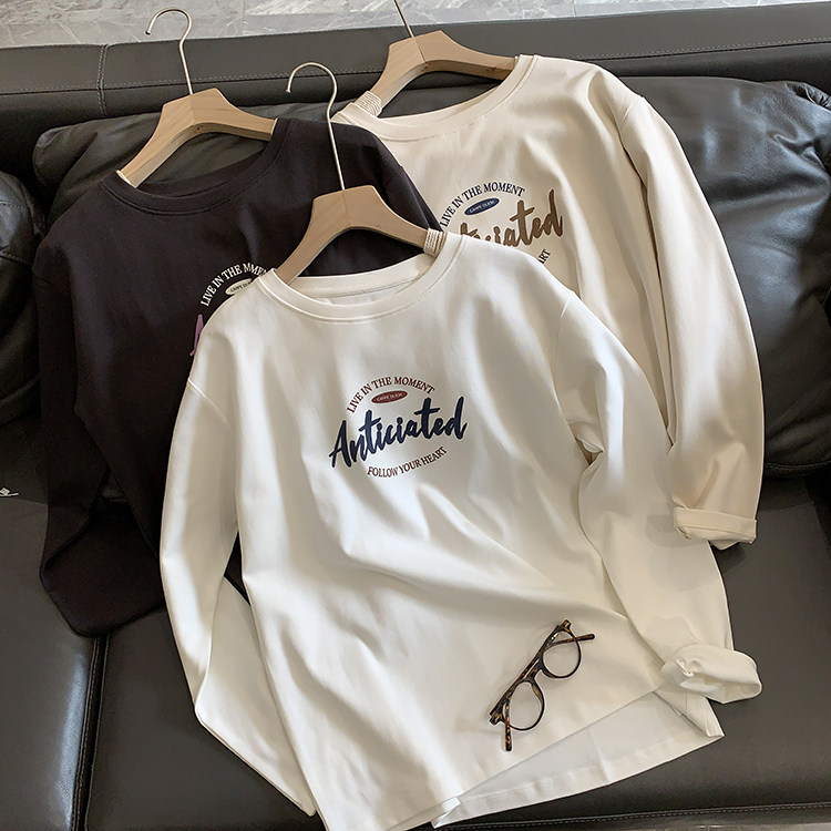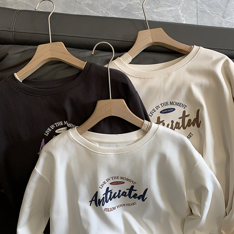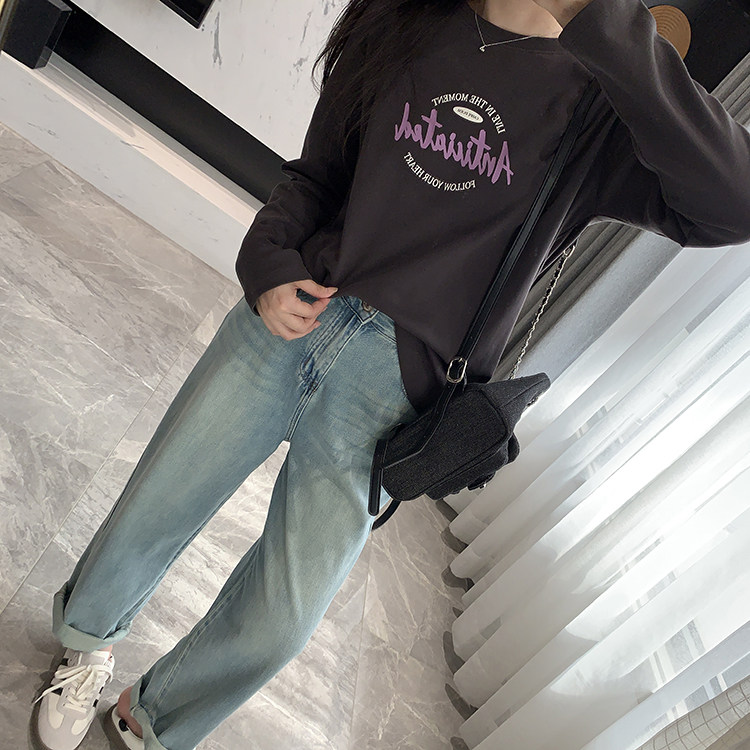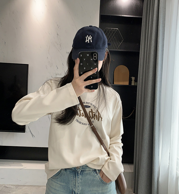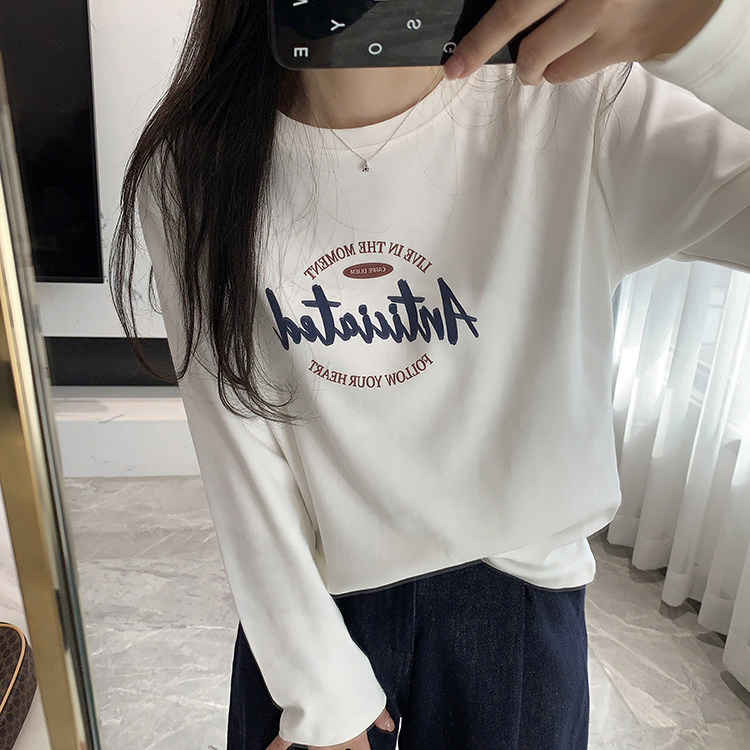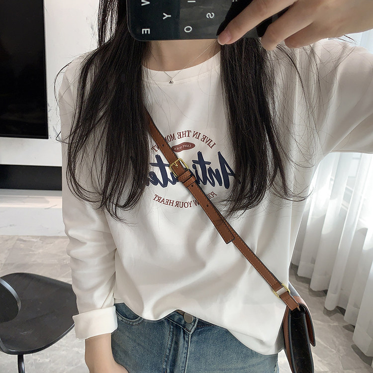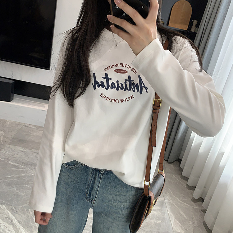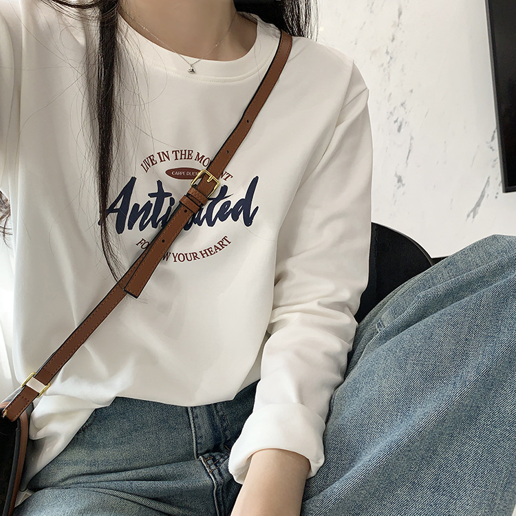 봄은 늦지 않습니다 ~ 고전적인 미국 문자 긴 소매 2024 봄 새로운 둥근 목 긴 소매 올 매치 프린트 티셔츠스토어 가기