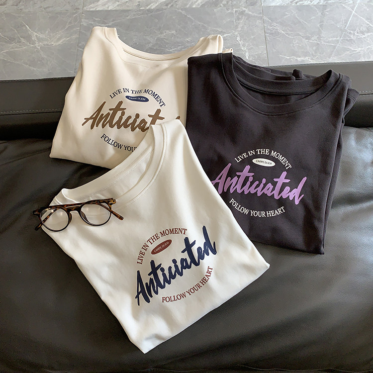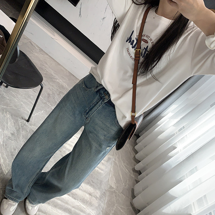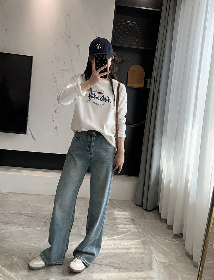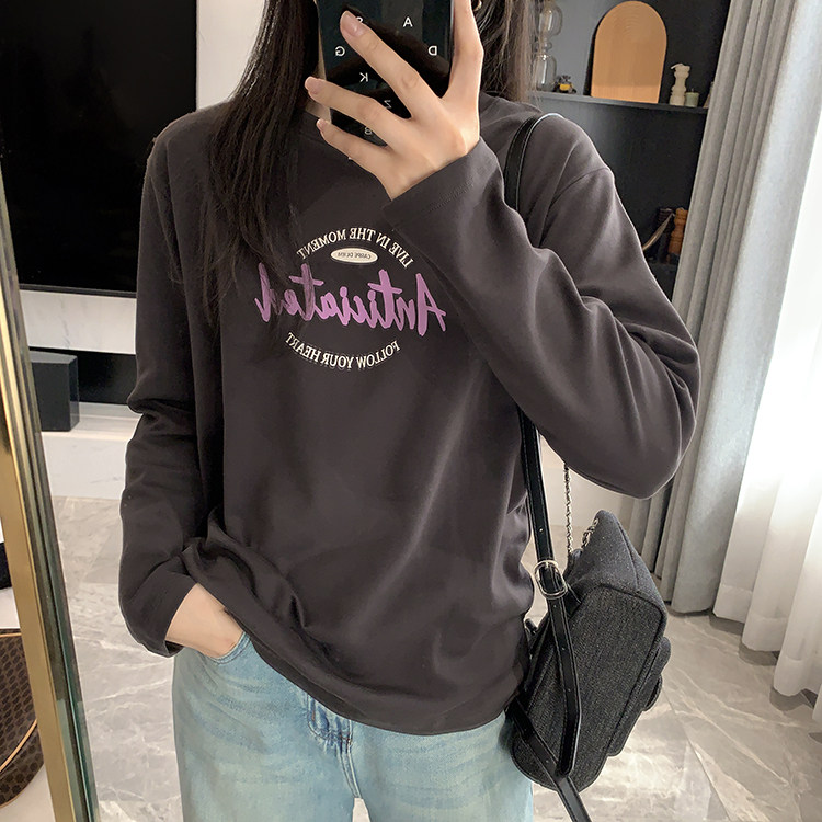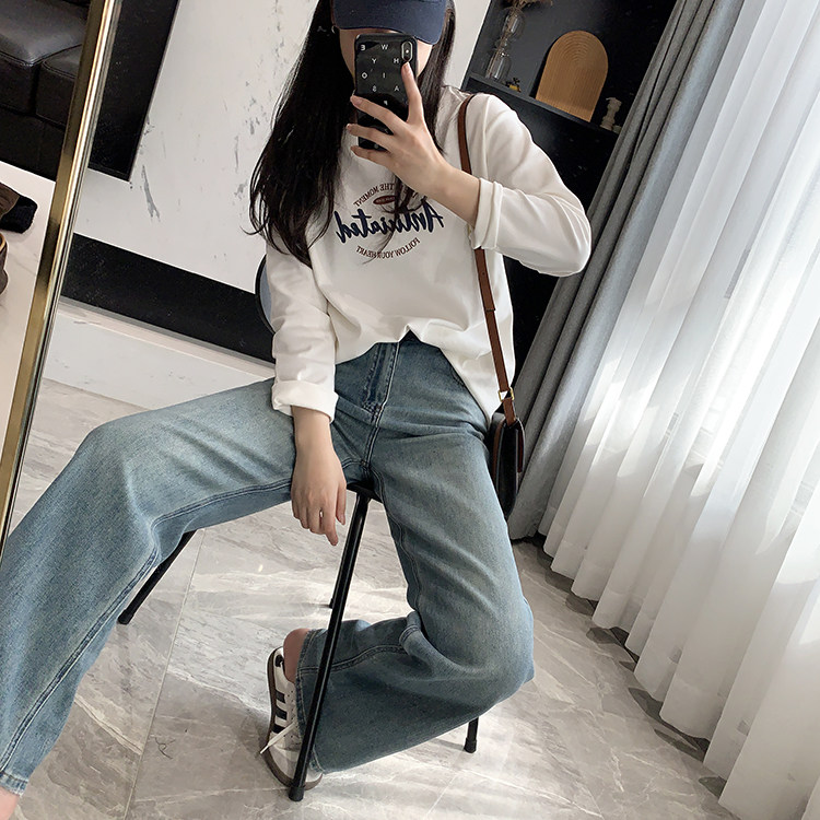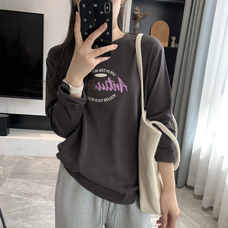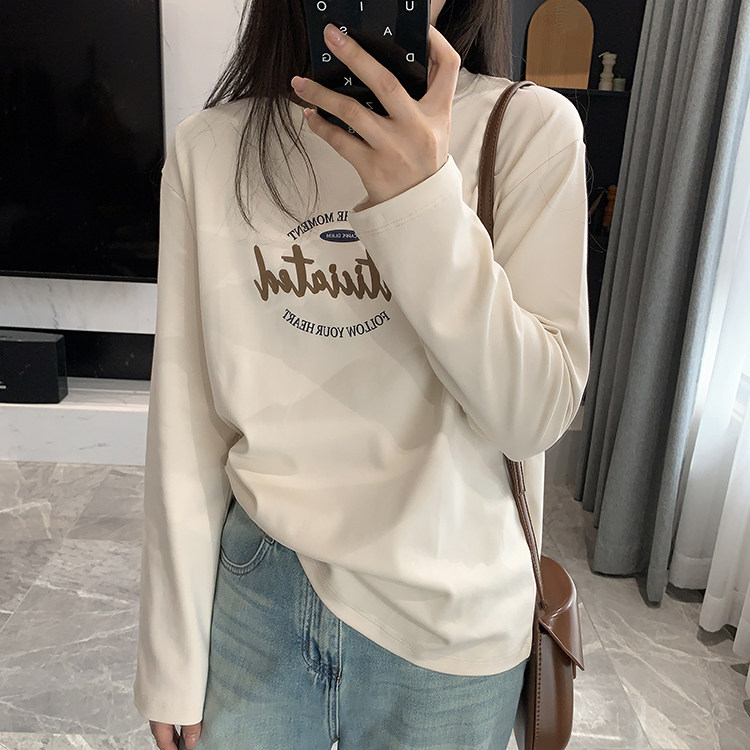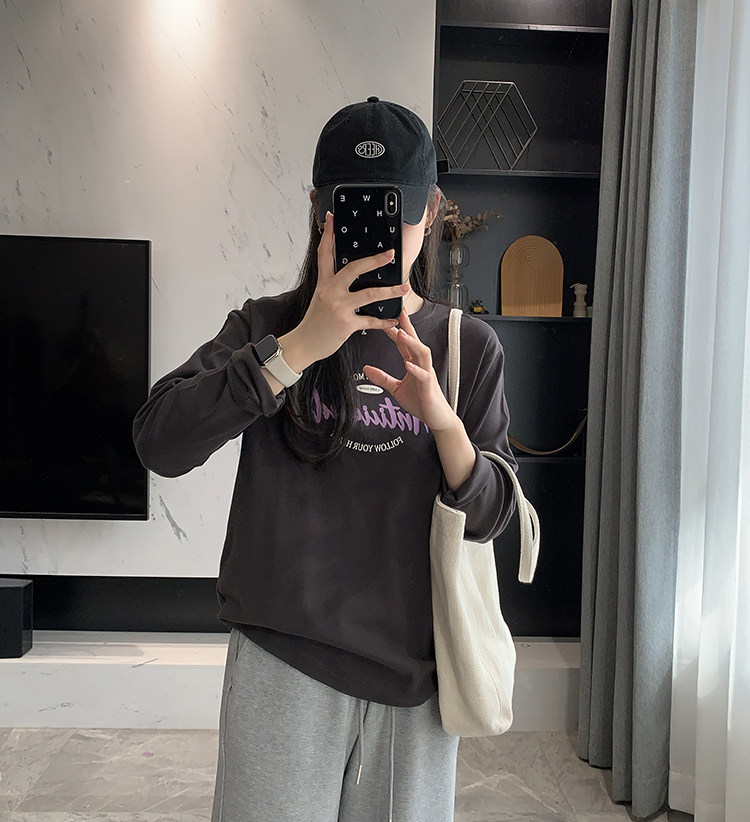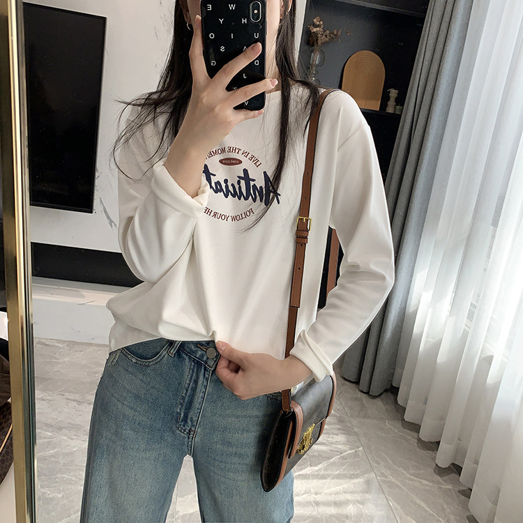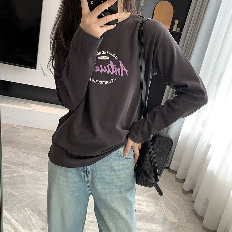 봄은 늦지 않습니다 ~ 고전적인 미국 문자 긴 소매 2024 봄 새로운 둥근 목 긴 소매 올 매치 프린트 티셔츠스토어 가기