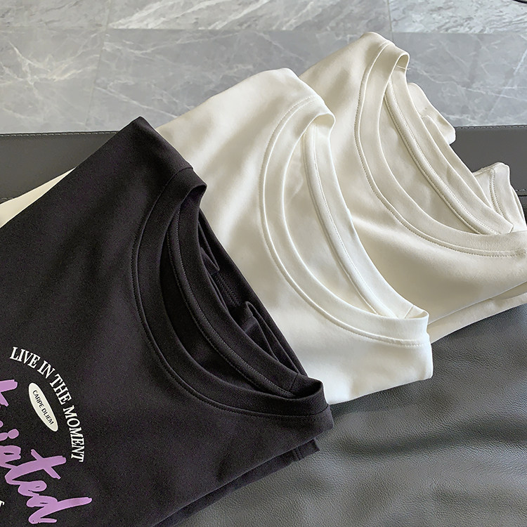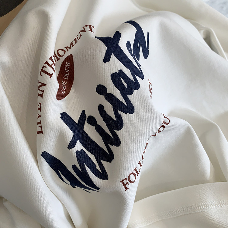 봄은 늦지 않습니다 ~ 고전적인 미국 문자 긴 소매 2024 봄 새로운 둥근 목 긴 소매 올 매치 프린트 티셔츠