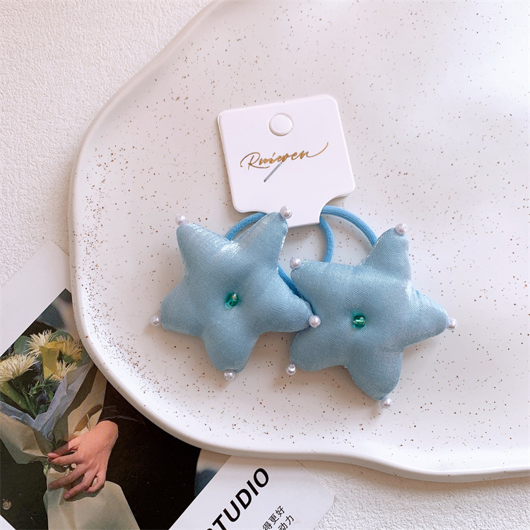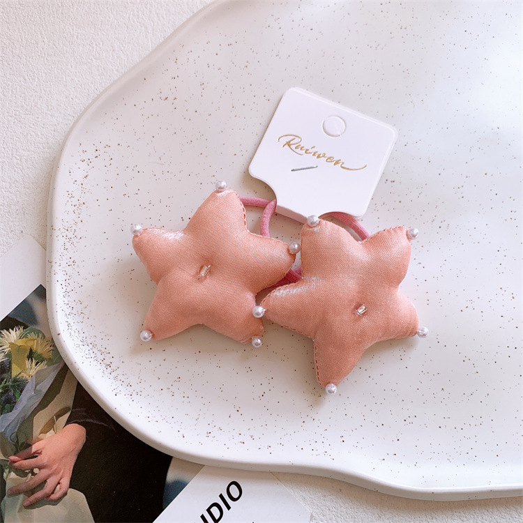 새로운 한국식 어린이 진주 펜타그램 스타 헤어 밴드 어린 소녀 헤어 타이 고무 밴드 아기 쌍 헤어 로프 헤어 액세서리