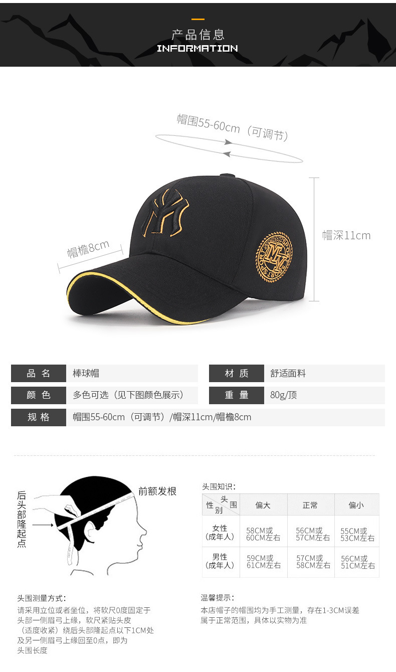 本款帽檐长度7.5CM,帽围55-60可调节,重量90克左右