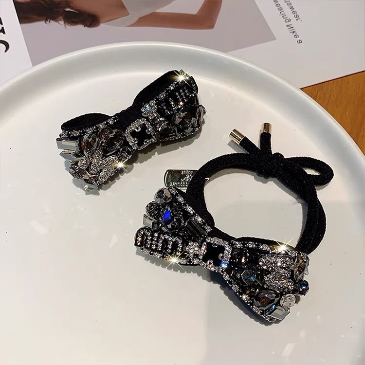 중공업 풀 다이아몬드 크리스탈 클립 헤드 로프 라이트 럭셔리 고급 고급 앞머리 클립 틈새 헤어 밴드 헤어 액세서리 머리 장식 클립 고무 밴드