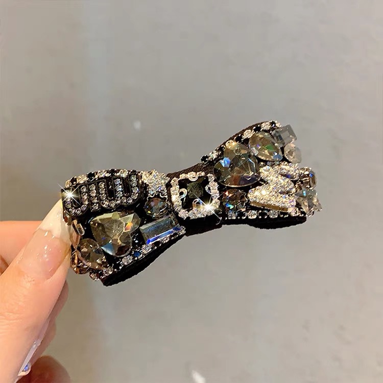 중공업 풀 다이아몬드 크리스탈 클립 헤드 로프 라이트 럭셔리 고급 고급 앞머리 클립 틈새 헤어 밴드 헤어 액세서리 머리 장식 클립 고무 밴드스토어 가기