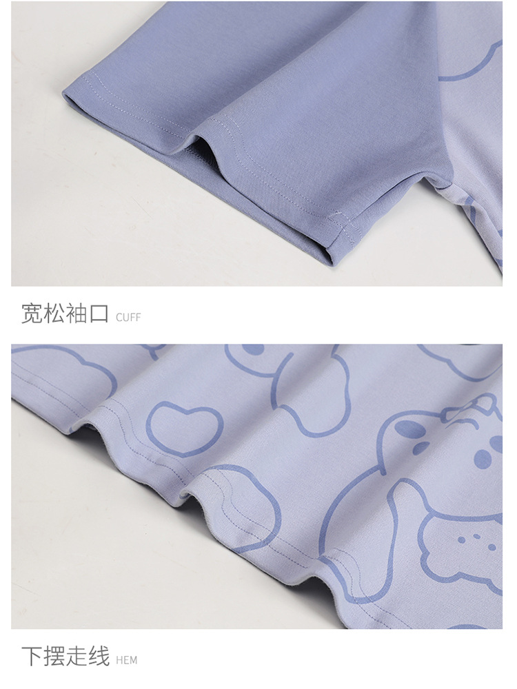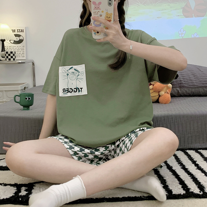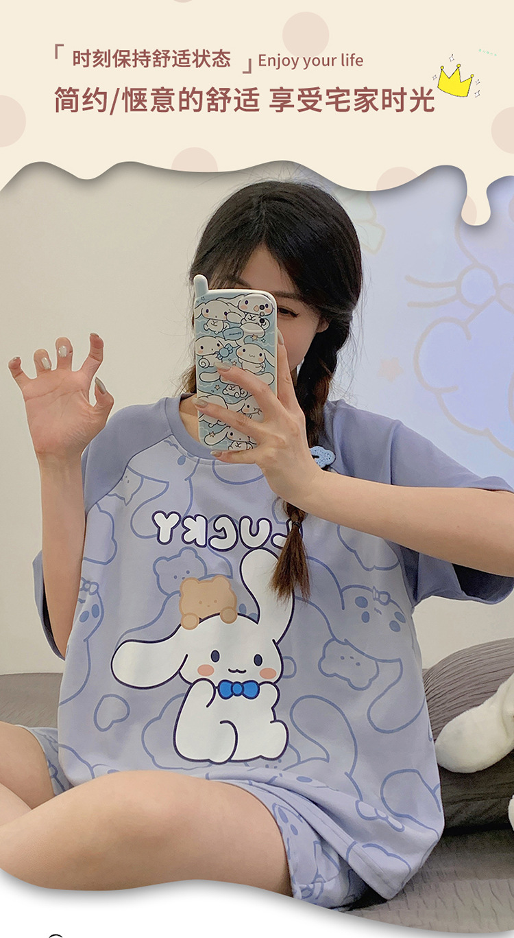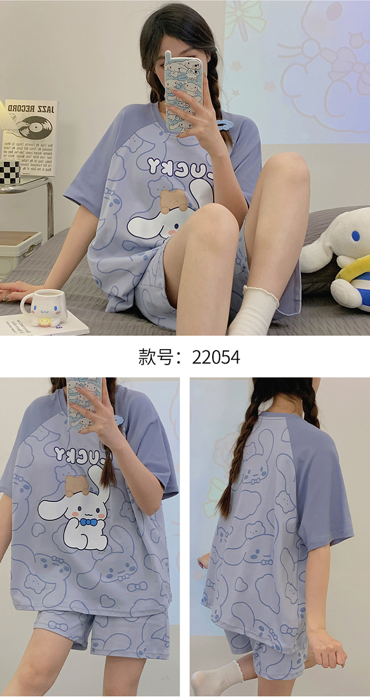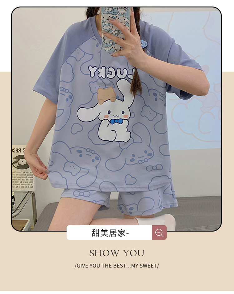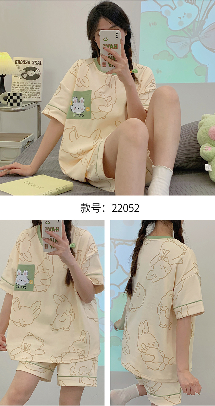 2024 새로운 여름 잠옷 여성 반팔 반바지 둥근 목 풀오버 귀여운 만화 세트 홈 웨어는 외부에서 착용 할 수 있습니다.스토어 가기