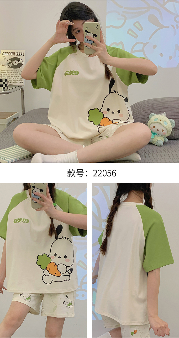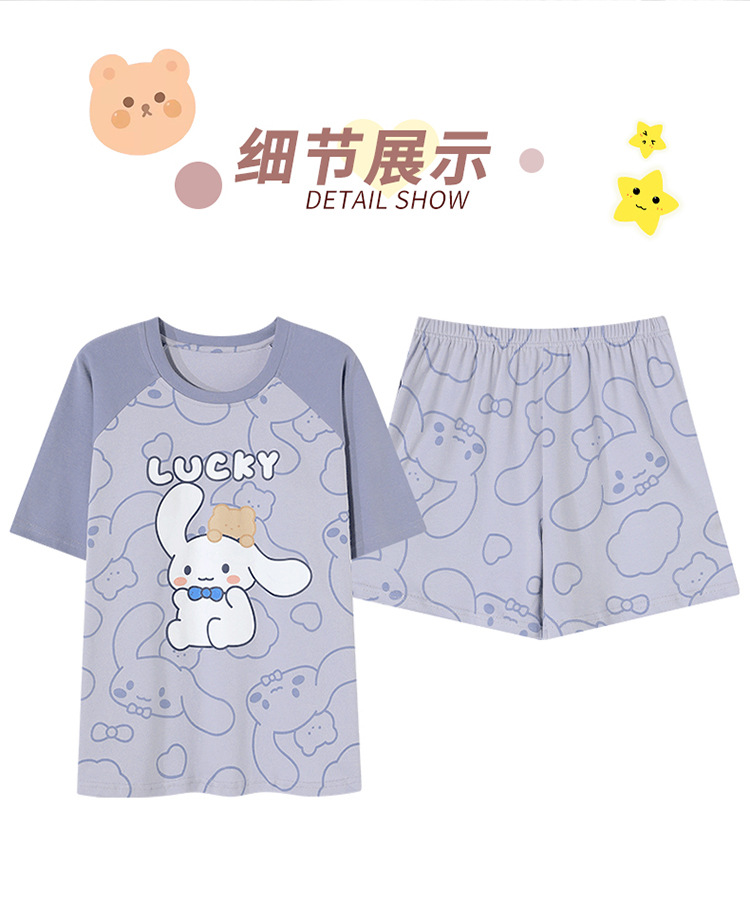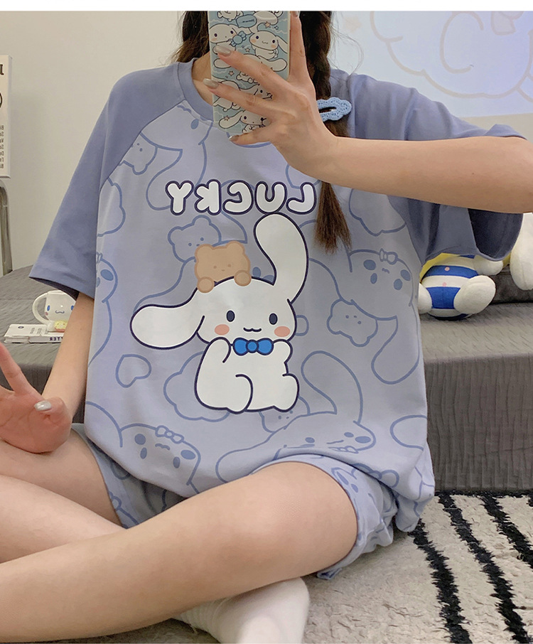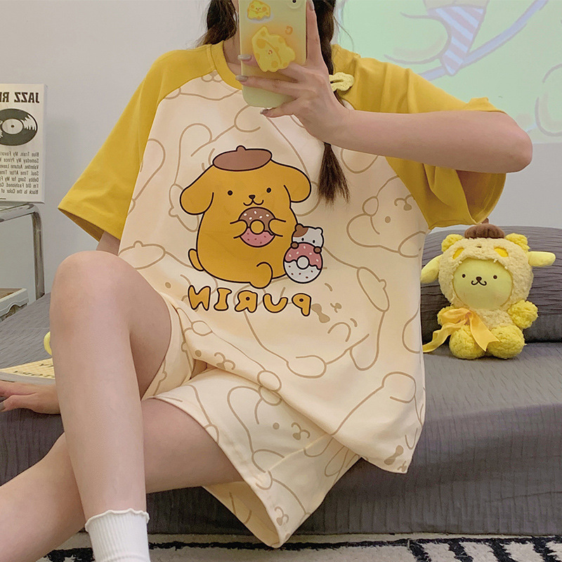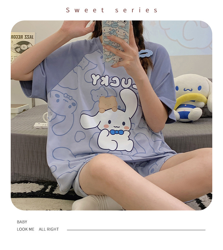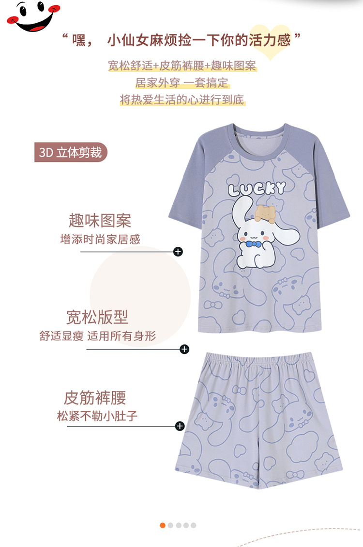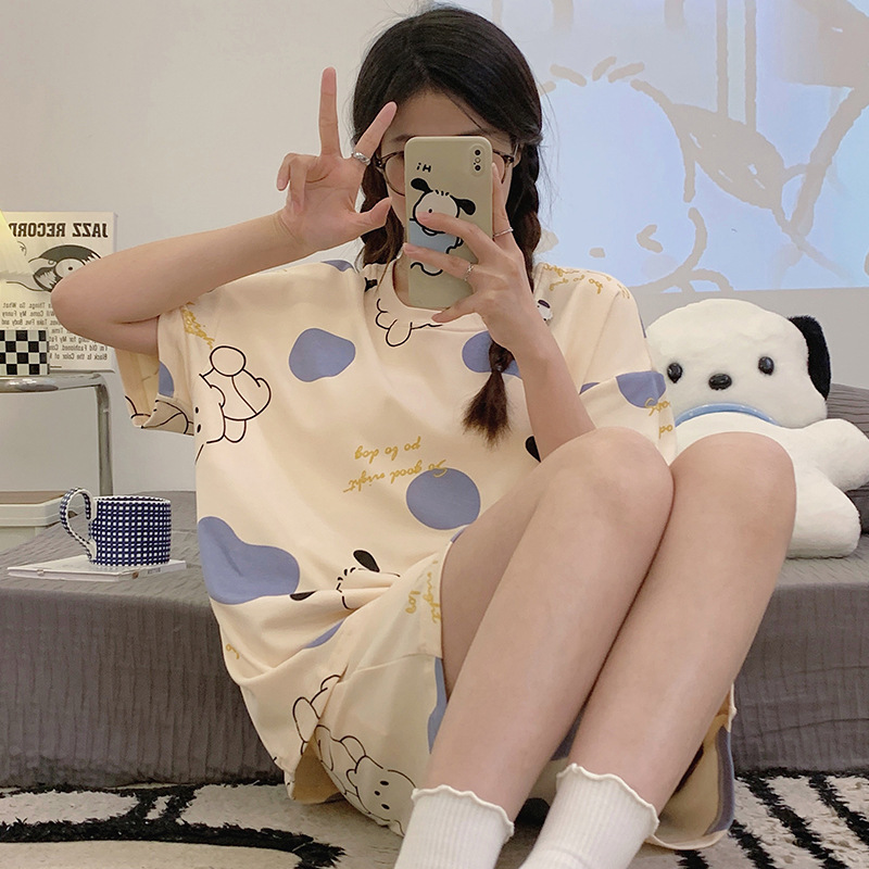 2024 새로운 여름 잠옷 여성 반팔 반바지 둥근 목 풀오버 귀여운 만화 세트 홈 웨어는 외부에서 착용 할 수 있습니다.스토어 가기