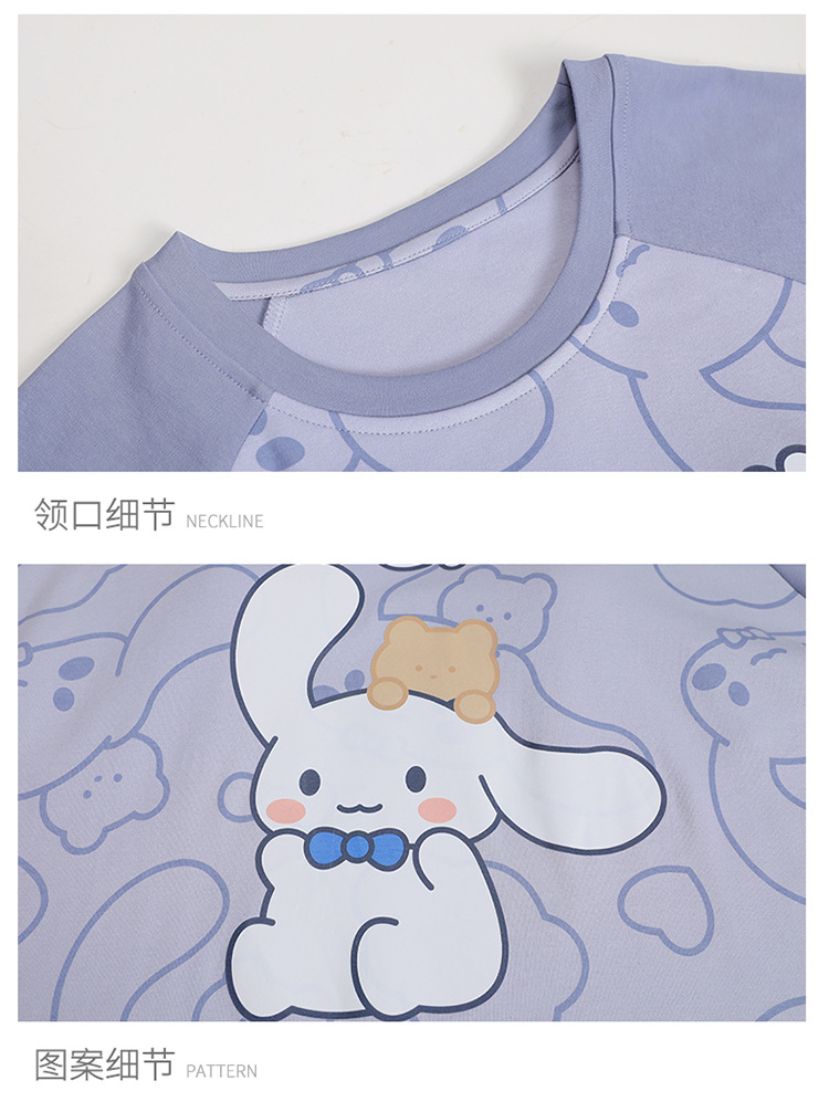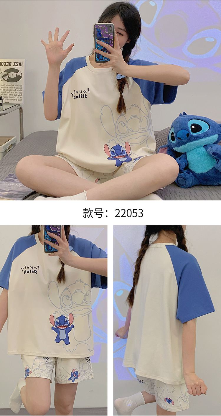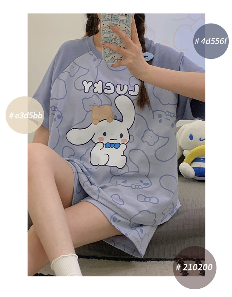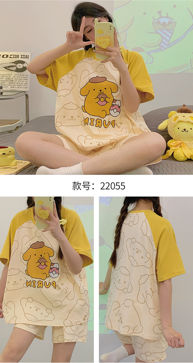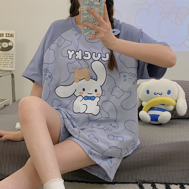 2024 새로운 여름 잠옷 여성 반팔 반바지 둥근 목 풀오버 귀여운 만화 세트 홈 웨어는 외부에서 착용 할 수 있습니다.스토어 가기