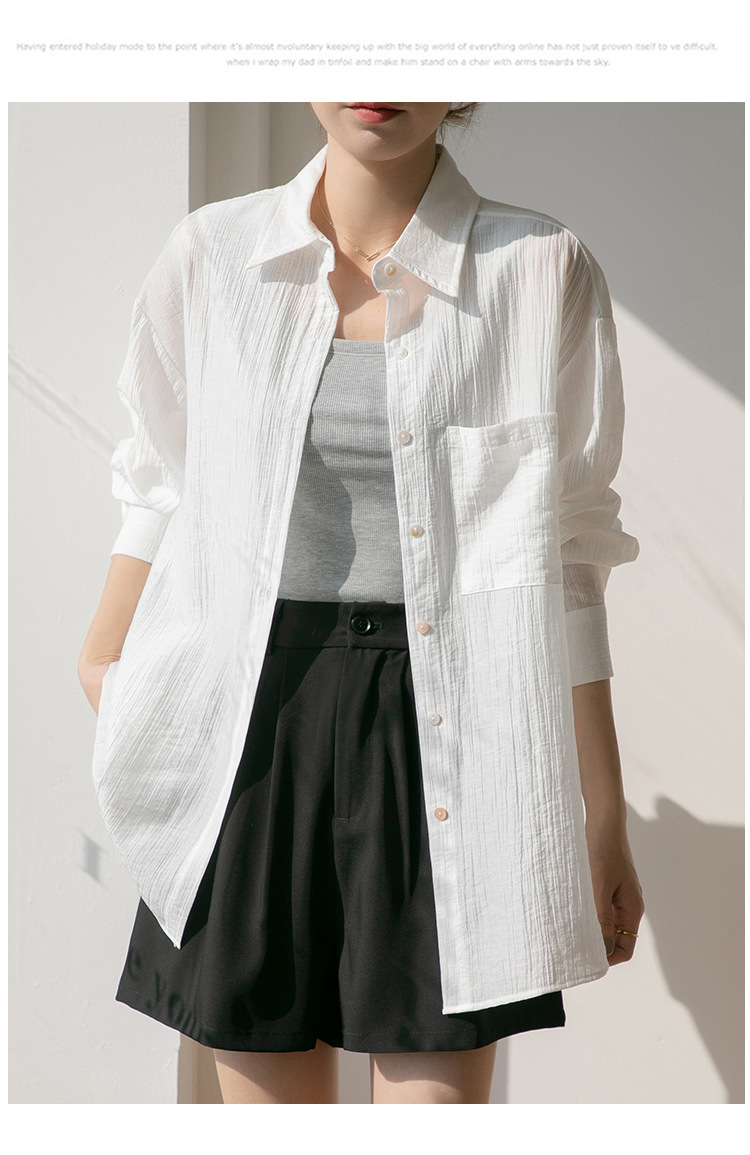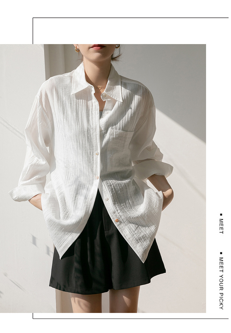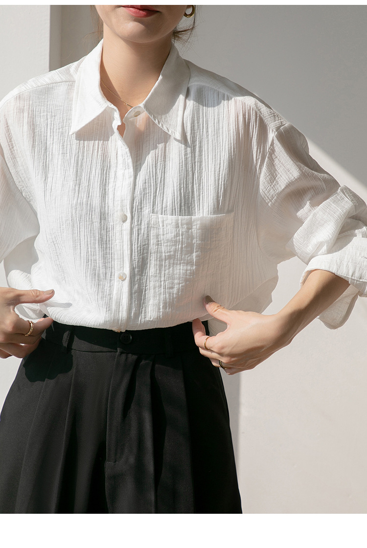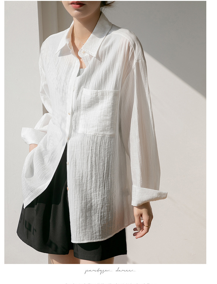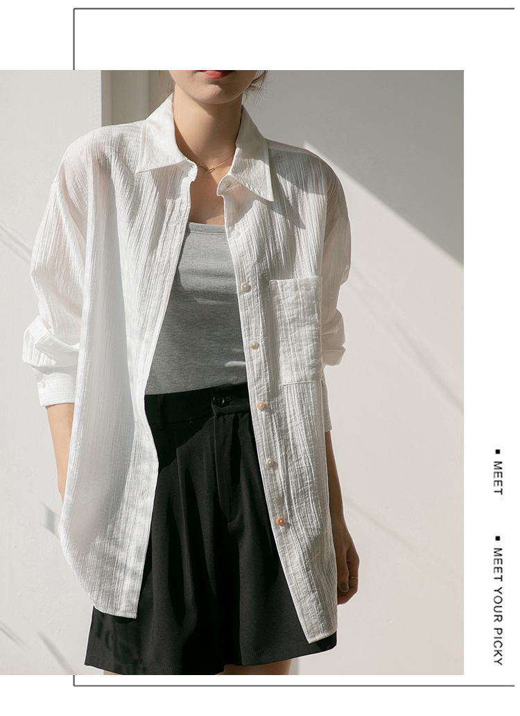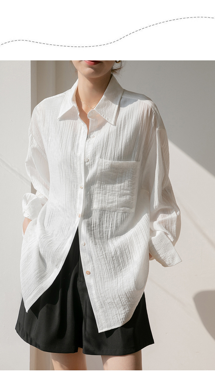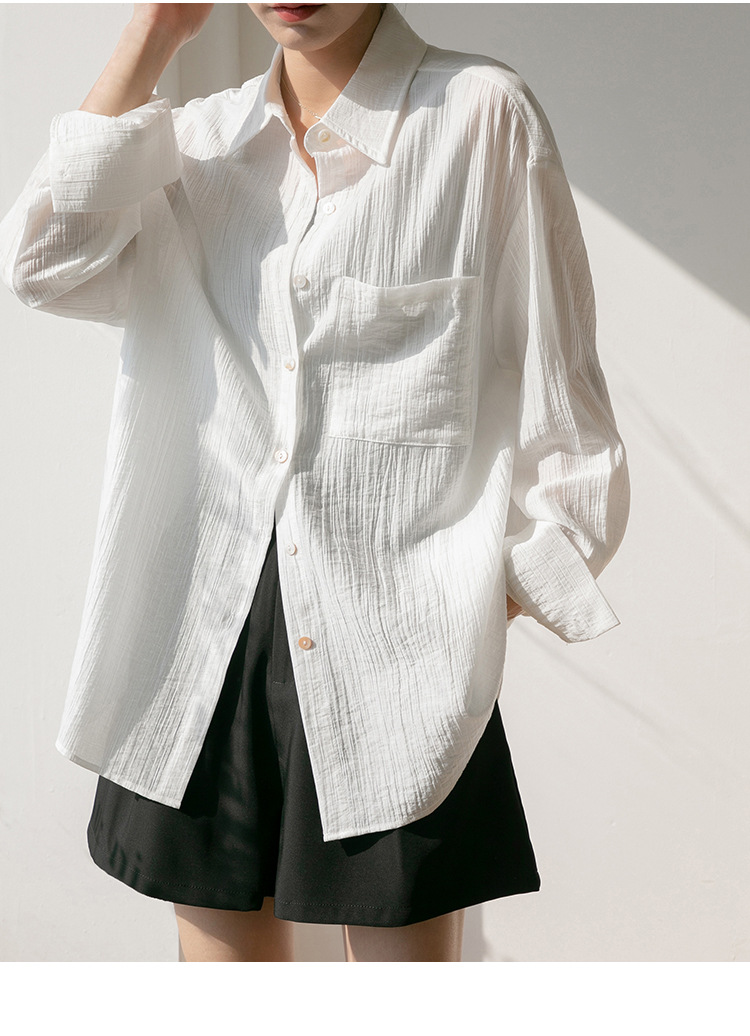 2025 여름 신상 루즈핏 질감 슬림 긴팔 텐셀 자외선 차단 셔츠 통기성 단색 라펠 셔츠 여성용스토어 가기