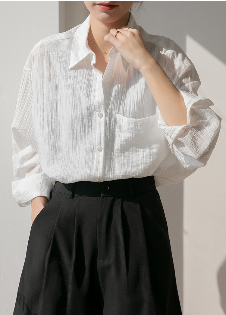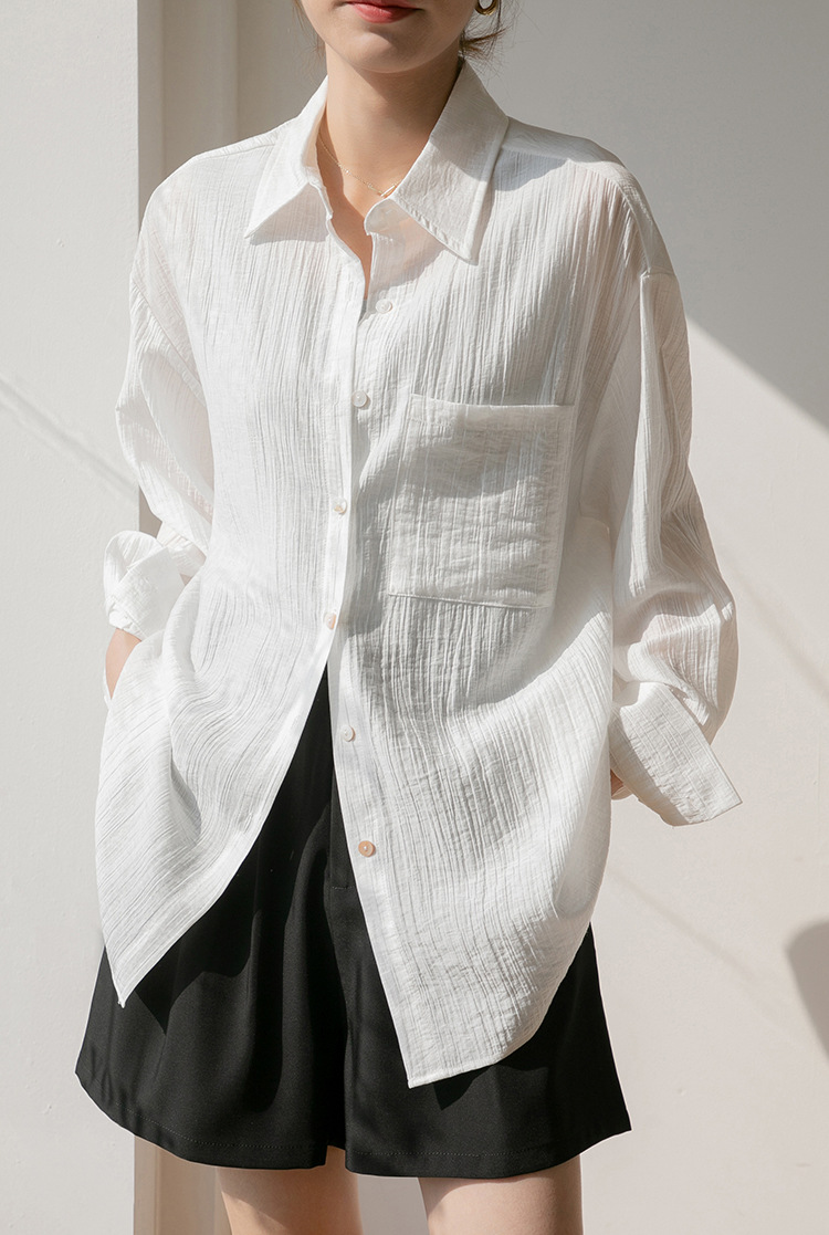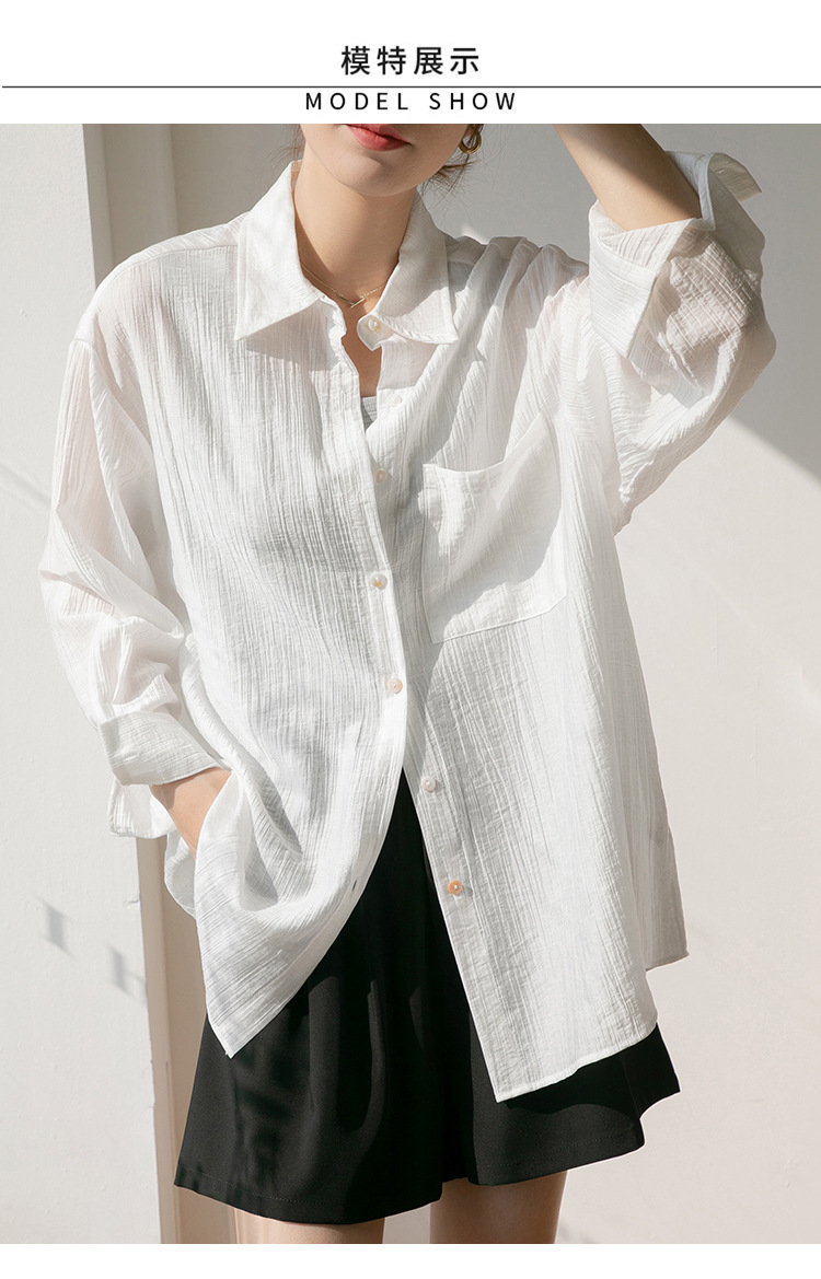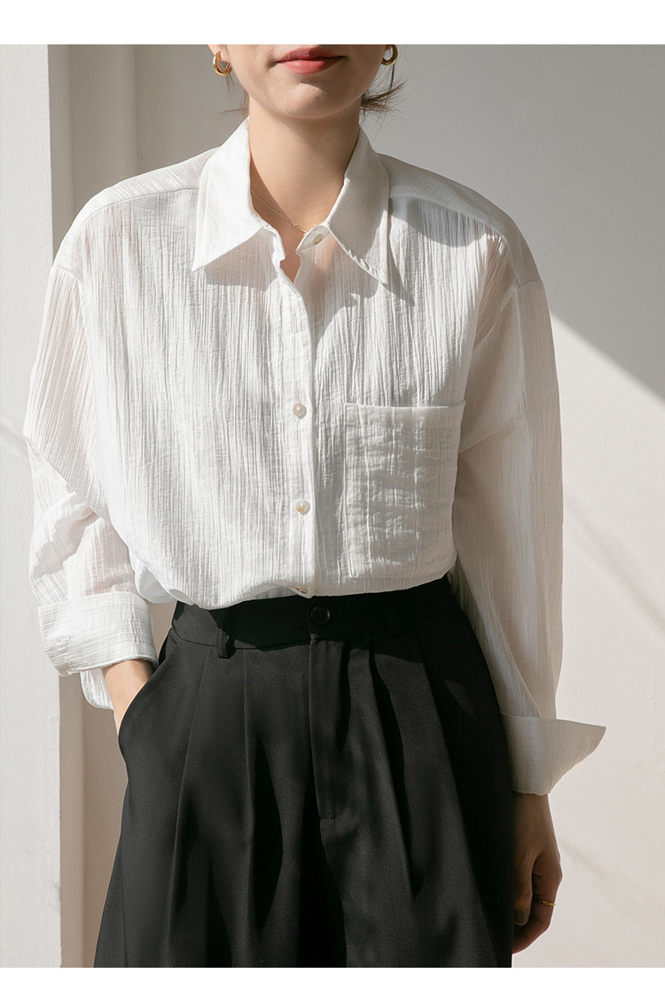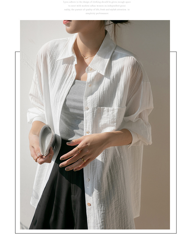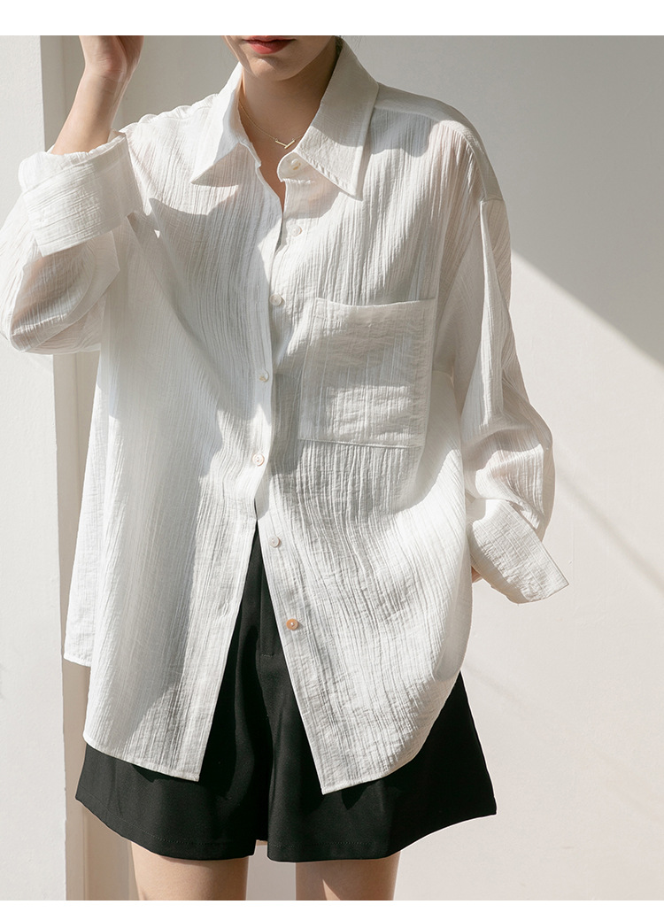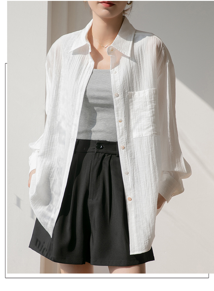 2025 여름 신상 루즈핏 질감 슬림 긴팔 텐셀 자외선 차단 셔츠 통기성 단색 라펠 셔츠 여성용스토어 가기