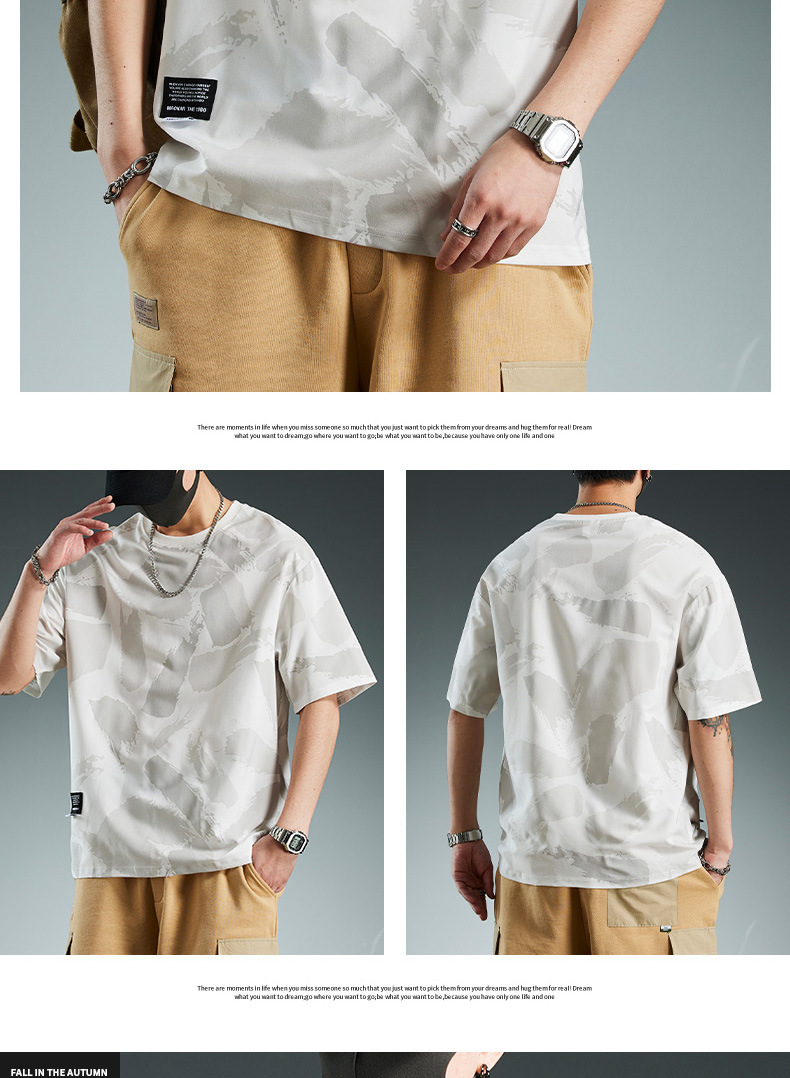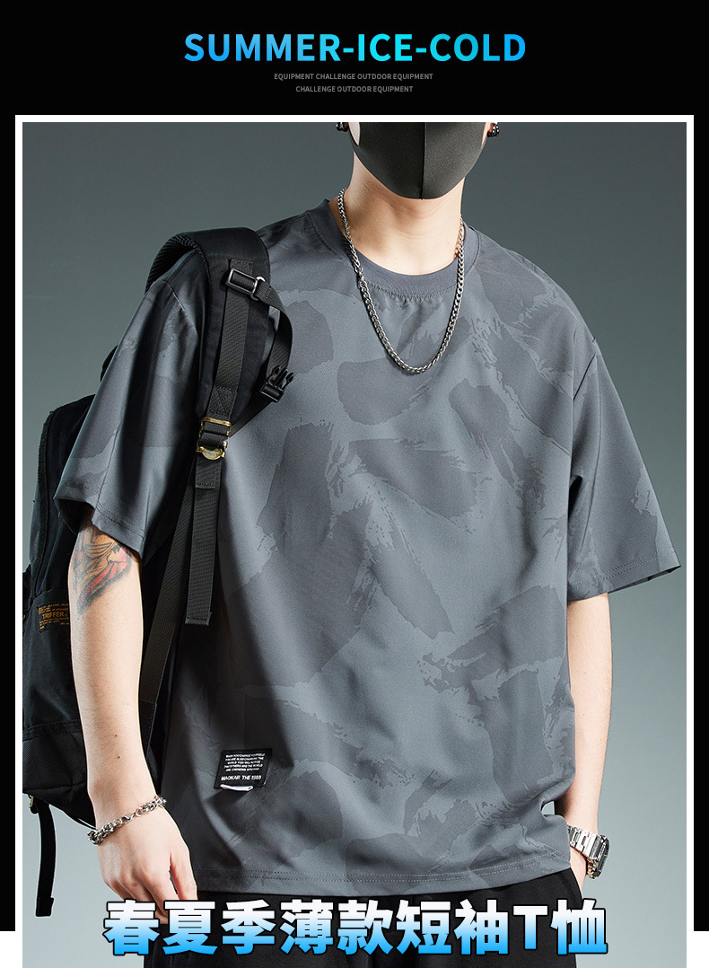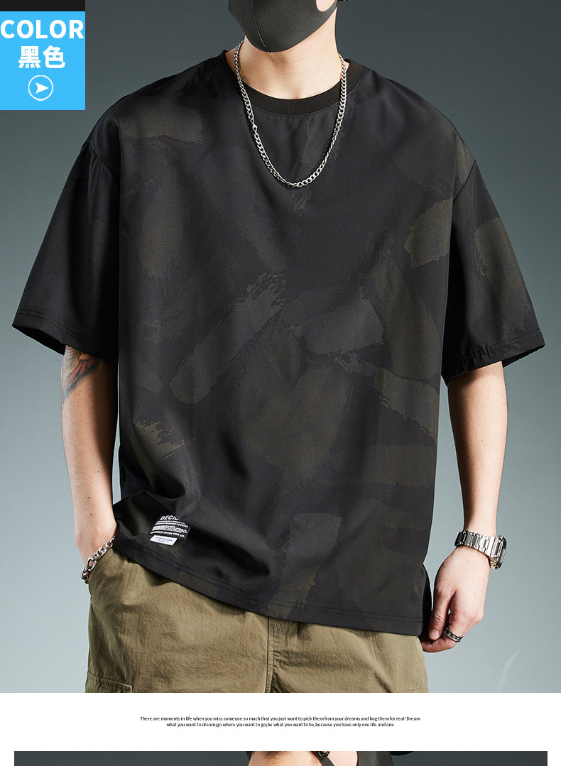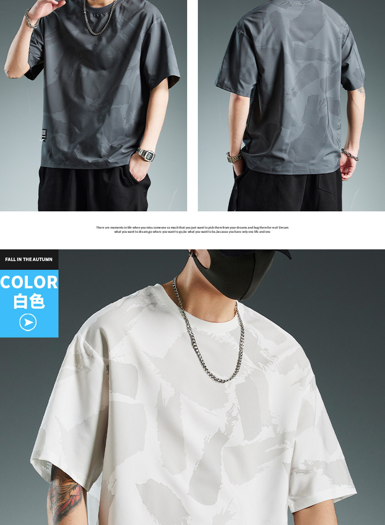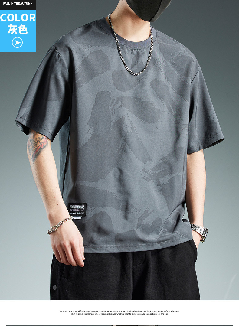 느슨한 통기성 반팔 티셔츠 남성용 트렌디 한 둥근 목 봄과 여름 얇은 패션 브랜드 남성 최고 편안하고 멋진스토어 가기