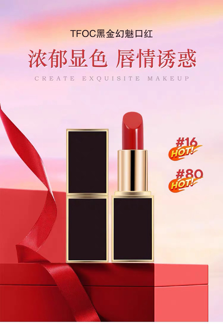 TFOC 블랙 골든 매직 매력 립스틱 무광택 메이크업 쉽게 터치 컵 립스틱 화이트 블랙 튜브 학생스토어 가기