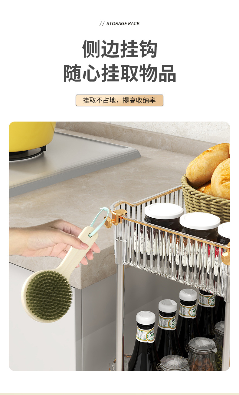 주방 및 욕실 용 다층 투명 트롤리 스토리지 랙 다기능 조직 랙 대용량 이동식 스토리지 랙스토어 가기