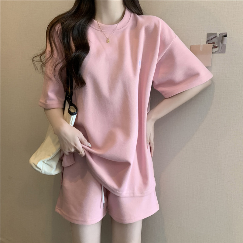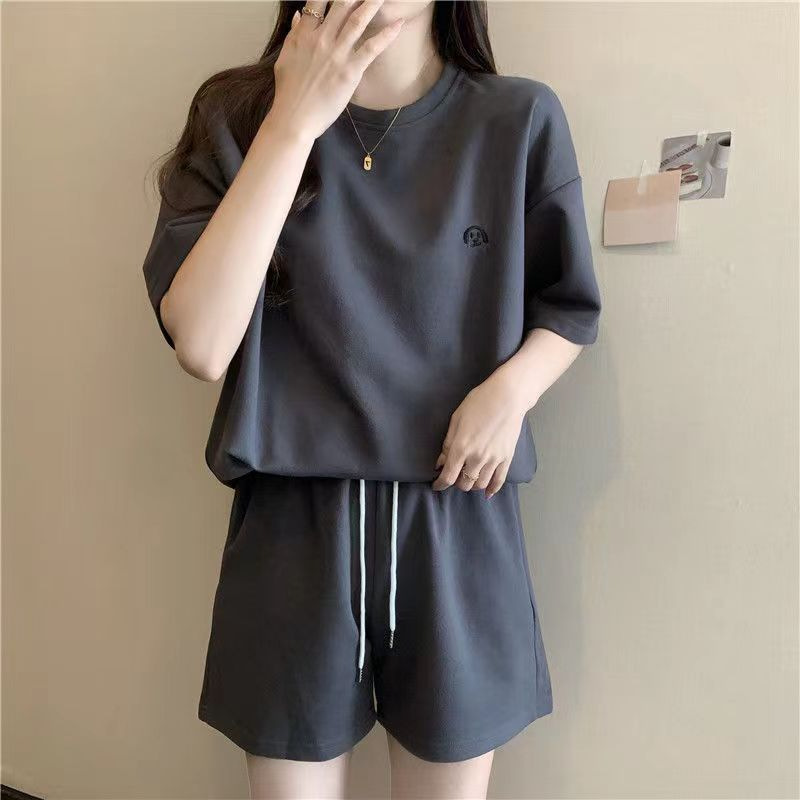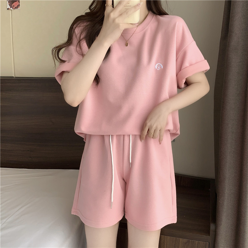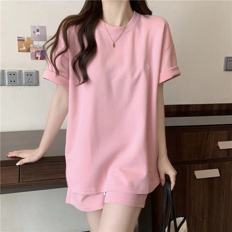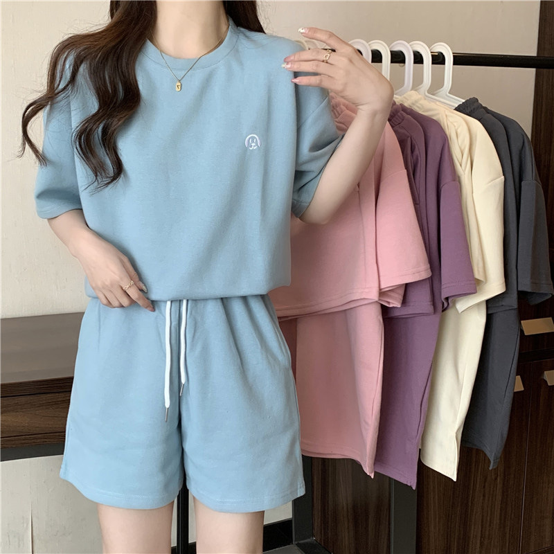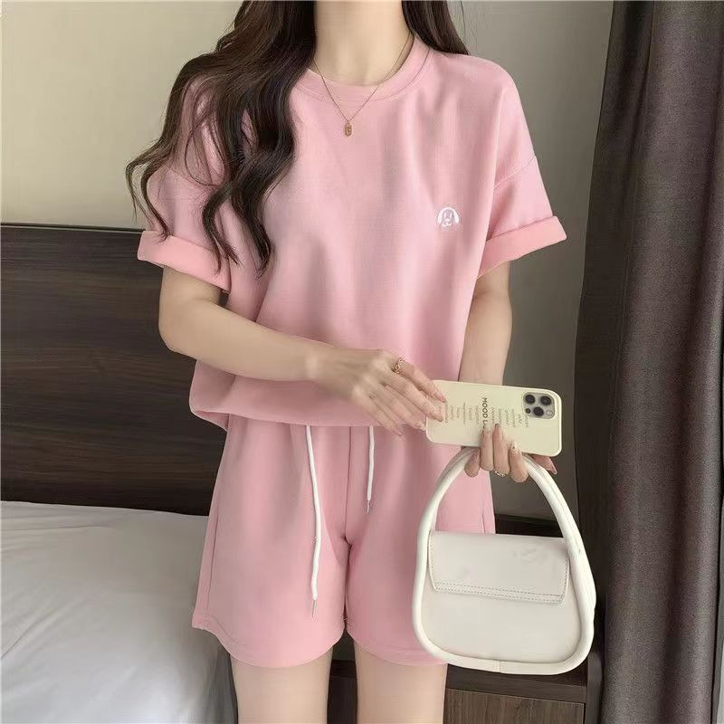 도파민 아이스크림 컬러 2024 여성 여름 반팔 투피스 세트 새로운 스포츠 세트 티셔츠 반바지스토어 가기
