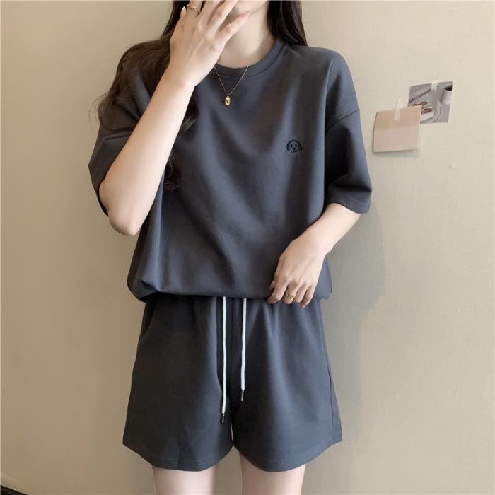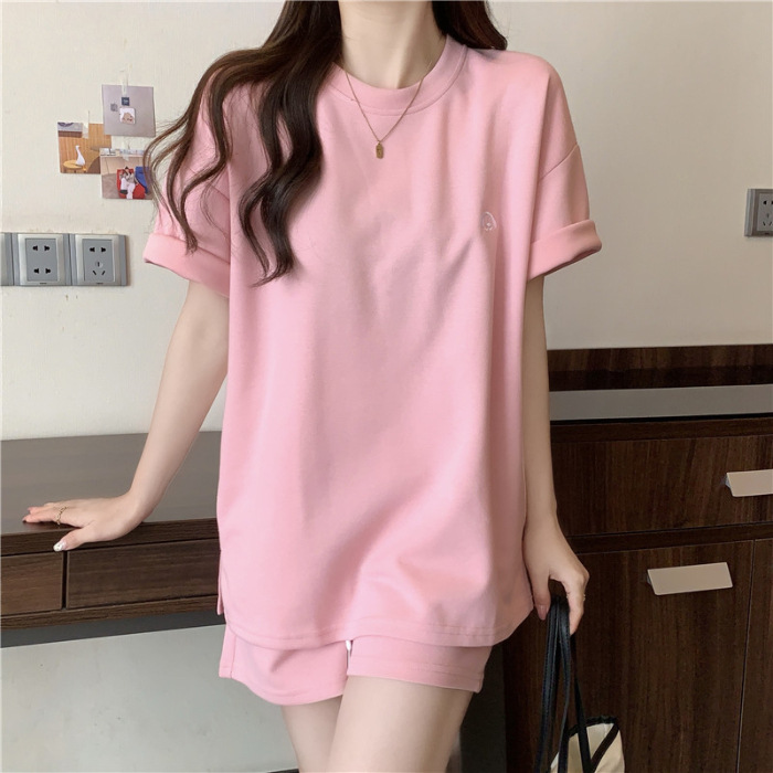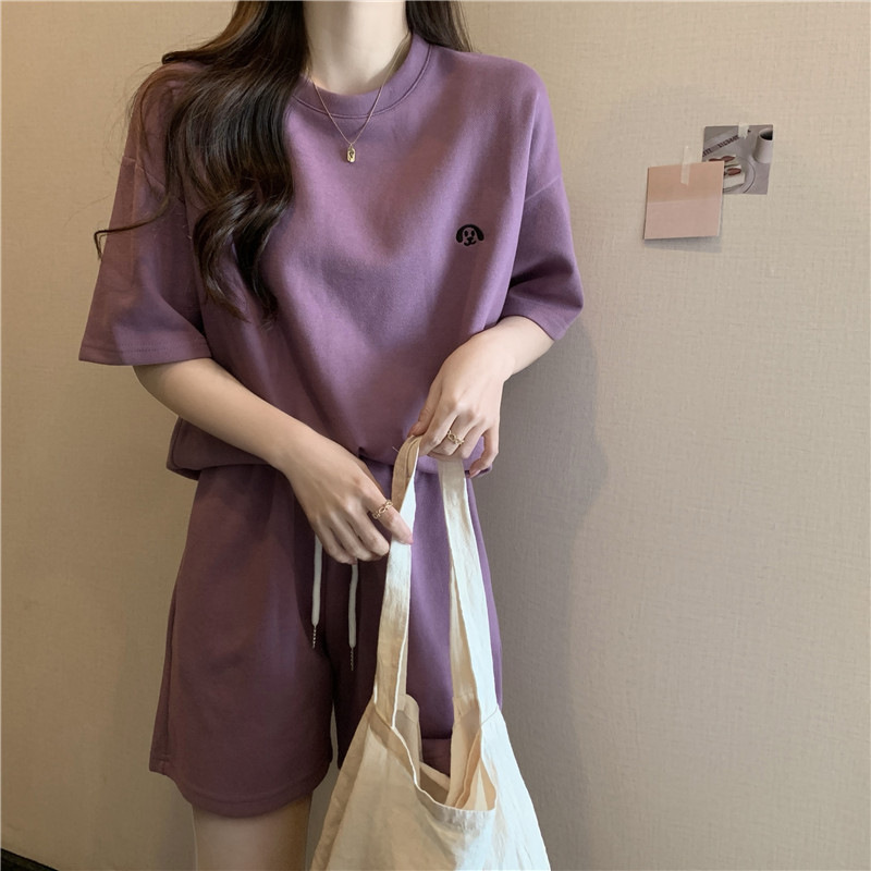 도파민 아이스크림 컬러 2024 여성 여름 반팔 투피스 세트 새로운 스포츠 세트 티셔츠 반바지