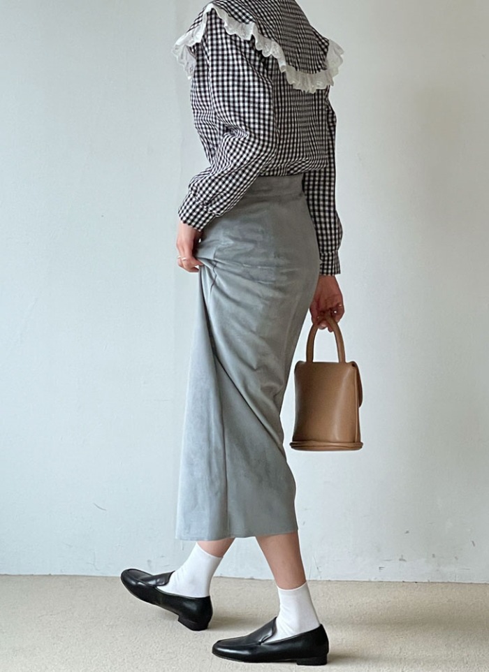 한국 세련된 옷깃 레이스 바느질 느슨한 대비 격자 무늬 셔츠스토어 가기