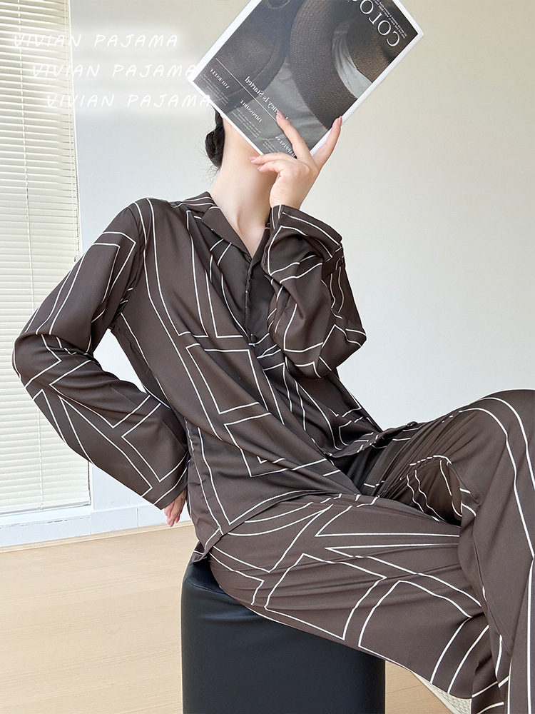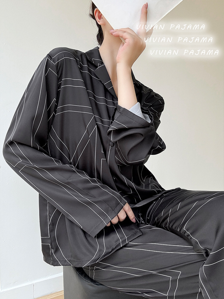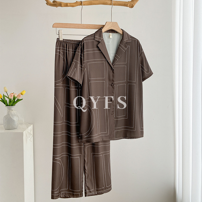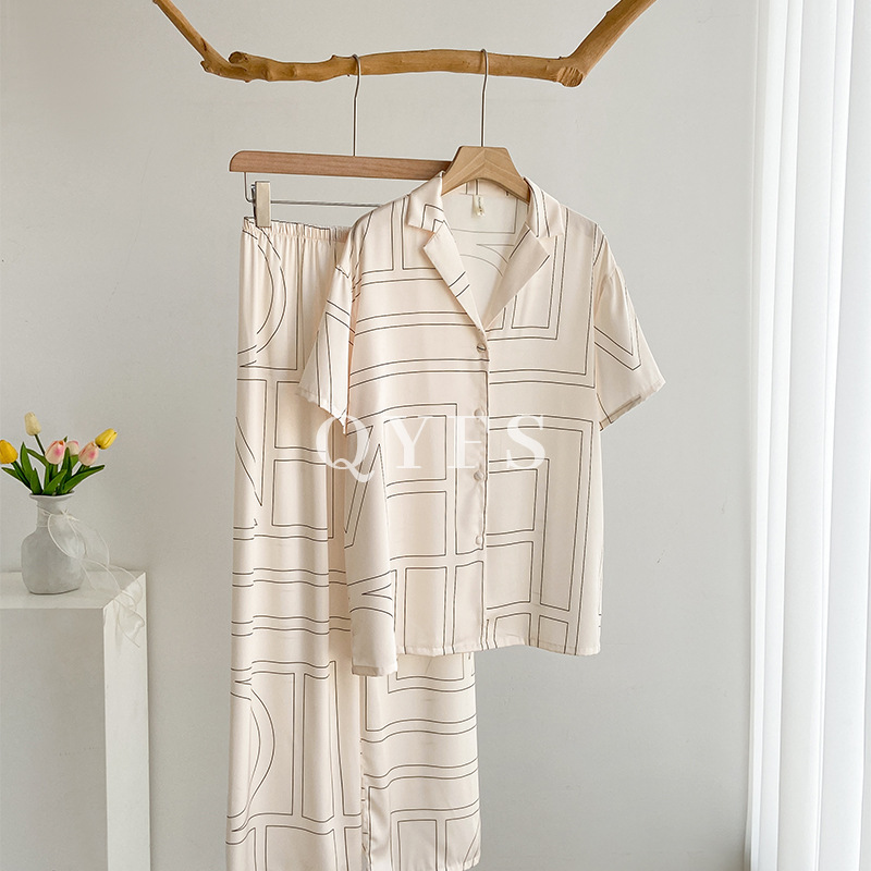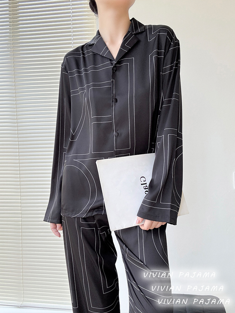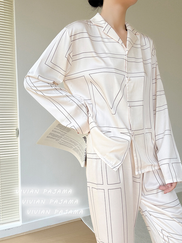잠옷 여성의 봄과 여름 아이스 실크 긴팔 카디건 라이트 럭셔리 세트 인터넷 연예인 생방송 플러스 사이즈 고급 프린트 홈웨어스토어 가기