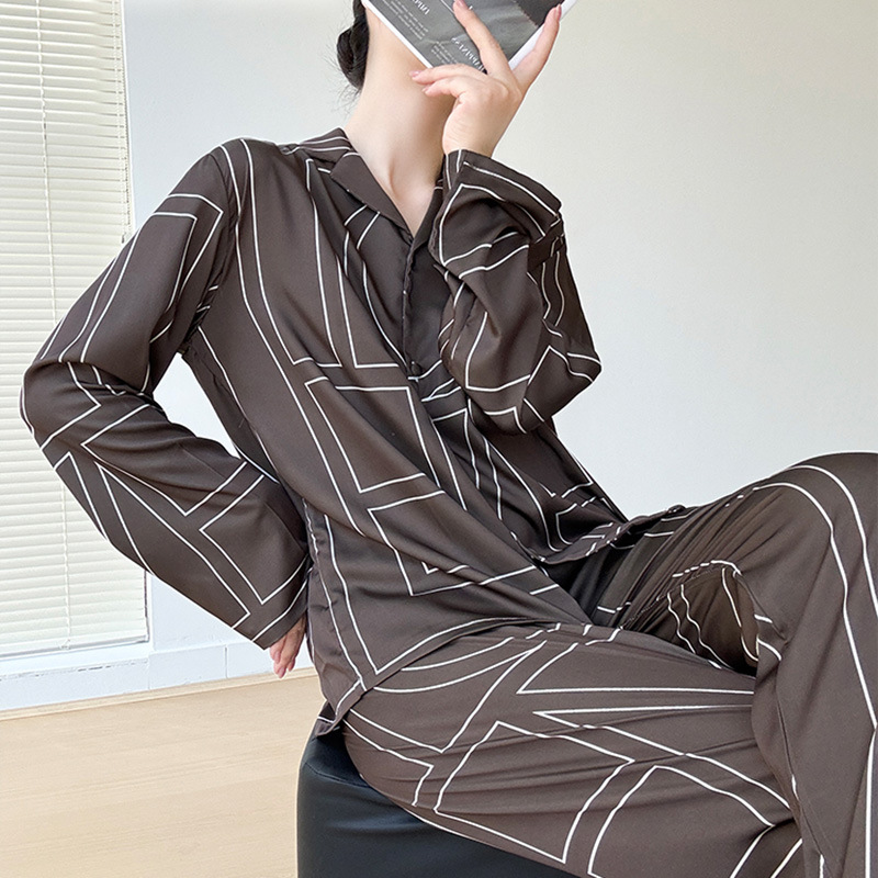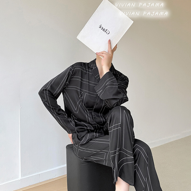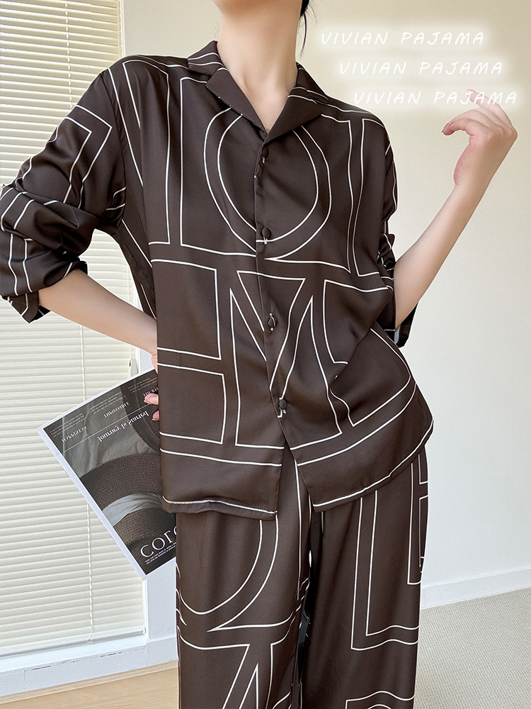 잠옷 여성의 봄과 여름 아이스 실크 긴팔 카디건 라이트 럭셔리 세트 인터넷 연예인 생방송 플러스 사이즈 고급 프린트 홈웨어