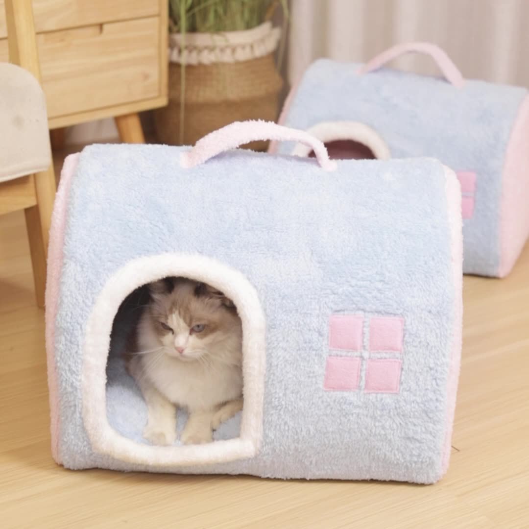 휴대용 고양이 둥지 폐쇄 따뜻한 귀여운 고양이 둥지 개 둥지 반 폐쇄 공주 둥지 겨울 이중 사용 고양이 둥지스토어 가기