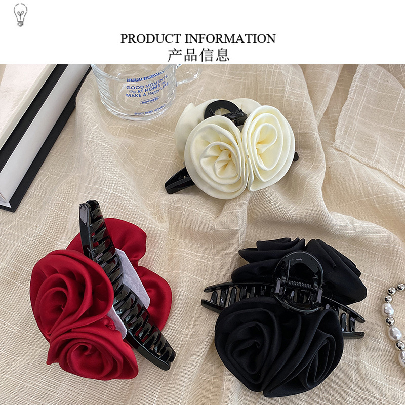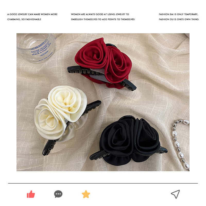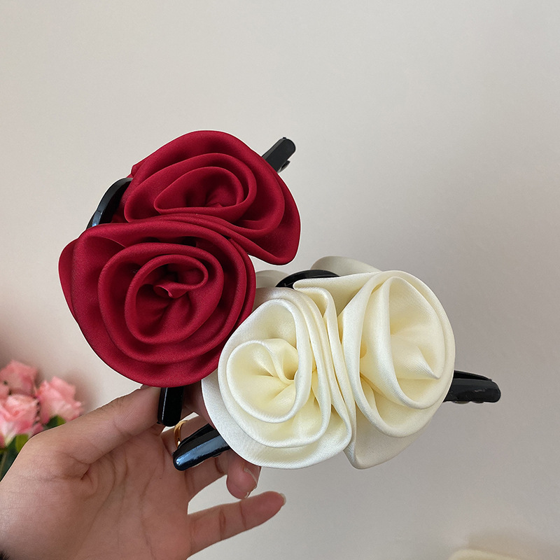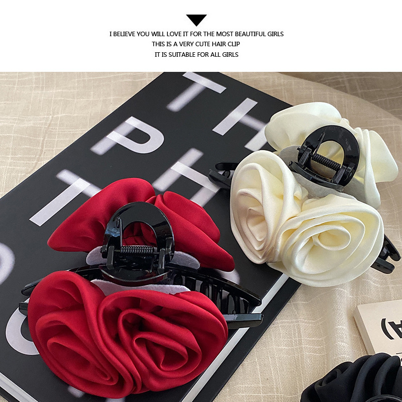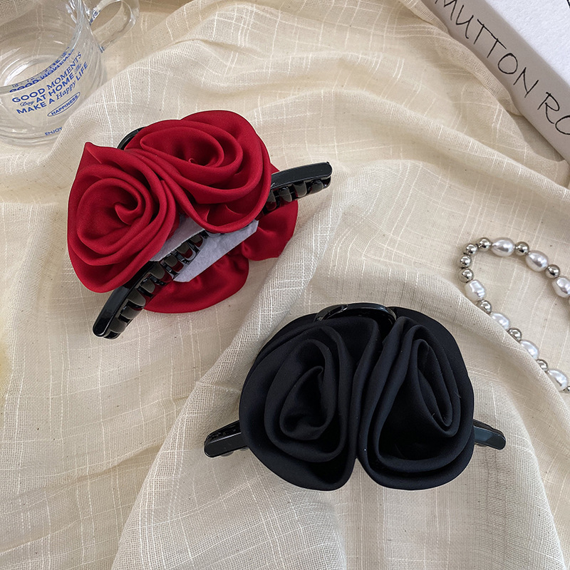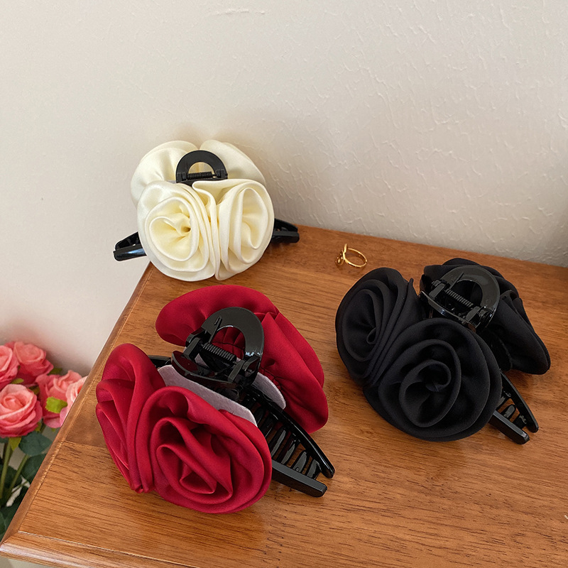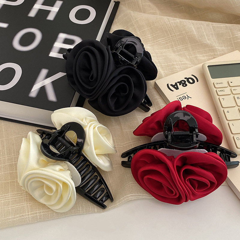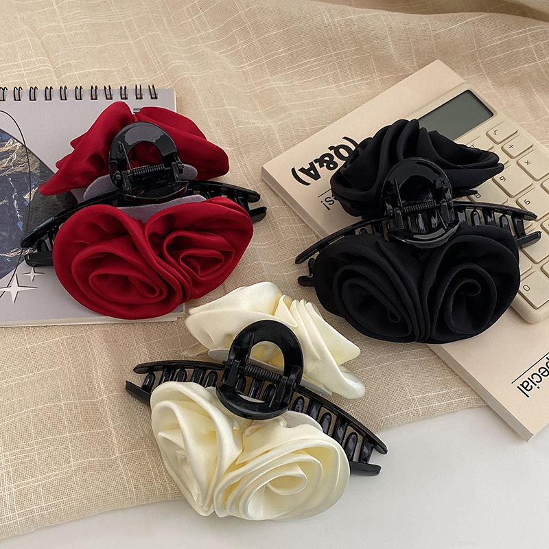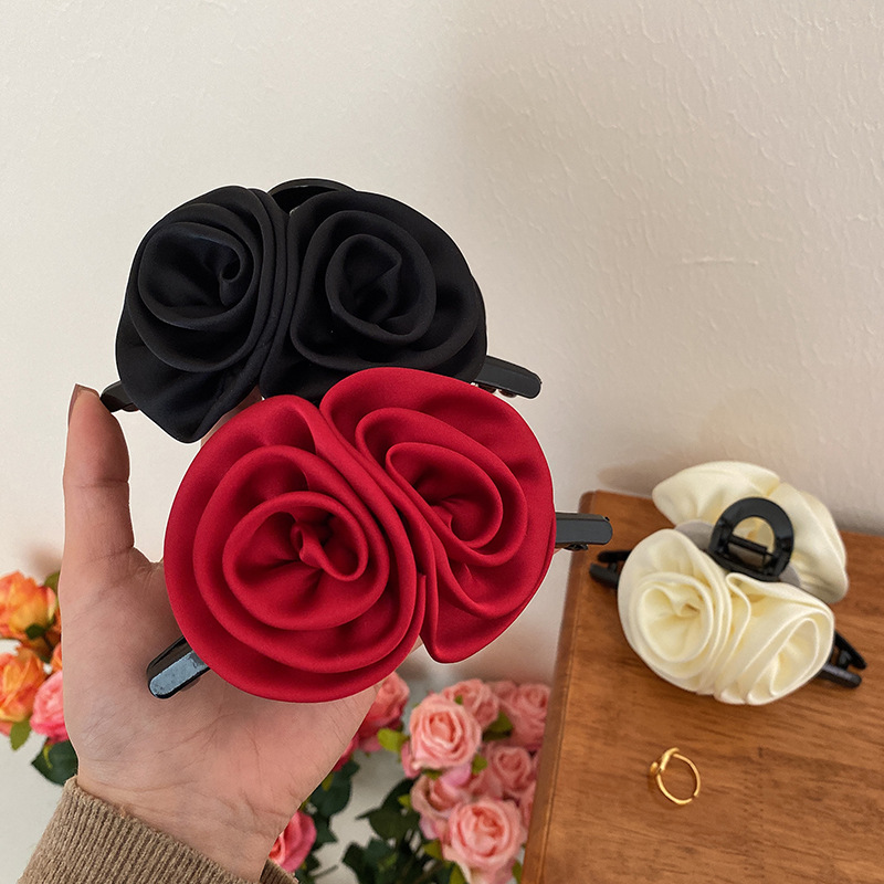 로맨틱한 프랑스풍 장미꽃 머리핀 여성용 한국식 샤크클립 머리핀 뒷머리 클립 헤어 액세서리