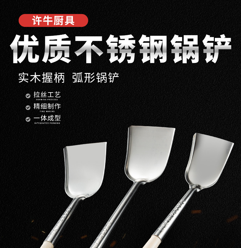 • 구식 스테인레스 스틸 가정용 주걱 [길어진 + 나무 손잡이]]