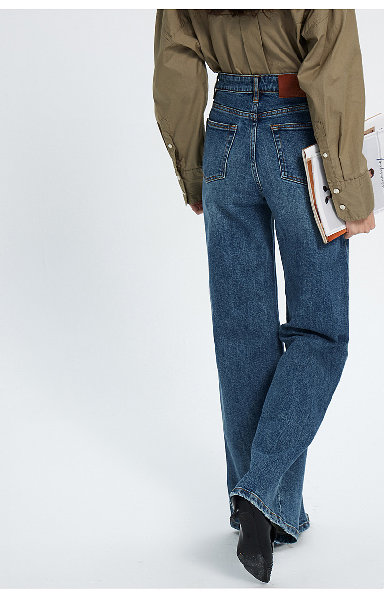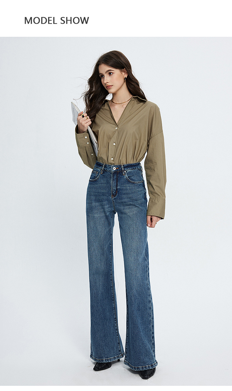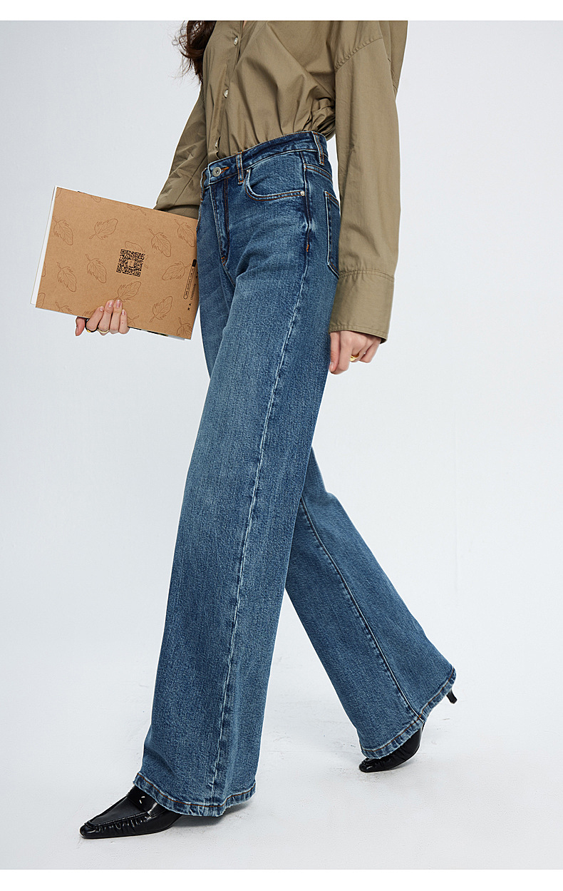 웨이샹&고급스러운 여성용 바지, 신축성 있는 루즈핏 하이웨이스트 2025 신상품, 슬림핏 다용도 약간의 플레어 와이드 데님 팬츠스토어 가기