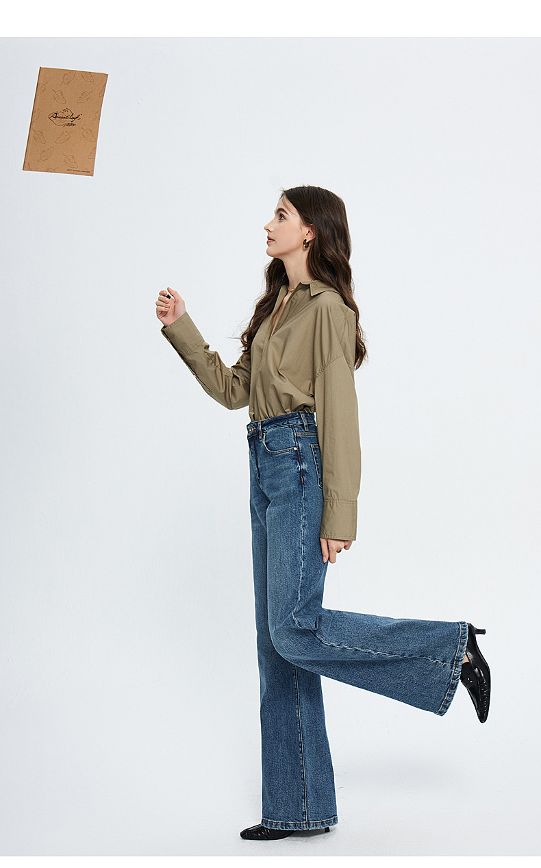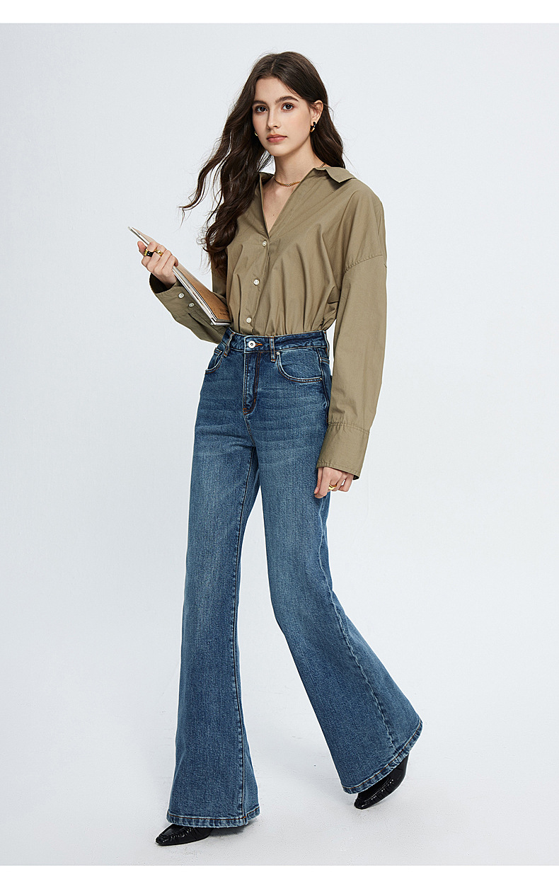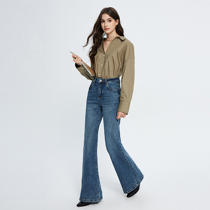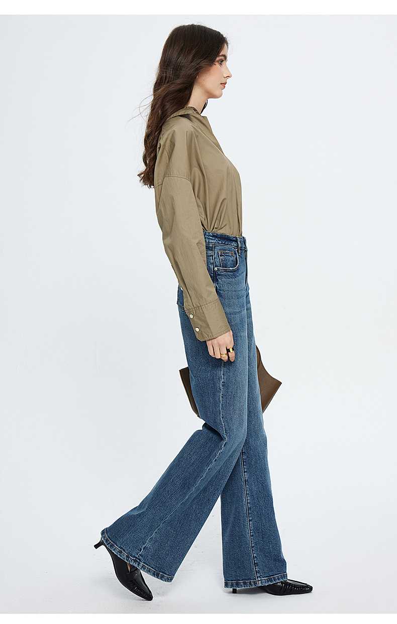 웨이샹&고급스러운 여성용 바지, 신축성 있는 루즈핏 하이웨이스트 2025 신상품, 슬림핏 다용도 약간의 플레어 와이드 데님 팬츠스토어 가기